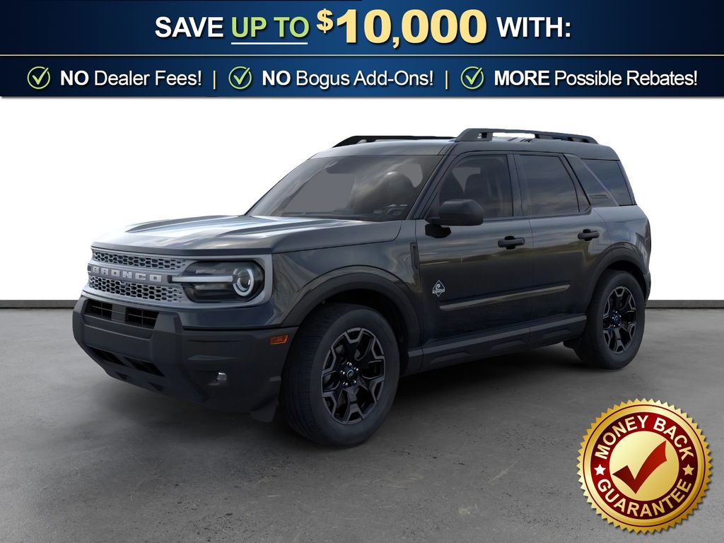 Dealer Discount of $1,136 off MSRP Priced below KBB Fair Purchase Price! Shadow Black 2026 Ford Bronco Sport Outer Banks NFT 4WD 8-Speed Automatic 1.5L EcoBoost 4-Wheel Disc Brakes, 6 Speakers, ABS brakes, Air Conditioning, Alloy wheels, AM/FM radio: SiriusXM with 360L, AM/FM Stereo, Apple CarPlay/Android Auto, Auto High-beam Headlights, Auto-dimming Rear-View mirror, Automatic temperature control, Brake assist, Compass, Delay-off headlights, Driver door bin, Driver vanity mirror, Dual front impact airbags, Dual front side impact airbags, Electronic Stability Control, Emergency communication system: SYNC 4 911 Assist, Exterior Parking Camera Rear, Ford Connectivity Package (1-Year Included), Four wheel independent suspension, Front anti-roll bar, Front Bucket Seats, Front Center Armrest, Front Driver/Passenger Seat Back Map Pockets, Front dual zone A/C, Front fog lights, Front License Plate Bracket, Front reading lights, Fully automatic headlights, Heated door mirrors, Heated front seats, Heated steering wheel, Illuminated entry, Internet access capable: 5G Modem - Ford Connectivity Package, Knee airbag, Low tire pressure warning, Memory seat, Occupant sensing airbag, Outside temperature display, Overhead airbag, Overhead console, Panic alarm, Passenger door bin, Passenger vanity mirror, Power door mirrors, Power driver seat, Power passenger seat, Power steering, Power windows, Radio data system, Rear anti-roll bar, Rear Parking Sensors, Rear reading lights, Rear seat center armrest, Rear window defroster, Rear window wiper, Remote keyless entry, Security system, SiriusXM with 360L, Speed control, Speed-sensing steering, Speed-Sensitive Wipers, Split folding rear seat, Steering wheel mounted audio controls, SYNC 4 with Enhanced Voice Recognition, Tachometer, Telescoping steering wheel, Tilt steering wheel, Traction control, Trip computer, Variably intermittent wipers, Wheels: 18" Ebony Black.