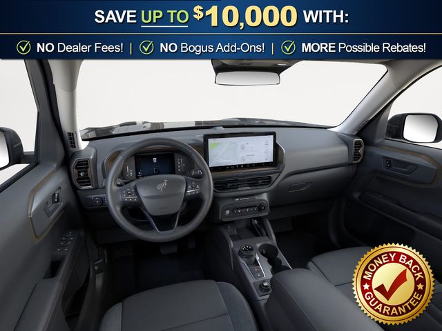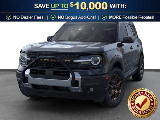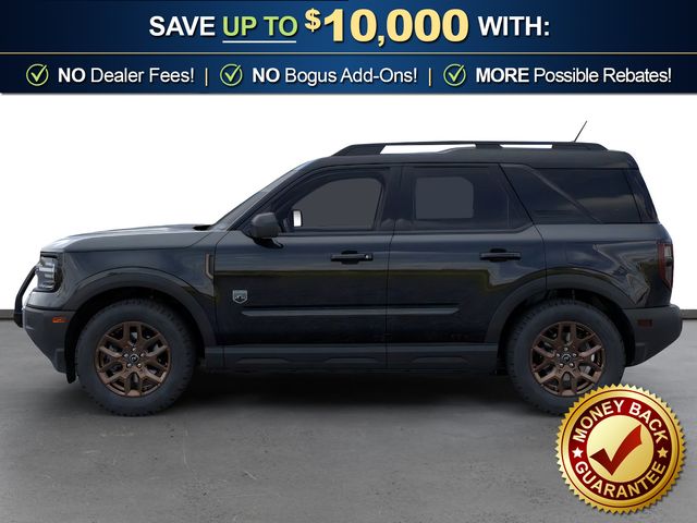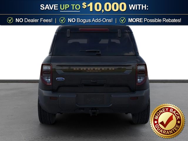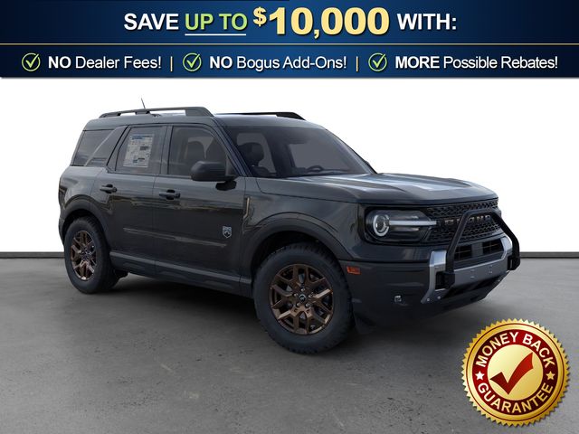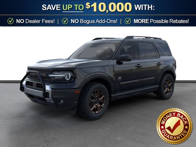 2026 Ford Bronco Sport Big Bend fctp Shadow Black Big Bend fctp 4WD 8-Speed Automatic 1.5L EcoBoost 2nd Row Carpeted Seatback, 4-Wheel Disc Brakes, 400W Pro Power Onboard, 6 Speakers, ABS brakes, Air Conditioning, All Weather Floor Liners with Bronze Accents, Alloy wheels, AM/FM radio: SiriusXM with 360L, AM/FM Stereo, Apple CarPlay/Android Auto, Auto High-beam Headlights, Automatic temperature control, Auxiliary Switches and Wiring, Black Diamond Off-Road Package, Body-Color Door Handles, Brake assist, Bronze + Black Diamond Off-Road Package, Bronze Badges, Bronze Fender Vent, Carbon Black Grille with Black Painted BRONCO Lettering, Cargo Mat with Bronze Accents, Class II Trailer Tow Package with Trailer Sway Control, Cloth with Easy-to-Clean Front Bucket Seats, Compass, Convenience Package, Delay-off headlights, Driver door bin, Driver vanity mirror, Dual front impact airbags, Dual front side impact airbags, Electronic Stability Control, Emergency communication system: SYNC 4 911 Assist, Equipment Group 200A Standard Package, Exterior Parking Camera Rear, Ford Connectivity Package (1-Year Included), Four wheel independent suspension, Front anti-roll bar, Front Black Molded-in-Color (MIC) Bumper, Front Brush Guard, Front Bucket Seats, Front Center Armrest, Front Driver/Passenger Seat Back Map Pockets, Front reading lights, Fully automatic headlights, Heated 8-Way Power Driver's Seat, Heated door mirrors, Illuminated entry, Internet access capable: 5G Modem - Ford Connectivity Package, Knee airbag, LED Fog Lamps, Liftgate with Black BRONCO SPORT Lettering, Low tire pressure warning, Occupant sensing airbag, Outside temperature display, Overhead airbag, Overhead console, Painted Shadow Black Roof, Panic alarm, Passenger door bin, Passenger vanity mirror, Power door mirrors, Power steering, Power windows, Premium Trimmed Front Sport Contour Bucket Seats, Premium Wrapped Steering Wheel, Radio data system, Rear anti-roll bar, Rear Parking Sensors, Rear reading lights, Rear seat center armrest, Rear window defroster, Rear window wiper, Remote keyless entry, Security system, SiriusXM with 360L, Speed control, Speed-sensing steering, Speed-Sensitive Wipers, Split folding rear seat, Steering wheel mounted audio controls, SYNC 4 with Enhanced Voice Recognition, Tachometer, Telescoping steering wheel, Tilt steering wheel, Traction control, Trip computer, Variably intermittent wipers, Wheels: 17" Carbonized Gray Painted Aluminum, Wheels: 17" Carbonized Gray-Painted Aluminum, Wheels: 17" Sinister Bronze-Painted Aluminum.