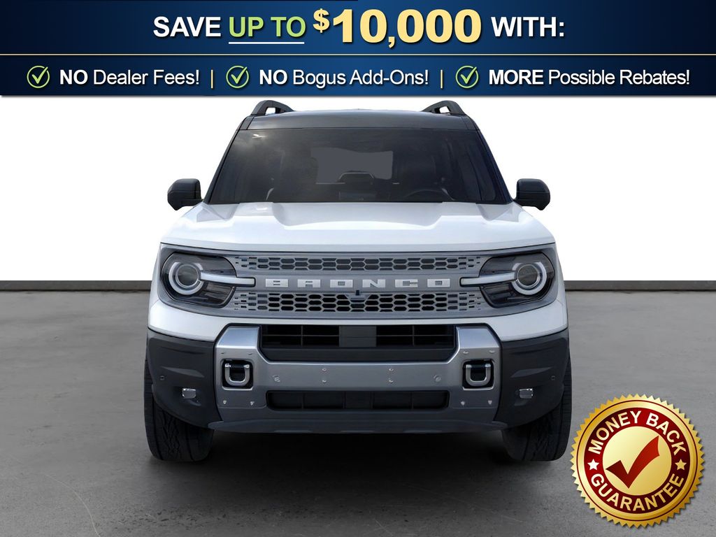Dealer Discount of $1,375 off MSRP Oxford White 2026 Ford Bronco Sport Badlands FCT 4WD 8-Speed Automatic EcoBoost 2.0L I4 GTDi DOHC Turbocharged VCT 4-Wheel Disc Brakes, 6 Speakers, ABS brakes, Air Conditioning, Alloy wheels, AM/FM radio: SiriusXM with 360L, AM/FM Stereo, Apple CarPlay/Android Auto, Auto High-beam Headlights, Auto-dimming Rear-View mirror, Automatic temperature control, Brake assist, Compass, Delay-off headlights, Driver door bin, Driver vanity mirror, Dual front impact airbags, Dual front side impact airbags, Electronic Stability Control, Emergency communication system: SYNC 4 911 Assist, Exterior Parking Camera Rear, Ford Connectivity Package (1-Year Included), Four wheel independent suspension, Front anti-roll bar, Front Bucket Seats, Front Center Armrest, Front fog lights, Front reading lights, Fully automatic headlights, Heated door mirrors, Heated front seats, Heated steering wheel, Illuminated entry, Internet access capable: 5G Modem - Ford Connectivity Package, Knee airbag, Leather-Trimmed Heated Front Sport Contour Bucket Seats, Low tire pressure warning, Memory seat, Occupant sensing airbag, Outside temperature display, Overhead airbag, Overhead console, Panic alarm, Passenger door bin, Passenger vanity mirror, Power door mirrors, Power driver seat, Power passenger seat, Power steering, Power windows, Radio data system, Rear anti-roll bar, Rear reading lights, Rear seat center armrest, Rear window defroster, Rear window wiper, Remote keyless entry, Security system, SiriusXM with 360L, Speed control, Speed-sensing steering, Speed-Sensitive Wipers, Split folding rear seat, Steering wheel mounted audio controls, SYNC 4 with Enhanced Voice Recognition, Tachometer, Telescoping steering wheel, Tilt steering wheel, Traction control, Trip computer, Variably intermittent wipers, Wheels: 17" Matte Black-Painted Aluminum.
