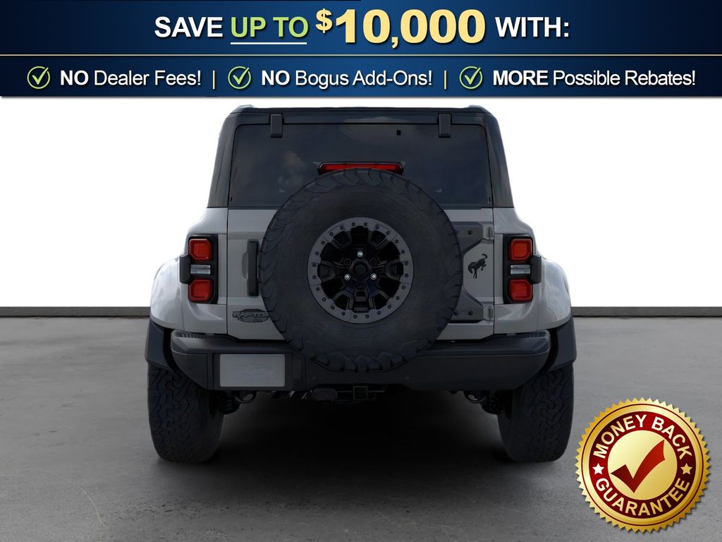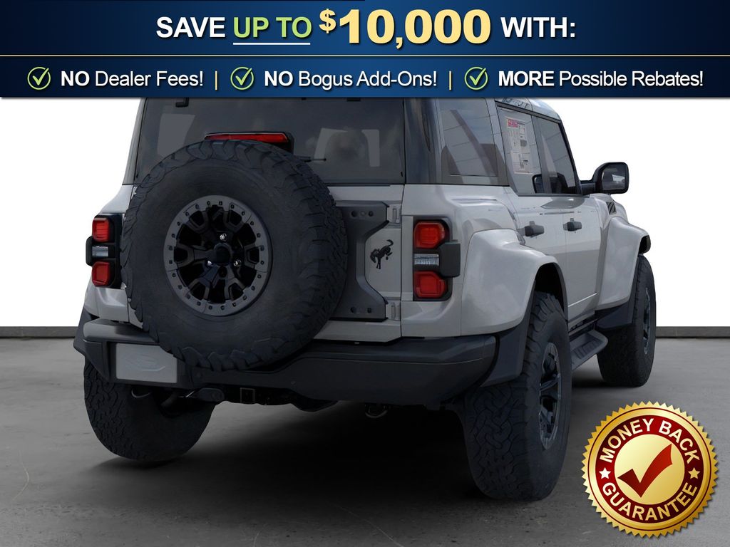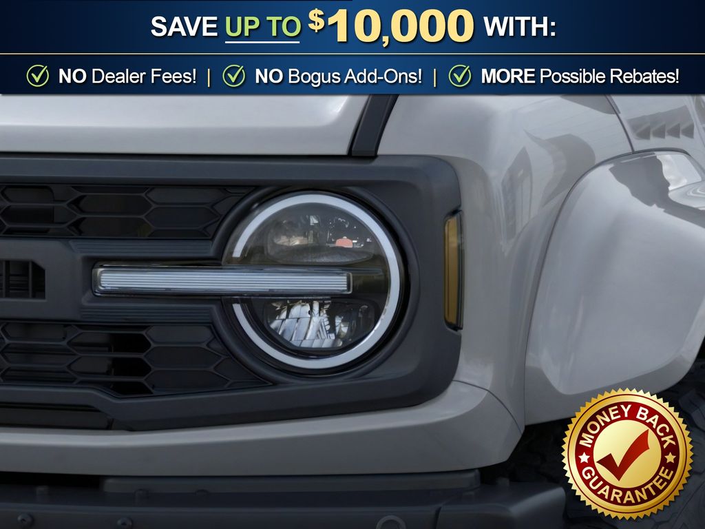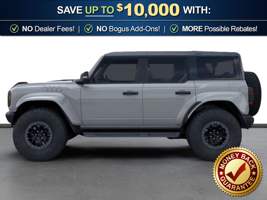 Avalanche Gray 2026 Ford Bronco Raptor NFT 4WD 10-Speed Automatic 3.0L EcoBoost V6 12 Speakers, 4-Wheel Disc Brakes, ABS brakes, Air Conditioning, Alloy wheels, AM/FM radio: SiriusXM with 360L, Auto High-beam Headlights, Auto-dimming Rear-View mirror, Automatic temperature control, Brake assist, Compass, Connected Navigation, Convertible HardTop, Convertible roof lining, Delay-off headlights, Driver door bin, Driver vanity mirror, Dual front impact airbags, Dual front side impact airbags, Electronic Stability Control, Emergency communication system: 911 Assist, Exterior Parking Camera Rear, Ford Connectivity Package (1-Year Included), Front anti-roll bar, Front Bucket Seats, Front Center Armrest, Front dual zone A/C, Front fog lights, Front License Plate Bracket, Front reading lights, Front wheel independent suspension, Fully automatic headlights, Glass rear window, Hard Top Sound Deadening Headliner, Heated door mirrors, Heated front seats, Heated steering wheel, Illuminated entry, Integrated roll-over protection, Interior Carbon Fiber Pack, Leather Shift Knob, Leather-Trimmed/Vinyl Bucket Seats, Low tire pressure warning, Marine Grade Vinyl Bucket Seats, Navigation system: Connected Navigation, Occupant sensing airbag, Outside temperature display, Overhead airbag, Overhead console, Panic alarm, Passenger door bin, Passenger vanity mirror, Power door mirrors, Power steering, Power windows, Radio data system, Rear anti-roll bar, Rear seat center armrest, Rear window defroster, Rear window wiper, Rear-Window Defroster and Washer, Remote keyless entry, Security system, Shadow Black Painted Hard Top, SiriusXM with 360L, Speed control, Split folding rear seat, Steering wheel mounted audio controls, SYNC 4, Tachometer, Telescoping steering wheel, Tilt steering wheel, Traction control, Trip computer, Turn signal indicator mirrors, Variably intermittent wipers, Voltmeter, Wheels: 17" Black High Gloss-Painted Aluminum, Wheels: 17" Dark Carbonized Gray Alloy Painted.