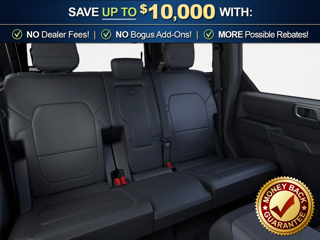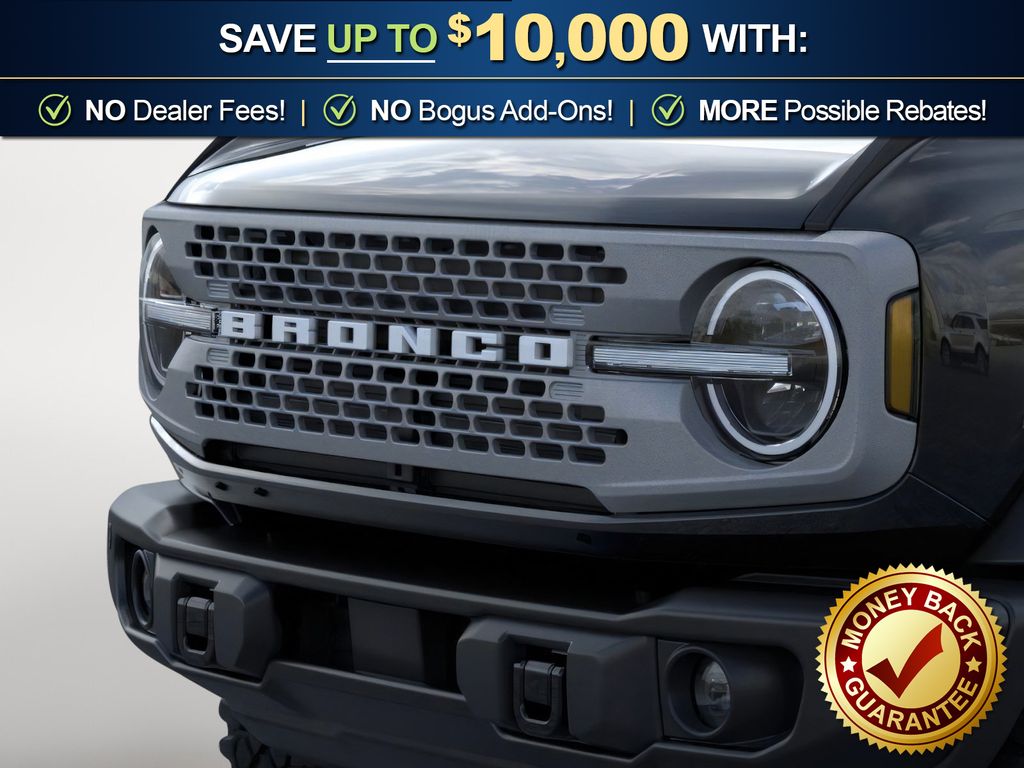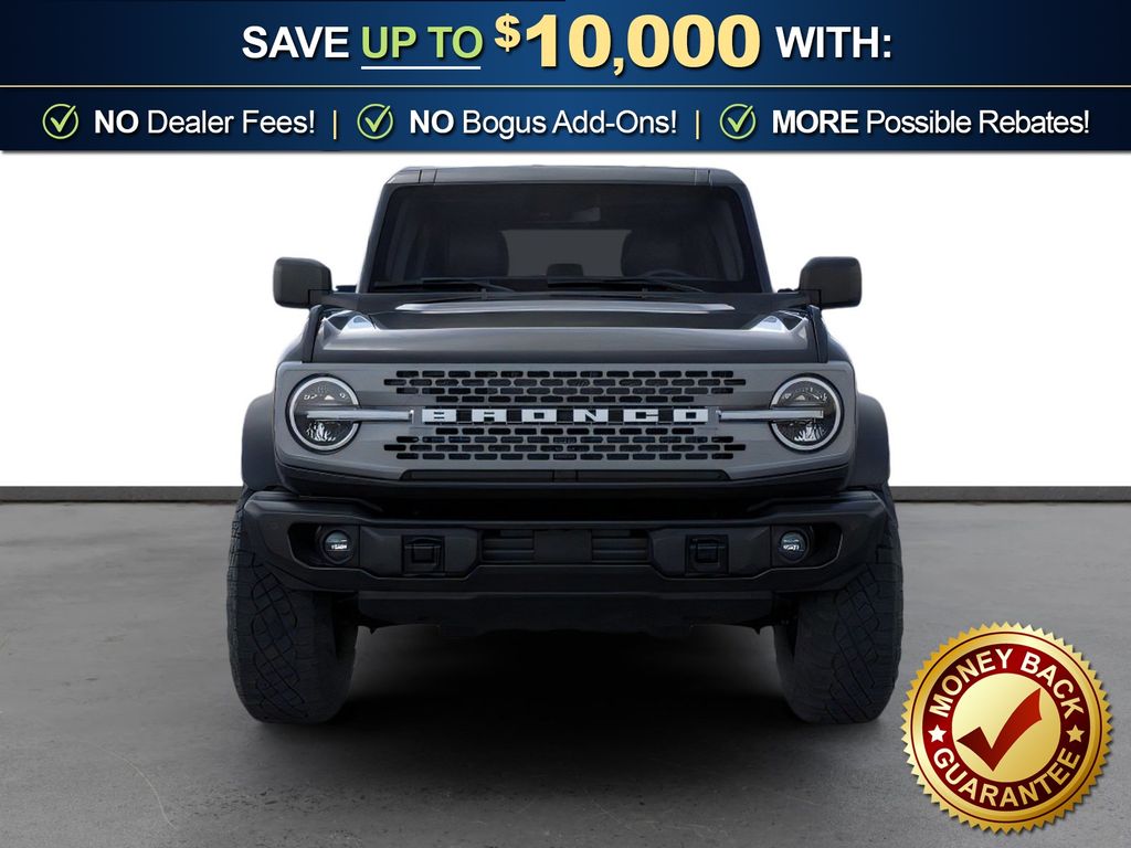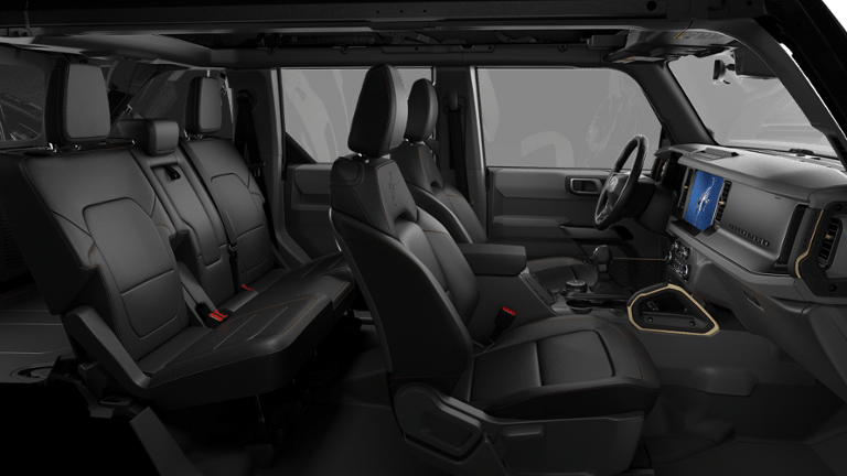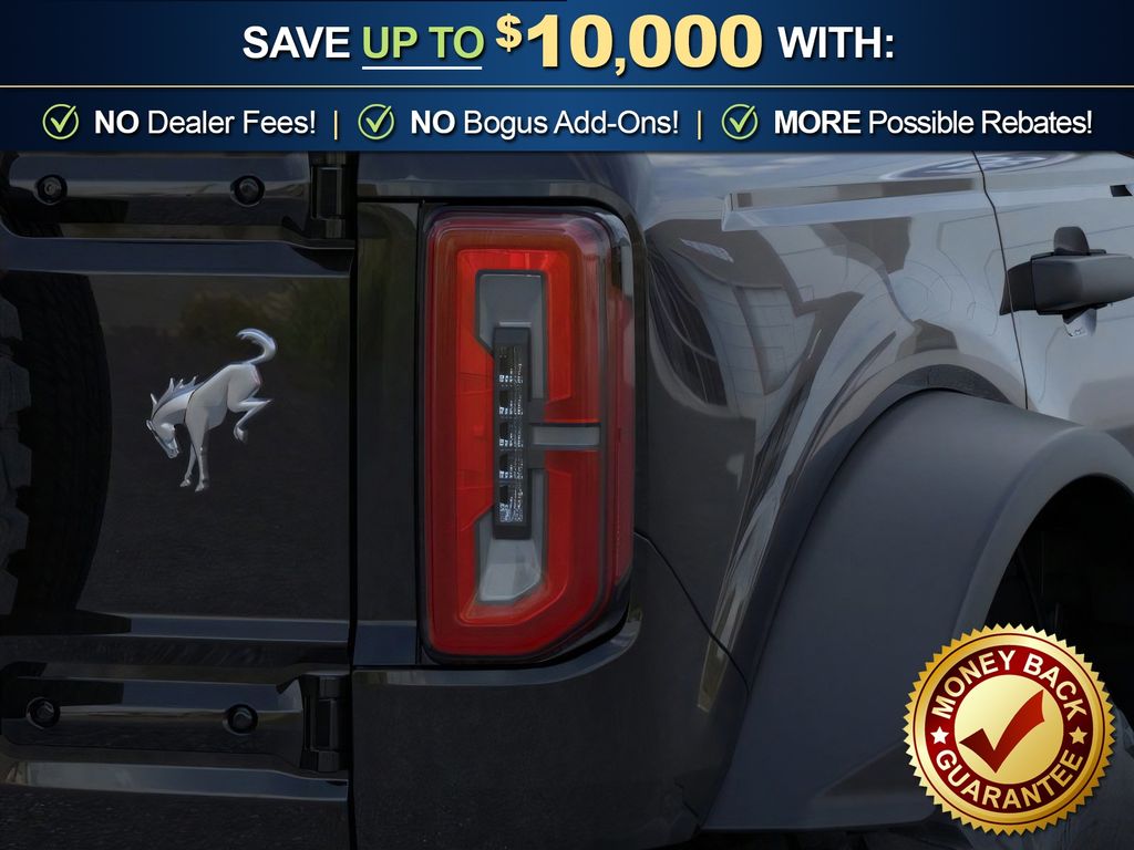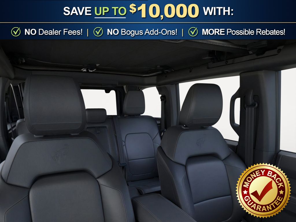 Ford Connectivity Package (1-Year Included), Sasquatch Package (Front Stabilizer Disconnect, High Clearance Suspension, and Position-Sensitive Bilstein Shock Absorbers), 4-Wheel Disc Brakes, 7 Speakers, ABS brakes, Air Conditioning, Alloy wheels, AM/FM radio: SiriusXM with 360L, AM/FM Stereo, Auto High-beam Headlights, Auto-dimming Rear-View mirror, Brake assist, Carbonized Gray Molded-in-Color Hard Top, Compass, Delay-off headlights, Driver door bin, Driver vanity mirror, Dual front impact airbags, Dual front side impact airbags, Electronic Stability Control, Emergency communication system: 911 Assist, Exterior Parking Camera Rear, Front anti-roll bar, Front Bucket Seats, Front Center Armrest, Front fog lights, Front reading lights, Front wheel independent suspension, Fully automatic headlights, Hard Top Sound Deadening Headliner, Heated door mirrors, Heated front seats, Illuminated entry, Integrated roll-over protection, Leather Shift Knob, Leather-Trimmed/Vinyl Bucket Seats, Low tire pressure warning, Marine Grade Vinyl Heated Bucket Seats, Occupant sensing airbag, Outside temperature display, Overhead airbag, Overhead console, Panic alarm, Passenger door bin, Passenger vanity mirror, Power door mirrors, Power steering, Power windows, Radio data system, Rear-Window Defroster and Washer, Remote keyless entry, Security system, SiriusXM with 360L, Speed control, Split folding rear seat, Steering wheel mounted audio controls, SYNC 4, Tachometer, Telescoping steering wheel, Tilt steering wheel, Traction control, Trip computer, Variably intermittent wipers, Voltmeter, and Wheels: 17" Carbonized Gray-Painted Aluminum. Price includes: $750 - Retail Bonus Cash. Exp. 04/30/2026 $750 - Retail Customer Cash. Exp. 04/30/2026