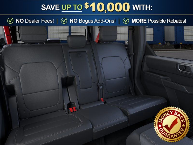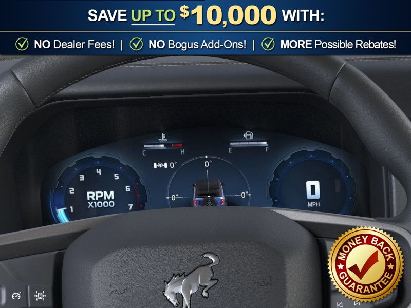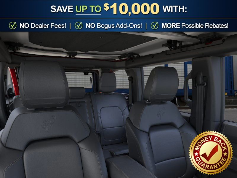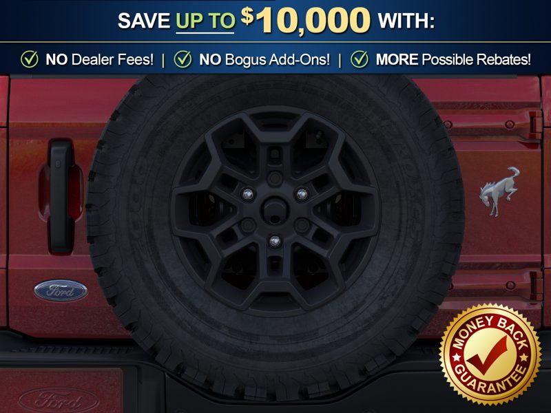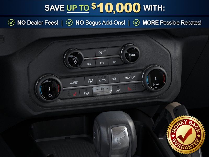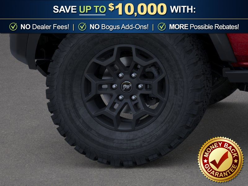 Ford Connectivity Package (1-Year Included), 4-Wheel Disc Brakes, 4.7 Axle Ratio, 7 Speakers, ABS brakes, Air Conditioning, Alloy wheels, AM/FM radio: SiriusXM with 360L, AM/FM Stereo, Auto High-beam Headlights, Auto-dimming Rear-View mirror, Brake assist, Compass, Delay-off headlights, Driver door bin, Driver vanity mirror, Dual front impact airbags, Dual front side impact airbags, Electronic Stability Control, Emergency communication system: 911 Assist, Exterior Parking Camera Rear, Front anti-roll bar, Front Bucket Seats, Front Center Armrest, Front fog lights, Front reading lights, Front wheel independent suspension, Fully automatic headlights, Hard Top Sound Deadening Headliner, Heated door mirrors, Heated front seats, Illuminated entry, Integrated roll-over protection, Leather Shift Knob, Leather-Trimmed/Vinyl Bucket Seats, Low tire pressure warning, Marine Grade Vinyl Heated Bucket Seats, Occupant sensing airbag, Outside temperature display, Overhead airbag, Overhead console, Painted Hard Top, Panic alarm, Passenger door bin, Passenger vanity mirror, Power door mirrors, Power steering, Power windows, Radio data system, Rear-Window Defroster and Washer, Remote keyless entry, Security system, SiriusXM with 360L, Speed control, Split folding rear seat, Steering wheel mounted audio controls, SYNC 4, Tachometer, Telescoping steering wheel, Tilt steering wheel, Traction control, Trip computer, Variably intermittent wipers, Voltmeter, and Wheels: 17" Carbonized Gray-Painted Aluminum.