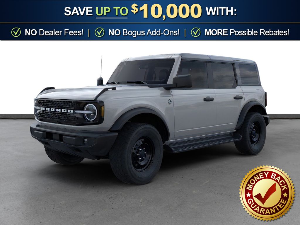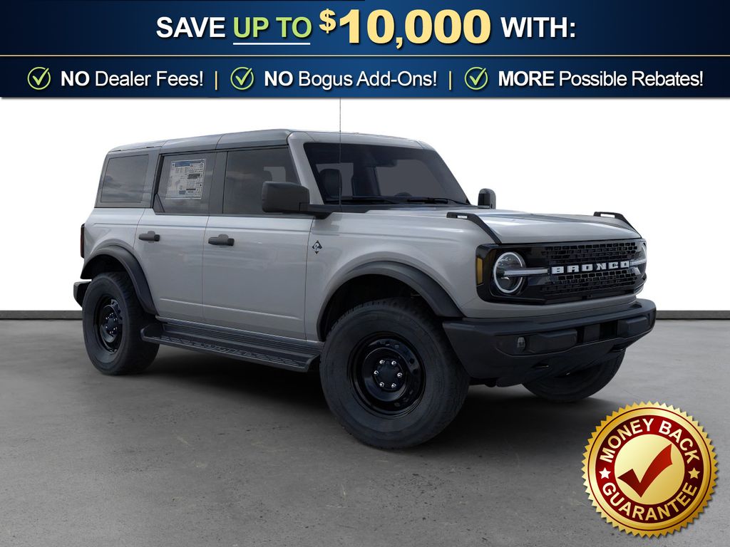 Avalanche Gray 2026 Ford Bronco Outer Banks NFT 4WD 10-Speed Automatic 2.7L EcoBoost V6 18" Bright Machined Aluminum Wheels, 3.73 Axle Ratio, 4-Wheel Disc Brakes, 7 Speakers, ABS brakes, Air Conditioning, Alloy wheels, AM/FM radio: SiriusXM with 360L, AM/FM Stereo, Auto High-beam Headlights, Auto-dimming Rear-View mirror, Automatic temperature control, Black Appearance Package, Black Molded-in-Color Door Handles, Black Molded-in-Color Fender Flares, Black Molded-in-Color Sideview Mirror Caps, Black-Painted Molded-in-Color Grille, Brake assist, Compass, Connected Navigation, Delay-off headlights, Driver door bin, Driver vanity mirror, Dual front impact airbags, Dual front side impact airbags, Electronic Stability Control, Emergency communication system: 911 Assist, Exterior Parking Camera Rear, Ford Connectivity Package (1-Year Included), Front anti-roll bar, Front Bucket Seats, Front Center Armrest, Front dual zone A/C, Front fog lights, Front License Plate Bracket, Front reading lights, Front wheel independent suspension, Fully automatic headlights, Hard Top Sound Deadening Headliner, Heated door mirrors, Heated front seats, Heated Leather-Trimmed/Vinyl Bucket Seats, Heated steering wheel, Illuminated entry, Integrated roll-over protection, Leather Shift Knob, Low tire pressure warning, Navigation system: Connected Navigation, Occupant sensing airbag, Outside temperature display, Overhead airbag, Overhead console, Panic alarm, Passenger door bin, Passenger vanity mirror, Power door mirrors, Power driver seat, Power passenger seat, Power steering, Power windows, Radio data system, Rear seat center armrest, Rear-Window Defroster and Washer, Remote keyless entry, Security system, Shadow Black-Painted Hard Top, SiriusXM with 360L, Speed control, Split folding rear seat, Steering wheel mounted audio controls, SYNC 4, Tachometer, Telescoping steering wheel, Tilt steering wheel, Traction control, Trip computer, Variably intermittent wipers, Voltmeter.