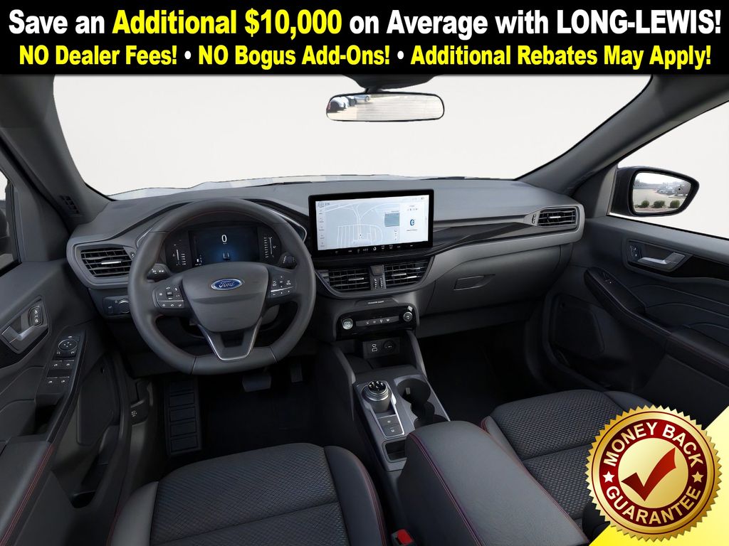 space silver metallic 2026 Ford Escape ST-Line NFT FWD 8-Speed Automatic 1.5L EcoBoost 3.81 Axle Ratio, 4-Way Manual Front Passenger Seat, 4-Wheel Disc Brakes, 6 Speakers, 8-Way Power Driver Seat, ABS brakes, Adaptive Cruise Control with Stop-and-Go, Air Conditioning, Alloy wheels, AM/FM radio: SiriusXM 360L, Auto High-beam Headlights, Automatic temperature control, Black Roof-Rack Side Rails, Brake assist, Bumpers: body-color, Cold Weather Package, Compass, Connected Navigation (1-Year Included), Delay-off headlights, Digital Rear View Camera, Driver door bin, Driver vanity mirror, Dual front impact airbags, Dual front side impact airbags, Electronic Stability Control, Emergency communication system: SYNC 4 911 Assist, Evasive Steering Assist, Ford App, Ford Co-Pilot360 Assist+, Four wheel independent suspension, Front anti-roll bar, Front Bucket Seats, Front Center Armrest, Front dual zone A/C, Front License Plate Bracket, Front reading lights, Fully automatic headlights, Heated Front Row Seats, Heated Sideview Mirrors, Heated Steering Wheel, Heated steering wheel, Illuminated entry, Intersection Assist, Knee airbag, Low tire pressure warning, Occupant sensing airbag, Outside temperature display, Overhead airbag, Overhead console, Panic alarm, Panoramic Vista Roof, Partial Vinyl/Cloth Front Sport Contour Bucket Seats with Red Stitching, Passenger door bin, Passenger vanity mirror, Power door mirrors, Power driver seat, Power Liftgate, Power steering, Power windows, Predictive Speed Assist, Radio data system, Radio: AM/FM Stereo with SiriusXM 360L, Rear anti-roll bar, Rear Parking Sensor, Rear reading lights, Rear seat center armrest, Rear window defroster, Rear window wiper, Remote keyless entry, Remote Starter System, Speed control, Speed-sensing steering, Speed-Sensitive Wipers, Split folding rear seat, Spoiler, Sport steering wheel, Steering wheel mounted audio controls, SYNC 4, SYNC 4 with Enhanced Voice Recognition, Tachometer, Tech Pack #1, Telescoping steering wheel, Tilt steering wheel, Traction control, Trip computer, Variably intermittent wipers, Wheels: 18" Rock Metallic Painted Aluminum.