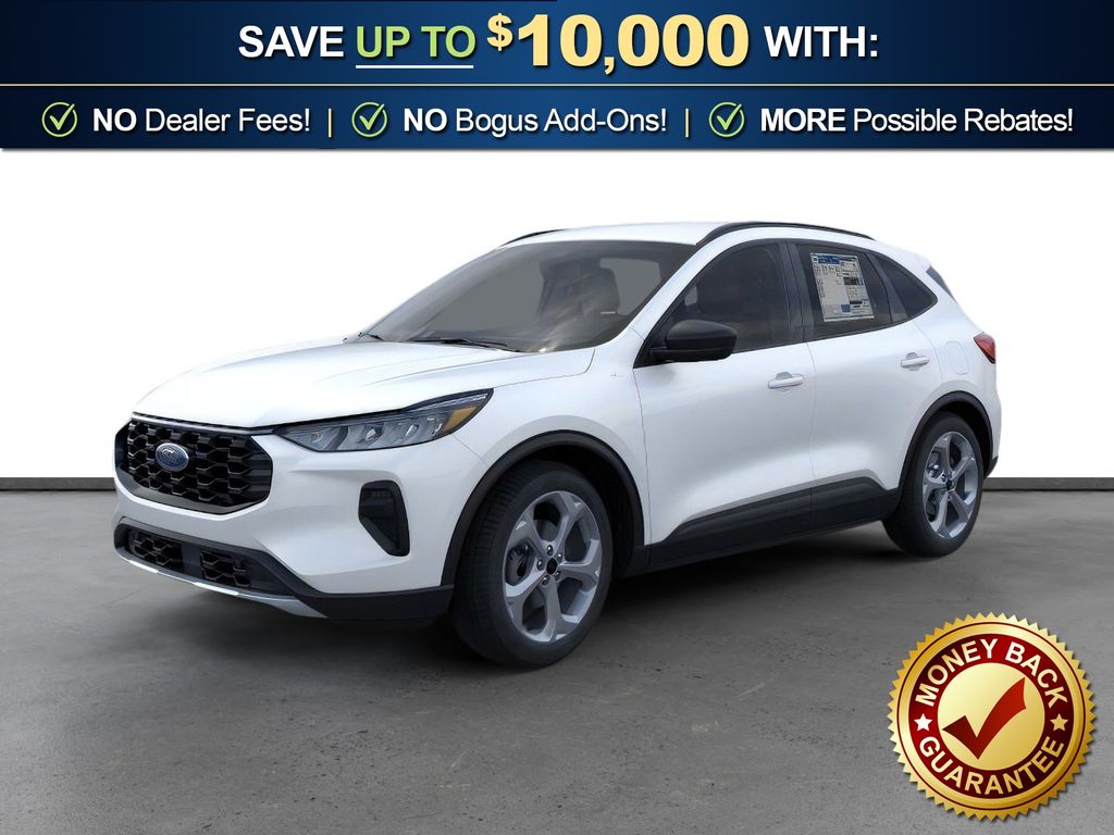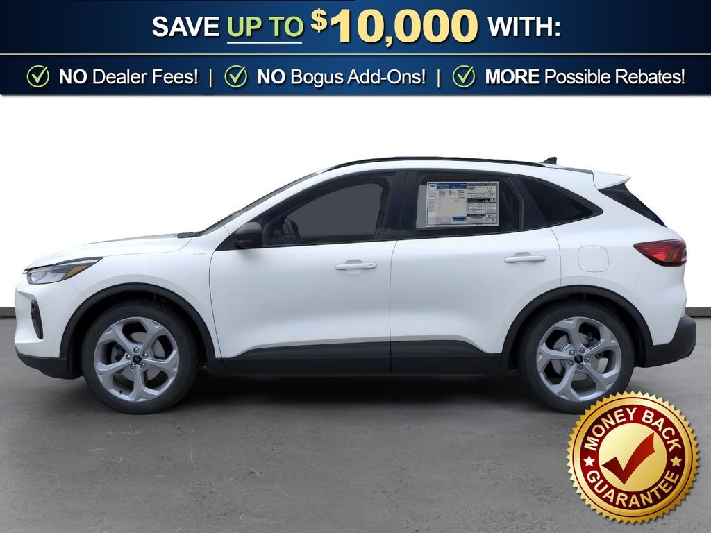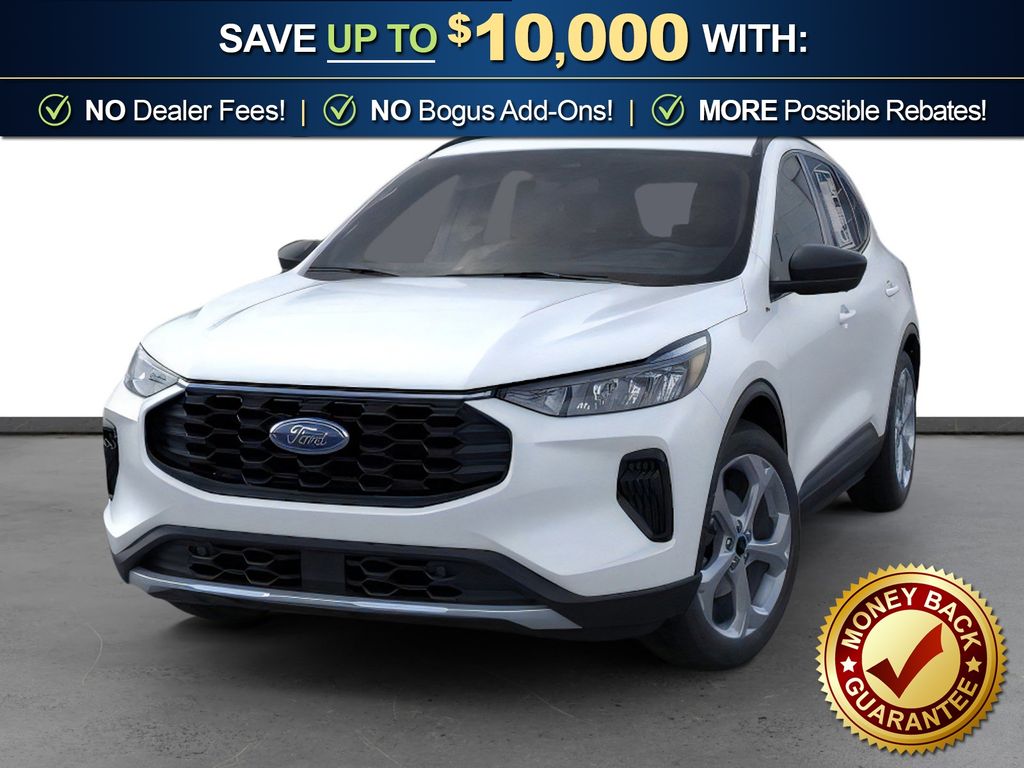 Star White Metallic Tri-Coat 2026 Ford Escape ST-Line NFT FWD 8-Speed Automatic 1.5L EcoBoost 3.81 Axle Ratio, 4-Way Manual Front Passenger Seat, 4-Wheel Disc Brakes, 6 Speakers, 8-Way Power Driver Seat, ABS brakes, Adaptive Cruise Control with Stop-and-Go, Air Conditioning, Alloy wheels, AM/FM radio: SiriusXM 360L, Auto High-beam Headlights, Automatic temperature control, Brake assist, Bumpers: body-color, Cold Weather Package, Compass, Connected Navigation (1-Year Included), Delay-off headlights, Digital Rear View Camera, Driver door bin, Driver vanity mirror, Dual front impact airbags, Dual front side impact airbags, Electronic Stability Control, Emergency communication system: SYNC 4 911 Assist, Evasive Steering Assist, Ford App, Ford Co-Pilot360 Assist+, Four wheel independent suspension, Front anti-roll bar, Front Bucket Seats, Front Center Armrest, Front dual zone A/C, Front License Plate Bracket, Front reading lights, Fully automatic headlights, Heated Front Row Seats, Heated Sideview Mirrors, Heated Steering Wheel, Heated steering wheel, Illuminated entry, Intersection Assist, Knee airbag, Low tire pressure warning, Occupant sensing airbag, Outside temperature display, Overhead airbag, Overhead console, Panic alarm, Partial Vinyl/Cloth Front Sport Contour Bucket Seats with Red Stitching, Passenger door bin, Passenger vanity mirror, Power door mirrors, Power driver seat, Power Liftgate, Power steering, Power windows, Predictive Speed Assist, Radio data system, Radio: AM/FM Stereo with SiriusXM 360L, Rear anti-roll bar, Rear Parking Sensor, Rear reading lights, Rear seat center armrest, Rear window defroster, Rear window wiper, Remote keyless entry, Remote Starter System, Speed control, Speed-sensing steering, Speed-Sensitive Wipers, Split folding rear seat, Spoiler, Sport steering wheel, Steering wheel mounted audio controls, SYNC 4, SYNC 4 with Enhanced Voice Recognition, Tachometer, Tech Pack #1, Telescoping steering wheel, Tilt steering wheel, Traction control, Trip computer, Variably intermittent wipers, Wheels: 18" Rock Metallic Painted Aluminum.