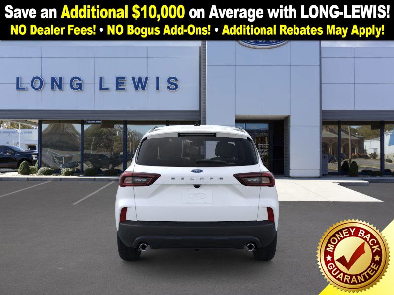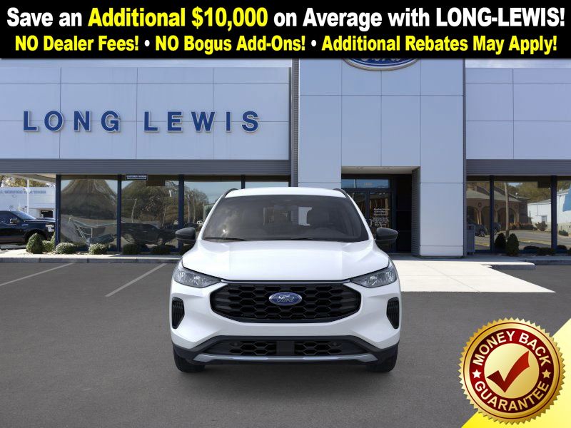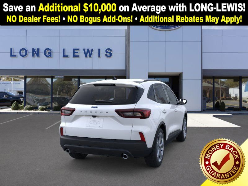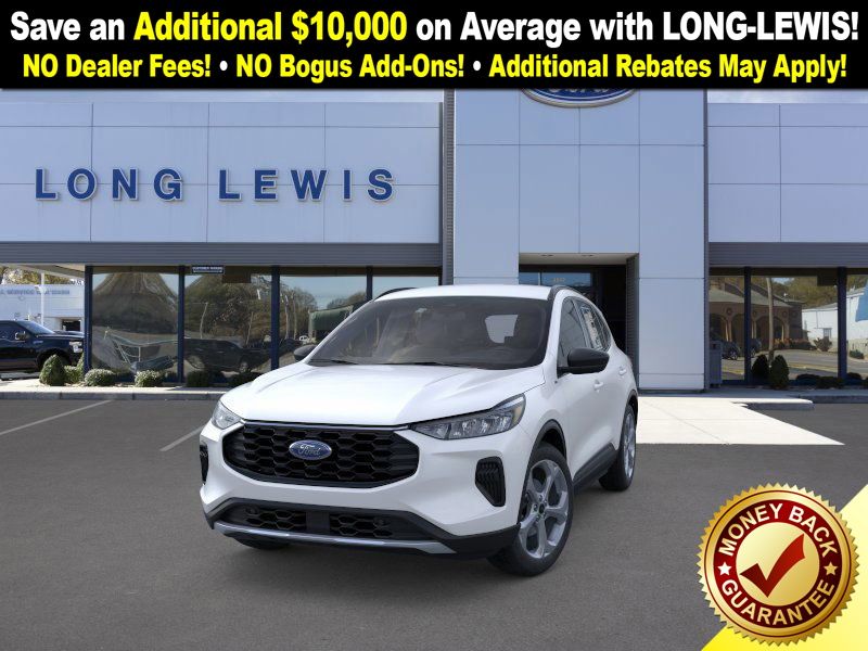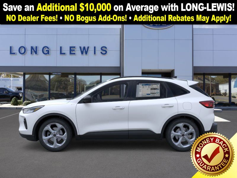 star white metallic tri-coat 2026 Ford Escape ST-Line NFT FWD 8-Speed Automatic 1.5L EcoBoost 3.81 Axle Ratio, 4-Way Manual Front Passenger Seat, 4-Wheel Disc Brakes, 6 Speakers, 8-Way Power Driver Seat, ABS brakes, Adaptive Cruise Control with Stop-and-Go, Air Conditioning, Alloy wheels, AM/FM radio: SiriusXM 360L, Auto High-beam Headlights, Automatic temperature control, Brake assist, Bumpers: body-color, Cold Weather Package, Compass, Connected Navigation (1-Year Included), Delay-off headlights, Digital Rear View Camera, Driver door bin, Driver vanity mirror, Dual front impact airbags, Dual front side impact airbags, Electronic Stability Control, Emergency communication system: SYNC 4 911 Assist, Evasive Steering Assist, Ford App, Ford Co-Pilot360 Assist+, Four wheel independent suspension, Front anti-roll bar, Front Bucket Seats, Front Center Armrest, Front dual zone A/C, Front License Plate Bracket, Front reading lights, Fully automatic headlights, Heated Front Row Seats, Heated Sideview Mirrors, Heated Steering Wheel, Heated steering wheel, Illuminated entry, Intersection Assist, Knee airbag, Low tire pressure warning, Occupant sensing airbag, Outside temperature display, Overhead airbag, Overhead console, Panic alarm, Partial Vinyl/Cloth Front Sport Contour Bucket Seats with Red Stitching, Passenger door bin, Passenger vanity mirror, Power door mirrors, Power driver seat, Power Liftgate, Power steering, Power windows, Predictive Speed Assist, Radio data system, Radio: AM/FM Stereo with SiriusXM 360L, Rear anti-roll bar, Rear Parking Sensor, Rear reading lights, Rear seat center armrest, Rear window defroster, Rear window wiper, Remote keyless entry, Remote Starter System, Speed control, Speed-sensing steering, Speed-Sensitive Wipers, Split folding rear seat, Spoiler, Sport steering wheel, Steering wheel mounted audio controls, SYNC 4, SYNC 4 with Enhanced Voice Recognition, Tachometer, Tech Pack #1, Telescoping steering wheel, Tilt steering wheel, Traction control, Trip computer, Variably intermittent wipers, Wheels: 18" Rock Metallic Painted Aluminum.