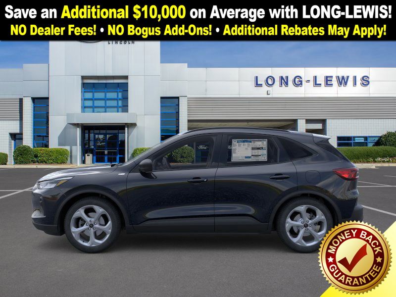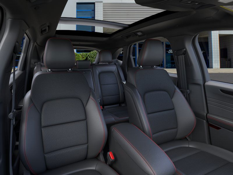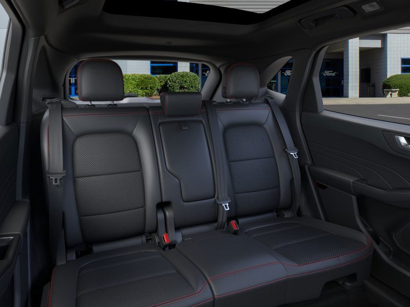 Dealer Discount of $2,496 off MSRP agate black metallic 2026 Ford Escape ST-Line FCT FWD 8-Speed Automatic 1.5L EcoBoost 3.81 Axle Ratio, 4-Way Manual Front Passenger Seat, 4-Wheel Disc Brakes, 6 Speakers, 8-Way Power Driver Seat, ABS brakes, Adaptive Cruise Control with Stop-and-Go, Air Conditioning, Alloy wheels, AM/FM radio: SiriusXM 360L, Auto High-beam Headlights, Automatic temperature control, Black Roof-Rack Side Rails, Brake assist, Bumpers: body-color, Cold Weather Package, Compass, Connected Navigation (1-Year Included), Delay-off headlights, Digital Rear View Camera, Driver door bin, Driver vanity mirror, Dual front impact airbags, Dual front side impact airbags, Electronic Stability Control, Emergency communication system: SYNC 4 911 Assist, Evasive Steering Assist, Ford App, Ford Co-Pilot360 Assist+, Four wheel independent suspension, Front anti-roll bar, Front Bucket Seats, Front Center Armrest, Front dual zone A/C, Front License Plate Bracket, Front reading lights, Fully automatic headlights, Heated Front Row Seats, Heated Sideview Mirrors, Heated Steering Wheel, Heated steering wheel, Illuminated entry, Intersection Assist, Knee airbag, Low tire pressure warning, Occupant sensing airbag, Outside temperature display, Overhead airbag, Overhead console, Panic alarm, Panoramic Vista Roof, Partial Vinyl/Cloth Front Sport Contour Bucket Seats with Red Stitching, Passenger door bin, Passenger vanity mirror, Power door mirrors, Power driver seat, Power Liftgate, Power steering, Power windows, Predictive Speed Assist, Radio data system, Radio: AM/FM Stereo with SiriusXM 360L, Rear anti-roll bar, Rear Parking Sensor, Rear reading lights, Rear seat center armrest, Rear window defroster, Rear window wiper, Remote keyless entry, Remote Starter System, Speed control, Speed-sensing steering, Speed-Sensitive Wipers, Split folding rear seat, Spoiler, Sport steering wheel, Steering wheel mounted audio controls, SYNC 4, SYNC 4 with Enhanced Voice Recognition, Tachometer, Tech Pack #1, Telescoping steering wheel, Tilt steering wheel, Traction control, Trip computer, Variably intermittent wipers, Wheels: 18" Rock Metallic Painted Aluminum.