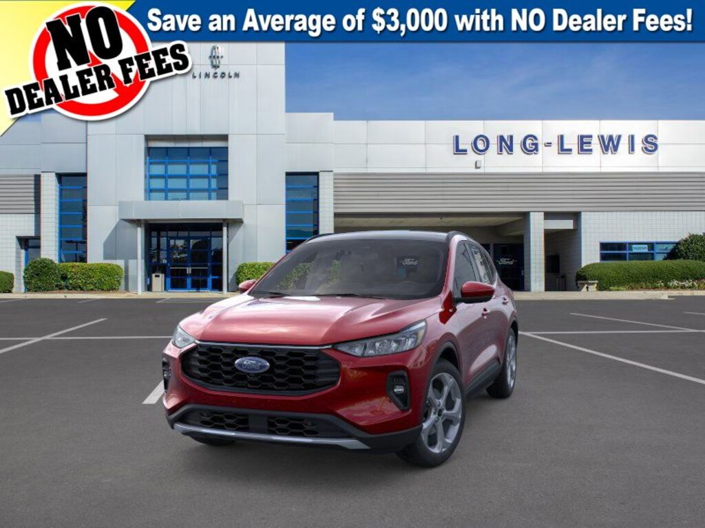 Rapid Red Metallic Tinted Clearcoat 2026 Ford Escape Hybrid ST-Line Select AWD eCVT 2.5L iVCT 2.5L iVCT, 10-Way Power Driver's Seat, 12.3" Productivity Screen in Instrument Cluster, 2.91 Axle Ratio, 360-Degree Camera w/Split View, 4-Wheel Disc Brakes, 6 Speakers, 6-Way Power Passenger Seat, ABS brakes, Adaptive Cruise Control w/Stop-and-Go, Air Conditioning, Alloy wheels, AM/FM radio: SiriusXM, AM/FM Stereo, Auto High-beam Headlights, Automatic temperature control, Black Roof-Rack Side Rails, Body Color Mirrors, Brake assist, Bumpers: body-color, Compass, Connected Navigation, Delay-off headlights, Driver door bin, Driver vanity mirror, Dual front impact airbags, Dual front side impact airbags, Electronic Fuel Door Release, Electronic Stability Control, Emergency communication system: SYNC 4 911 Assist, Ford App, Ford Co-Pilot360 Assist 2.0, Four wheel independent suspension, Front anti-roll bar, Front Bucket Seats, Front Center Armrest, Front dual zone A/C, Front fog lights, Front License Plate Bracket, Front reading lights, Fully automatic headlights, HD Radio, Heated door mirrors, Heated front seats, Heated steering wheel, Heated Vinyl/Cloth Front Sport Contour Bucket Seats, Illuminated entry, Intersection Assist, Knee airbag, Low tire pressure warning, Memory Package, Neutral Towing Capability, Occupant sensing airbag, Outside temperature display, Overhead airbag, Overhead console, Panic alarm, Panoramic Vista Roof, Passenger door bin, Passenger vanity mirror, Pedestrian Alert Sounder, Power door mirrors, Power driver seat, Power Liftgate, Power steering, Power windows, Predictive Speed Assist, Radio data system, Radio: B&O Sound System by Bang & Olufsen, Rear anti-roll bar, Rear Parking Sensor, Rear reading lights, Rear seat center armrest, Rear window defroster, Rear window wiper, Remote keyless entry, Reverse Brake Assist, Speed control, Speed-sensing steering, Speed-Sensitive Wipers, Split folding rear seat, Spoiler, Sport steering wheel, Steering wheel mounted audio controls, SYNC 4, SYNC 4 w/Enhanced Voice Recognition, Tachometer, Tech Pack #2, Telescoping steering wheel, Tilt steering wheel, Traction control, Trip computer, Variably intermittent wipers, Wheels: 18" Rock Metallic Painted Aluminum, Wireless Charging Pad, 2.5L iVCT.