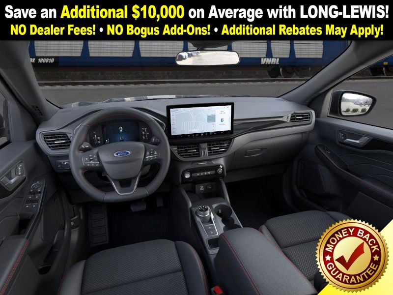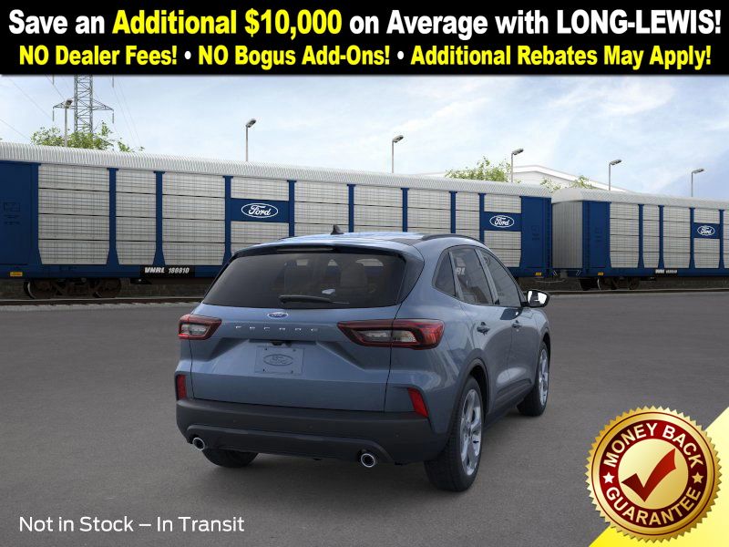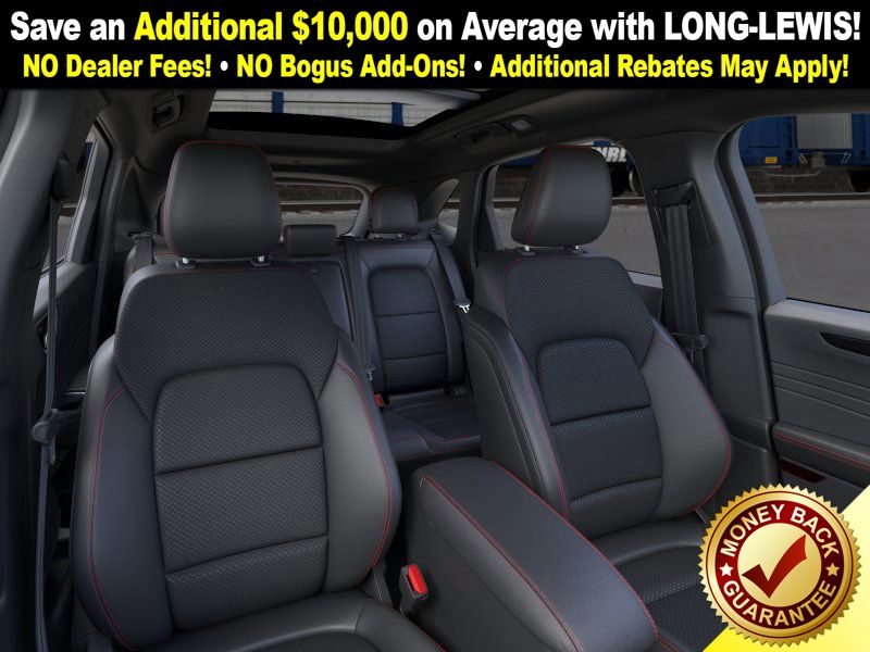 vapor blue metallic 2026 Ford Escape ST-Line NFT FWD 8-Speed Automatic 1.5L EcoBoost 3.81 Axle Ratio, 4-Way Manual Front Passenger Seat, 4-Wheel Disc Brakes, 6 Speakers, 8-Way Power Driver Seat, ABS brakes, Adaptive Cruise Control with Stop-and-Go, Air Conditioning, Alloy wheels, AM/FM radio: SiriusXM 360L, Auto High-beam Headlights, Automatic temperature control, Black Roof-Rack Side Rails, Brake assist, Bumpers: body-color, Cold Weather Package, Compass, Connected Navigation (1-Year Included), Delay-off headlights, Digital Rear View Camera, Driver door bin, Driver vanity mirror, Dual front impact airbags, Dual front side impact airbags, Electronic Stability Control, Emergency communication system: SYNC 4 911 Assist, Evasive Steering Assist, Ford App, Ford Co-Pilot360 Assist+, Four wheel independent suspension, Front anti-roll bar, Front Bucket Seats, Front Center Armrest, Front dual zone A/C, Front License Plate Bracket, Front reading lights, Fully automatic headlights, Heated Front Row Seats, Heated Sideview Mirrors, Heated Steering Wheel, Heated steering wheel, Illuminated entry, Intersection Assist, Knee airbag, Low tire pressure warning, Occupant sensing airbag, Outside temperature display, Overhead airbag, Overhead console, Panic alarm, Panoramic Vista Roof, Partial Vinyl/Cloth Front Sport Contour Bucket Seats with Red Stitching, Passenger door bin, Passenger vanity mirror, Power door mirrors, Power driver seat, Power Liftgate, Power steering, Power windows, Predictive Speed Assist, Radio data system, Radio: AM/FM Stereo with SiriusXM 360L, Rear anti-roll bar, Rear Parking Sensor, Rear reading lights, Rear seat center armrest, Rear window defroster, Rear window wiper, Remote keyless entry, Remote Starter System, Speed control, Speed-sensing steering, Speed-Sensitive Wipers, Split folding rear seat, Spoiler, Sport steering wheel, Steering wheel mounted audio controls, SYNC 4, SYNC 4 with Enhanced Voice Recognition, Tachometer, Tech Pack #1, Telescoping steering wheel, Tilt steering wheel, Traction control, Trip computer, Variably intermittent wipers, Wheels: 18" Rock Metallic Painted Aluminum.