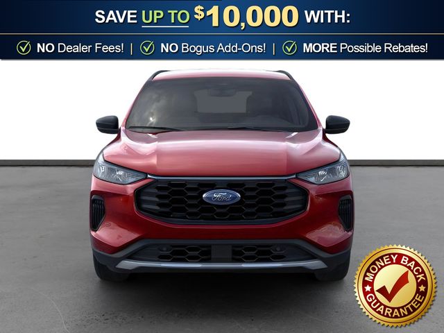 2026 Ford Escape ST-Line NFT Rapid Red Metallic Tinted Clearcoat ST-Line NFT FWD 8-Speed Automatic 1.5L EcoBoost 3.81 Axle Ratio, 4-Way Manual Front Passenger Seat, 4-Wheel Disc Brakes, 6 Speakers, 8-Way Power Driver Seat, ABS brakes, Air Conditioning, Alloy wheels, AM/FM radio: SiriusXM 360L, Auto High-beam Headlights, Automatic temperature control, Brake assist, Bumpers: body-color, Cold Weather Package, Compass, Delay-off headlights, Driver door bin, Driver vanity mirror, Dual front impact airbags, Dual front side impact airbags, Electronic Stability Control, Emergency communication system: SYNC 4 911 Assist, Equipment Group 300A, Ford App, Four wheel independent suspension, Front anti-roll bar, Front Bucket Seats, Front Center Armrest, Front dual zone A/C, Front License Plate Bracket, Front reading lights, Fully automatic headlights, Heated Front Row Seats, Heated Sideview Mirrors, Heated Steering Wheel, Heated steering wheel, Illuminated entry, Knee airbag, Low tire pressure warning, Occupant sensing airbag, Outside temperature display, Overhead airbag, Overhead console, Panic alarm, Partial Vinyl/Cloth Front Sport Contour Bucket Seats with Red Stitching, Passenger door bin, Passenger vanity mirror, Power door mirrors, Power driver seat, Power steering, Power windows, Radio data system, Radio: AM/FM Stereo with SiriusXM 360L, Rear anti-roll bar, Rear reading lights, Rear seat center armrest, Rear window defroster, Rear window wiper, Remote keyless entry, Remote Starter System, Speed control, Speed-sensing steering, Speed-Sensitive Wipers, Split folding rear seat, Spoiler, Sport steering wheel, Steering wheel mounted audio controls, SYNC 4, Tachometer, Telescoping steering wheel, Tilt steering wheel, Traction control, Trip computer, Variably intermittent wipers, Wheels: 18" Rock Metallic Painted Aluminum.