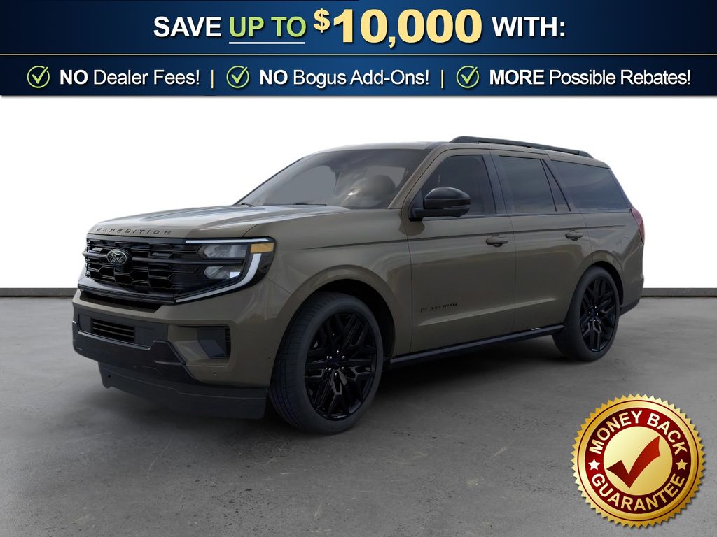 Dealer Discount of $3,324 off MSRP Marsh Gray 2026 Ford Expedition Platinum NFT 4WD 10-Speed Automatic 3.5L V6 EcoBoost High Output 4WD, 10 Speakers, 2nd Row Power-Folding Captain's Chairs, 3.73 Axle Ratio, 3rd row seats: split-bench, 4-Wheel Disc Brakes, ABS brakes, Air Conditioning, Alloy wheels, AM/FM radio: SiriusXM with 360L, Apple CarPlay/Android Auto, Auto High-beam Headlights, Auto-dimming door mirrors, Auto-dimming Rear-View mirror, Automatic temperature control, Black Belt Molding, Black Expedition Lettering on Hood, Black Headlamp Bezel with Ebony Trim Applique, Black Onyx Painted Power Deployable Running Boards, Black Platinum Badge on Tailgate, Black Roof Rails, Brake assist, Bumpers: body-color, Carbon Black Front Bumper/Fascia, Compass, Delay-off headlights, Driver door bin, Driver vanity mirror, Driver's Package, Dual front impact airbags, Dual front side impact airbags, Electronic Stability Control, Emergency communication system: 911 Assist, Engine Sound Enhancer, Exterior Parking Camera Rear, Ford Connectivity Package (1-Year Included), Ford Digital Experience, Four wheel independent suspension, Front anti-roll bar, Front Bucket Seats, Front Center Armrest, Front dual zone A/C, Front License Plate Bracket, Front reading lights, Fully automatic headlights, Garage door transmitter, Genuine wood dashboard insert, Genuine wood door panel insert, Heated and Ventilated Leather Front Captain's Chairs, Heated door mirrors, Heated front seats, Heated rear seats, Heated steering wheel, High Flow Exhaust System, Illuminated entry, Intersection Assist, Leather steering wheel, Low tire pressure warning, Memory seat, Multicontour Active Motion Lthr Frnt Captains Chairs, Navigation System, Occupant sensing airbag, Outside temperature display, Overhead airbag, Overhead console, Panic alarm, Passenger door bin, Passenger vanity mirror, Power door mirrors, Power driver seat, Power moonroof: Vista Roof, Power passenger seat, Power steering, Power windows, Radio data system, Radio: B&O Play Unleashed, Radio: B&O Sound System by Bang and Olufsen, Rain sensing wipers, Rear air conditioning, Rear anti-roll bar, Rear reading lights, Rear Side Windows Laminated Glass, Rear window defroster, Rear window wiper, Reclining 3rd row seat, Remote keyless entry, Security system, Signature Grille Lighting, SiriusXM with 360L, Speed control, Speed-sensing steering, Speed-Sensitive Wipers, Split folding rear seat, Spoiler, Stealth Appearance Package, Stealth Performance Package, Steering wheel memory, Steering wheel mounted audio controls, Tachometer, Telescoping steering wheel, Tilt steering wheel, Traction control, Trip computer, Turn signal indicator mirrors, Variably intermittent wipers, Ventilated front seats, Voltmeter, Wheels: 20" x 8.5" Ebony Bright Machined Aluminum, Wheels: 22" x 9.0" Ebony Bright Machined Face Aluminum, Wheels: 24" x 9.5" Ebony Painted Aluminum, 4WD.
