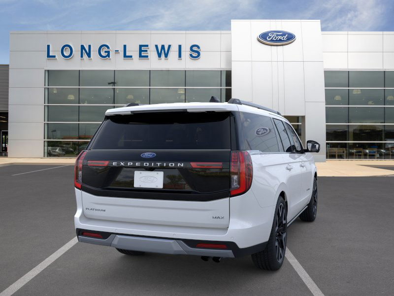 2026 Ford Expedition Max Platinum NFT Star White Metallic Tri-Coat Platinum NFT 4WD 10-Speed Automatic 3.5L V6 EcoBoost High Output 10 Speakers, 2nd Row Power-Folding Captain's Chairs, 3.73 Axle Ratio, 3rd row seats: split-bench, 4-Wheel Disc Brakes, ABS brakes, Air Conditioning, Alloy wheels, AM/FM radio: SiriusXM with 360L, Apple CarPlay/Android Auto, Auto High-beam Headlights, Auto-dimming door mirrors, Auto-dimming Rear-View mirror, Automatic temperature control, Black Headlamp Bezel with Satin Trim Applique, Black Onyx Painted Power Deployable Running Boards, BlueCruise (equipment + 1-Year + 90-Day Plan), Brake assist, Bumpers: body-color, Carbon Black Front Bumper with Lit Grille Bar, Chrome Roof Rails with Black End Caps, Compass, Delay-off headlights, Driver door bin, Driver vanity mirror, Driver's Package, Dual front impact airbags, Dual front side impact airbags, Electronic Stability Control, Emergency communication system: 911 Assist, Engine Sound Enhancer, Exterior Parking Camera Rear, Ford Connectivity Package (1-Year Included), Ford Digital Experience, Four wheel independent suspension, Front anti-roll bar, Front Bucket Seats, Front Center Armrest, Front Door Scuff Plates with Met Insert and Bright Rear, Front dual zone A/C, Front reading lights, Fully automatic headlights, Garage door transmitter, Genuine wood dashboard insert, Genuine wood door panel insert, Heated and Ventilated Leather Front Captain's Chairs, Heated door mirrors, Heated front seats, Heated rear seats, Heated steering wheel, High Flow Exhaust System, Illuminated entry, Intersection Assist, Leather steering wheel, Low tire pressure warning, Memory seat, Multicontour Active Motion Lthr Frnt Captains Chairs, Navigation System, Occupant sensing airbag, Outside temperature display, Overhead airbag, Overhead console, Panic alarm, Passenger door bin, Passenger vanity mirror, Platinum Ultimate Interior Package, Platinum Ultimate Package, Polished Stainless Steel Beltline Molding, Power door mirrors, Power driver seat, Power moonroof: Vista Roof, Power passenger seat, Power steering, Power windows, Radio data system, Radio: B&O Play Unleashed, Radio: B&O Sound System by Bang and Olufsen, Rain sensing wipers, Rear air conditioning, Rear anti-roll bar, Rear reading lights, Rear Seat Radio Controls, Rear Side Windows Laminated Glass, Rear window defroster, Rear window wiper, Reclining 3rd row seat, Remote keyless entry, Satin Aluminum Expedition Lettering on Side and Hood, Satin Aluminum Platinum Badge on Tailgate, Security system, Signature Grille Lighting, SiriusXM with 360L, Speed control, Speed-sensing steering, Speed-Sensitive Wipers, Split folding rear seat, Spoiler, Steering wheel memory, Steering wheel mounted audio controls, Tachometer, Telescoping steering wheel, Tilt steering wheel, Traction control, Trip computer, Turn signal indicator mirrors, Variably intermittent wipers, Ventilated front seats, Voltmeter, Wheels: 20" x 8.5" Ebony Bright Machined Aluminum, Wheels: 22" x 9.0" Ebony Bright Machined Face Aluminum, Wheels: 24" x 9.5" Tarnished Dark Metallic.