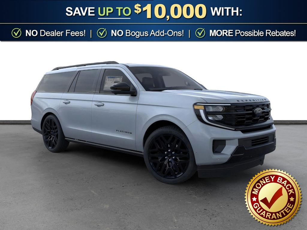 Dealer Discount of $3,457 off MSRP Glacier Gray Metallic Tri-Coat 2026 Ford Expedition Max Platinum NFT 4WD 10-Speed Automatic 3.5L V6 EcoBoost High Output 10 Speakers, 2nd Row Power-Folding Captain's Chairs, 3.73 Axle Ratio, 3rd row seats: split-bench, 4-Wheel Disc Brakes, ABS brakes, Air Conditioning, Alloy wheels, AM/FM radio: SiriusXM with 360L, Apple CarPlay/Android Auto, Auto High-beam Headlights, Auto-dimming door mirrors, Auto-dimming Rear-View mirror, Automatic temperature control, Black Belt Molding, Black Expedition Lettering on Hood, Black Headlamp Bezel with Ebony Trim Applique, Black Onyx Painted Power Deployable Running Boards, Black Platinum Badge on Tailgate, Black Roof Rails, Brake assist, Bumpers: body-color, Carbon Black Front Bumper/Fascia, Compass, Delay-off headlights, Driver door bin, Driver vanity mirror, Driver's Package, Dual front impact airbags, Dual front side impact airbags, Electronic Stability Control, Emergency communication system: 911 Assist, Engine Sound Enhancer, Exterior Parking Camera Rear, Ford Connectivity Package (1-Year Included), Ford Digital Experience, Four wheel independent suspension, Front anti-roll bar, Front Bucket Seats, Front Center Armrest, Front dual zone A/C, Front License Plate Bracket, Front reading lights, Fully automatic headlights, Garage door transmitter, Genuine wood dashboard insert, Genuine wood door panel insert, Heated and Ventilated Leather Front Captain's Chairs, Heated door mirrors, Heated front seats, Heated rear seats, Heated steering wheel, High Flow Exhaust System, Illuminated entry, Intersection Assist, Leather steering wheel, Low tire pressure warning, Memory seat, Multicontour Active Motion Lthr Frnt Captains Chairs, Navigation System, Occupant sensing airbag, Outside temperature display, Overhead airbag, Overhead console, Panic alarm, Passenger door bin, Passenger vanity mirror, Power door mirrors, Power driver seat, Power moonroof: Vista Roof, Power passenger seat, Power steering, Power windows, Radio data system, Radio: B&O Play Unleashed, Radio: B&O Sound System by Bang and Olufsen, Rain sensing wipers, Rear air conditioning, Rear anti-roll bar, Rear reading lights, Rear Side Windows Laminated Glass, Rear window defroster, Rear window wiper, Reclining 3rd row seat, Remote keyless entry, Security system, Signature Grille Lighting, SiriusXM with 360L, Speed control, Speed-sensing steering, Speed-Sensitive Wipers, Split folding rear seat, Spoiler, Stealth Appearance Package, Stealth Performance Package, Steering wheel memory, Steering wheel mounted audio controls, Tachometer, Telescoping steering wheel, Tilt steering wheel, Traction control, Trip computer, Turn signal indicator mirrors, Variably intermittent wipers, Ventilated front seats, Voltmeter, Wheels: 20" x 8.5" Ebony Bright Machined Aluminum, Wheels: 22" x 9.0" Ebony Bright Machined Face Aluminum, Wheels: 24" x 9.5" Ebony Painted Aluminum.