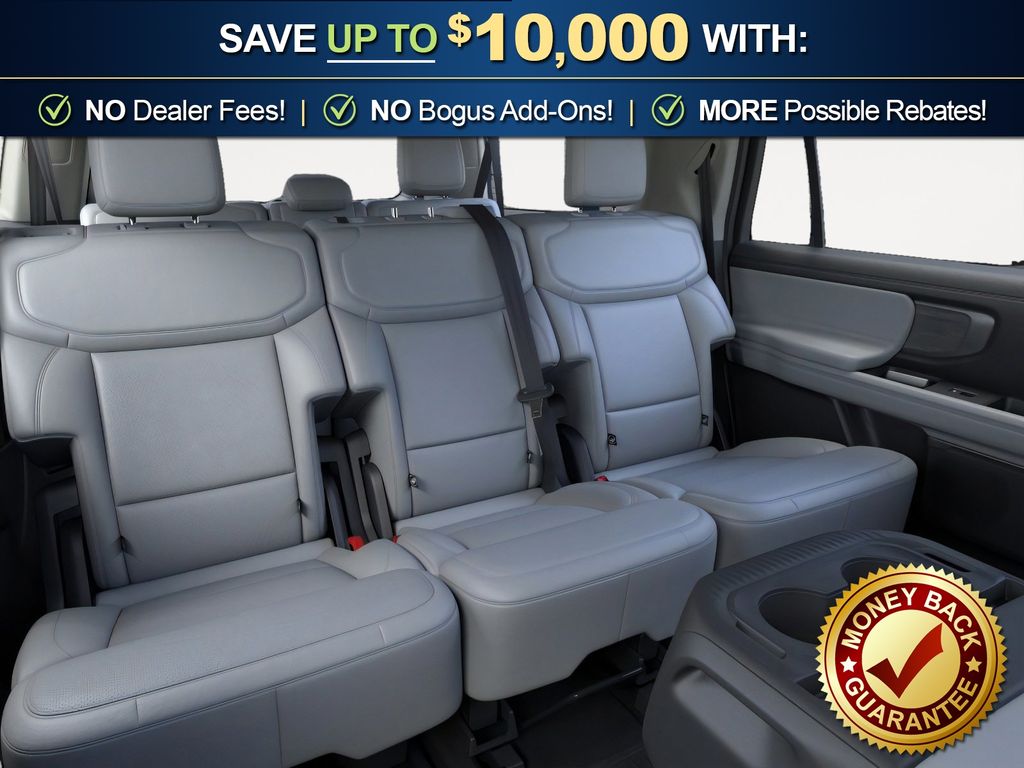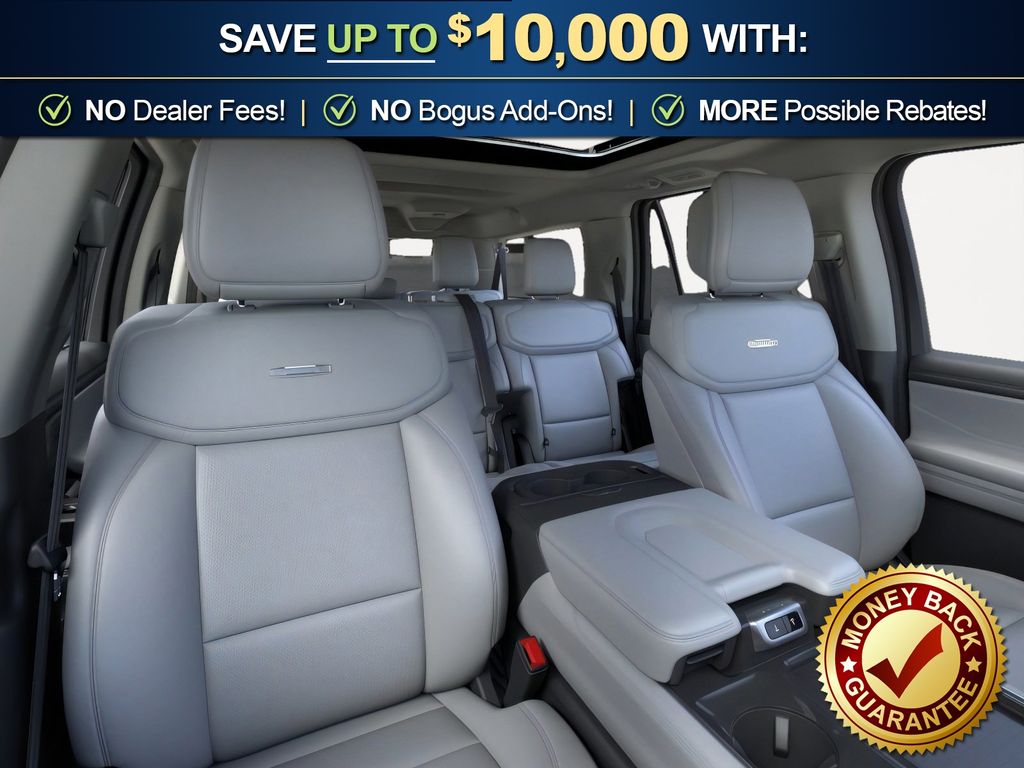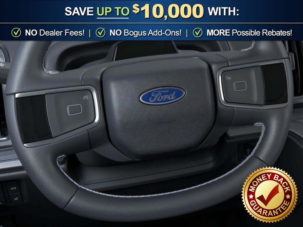 Ford Connectivity Package (1-Year Included), 10 Speakers, 2nd Row Power-Folding 40/20/40 Bench Seat, 2nd Row Power-Folding Captain's Chairs, 3.73 Axle Ratio, 3rd row seats: split-bench, 4-Wheel Disc Brakes, ABS brakes, Air Conditioning, Alloy wheels, AM/FM radio: SiriusXM with 360L, Apple CarPlay/Android Auto, Auto High-beam Headlights, Auto-dimming door mirrors, Auto-dimming Rear-View mirror, Automatic temperature control, Brake assist, Bumpers: body-color, Compass, Delay-off headlights, Driver door bin, Driver vanity mirror, Dual front impact airbags, Dual front side impact airbags, Electronic Stability Control, Emergency communication system: 911 Assist, Exterior Parking Camera Rear, Ford Digital Experience, Four wheel independent suspension, Front and 2nd Rows Floor Liners Without Carper Mats, Front anti-roll bar, Front Bucket Seats, Front Center Armrest, Front dual zone A/C, Front reading lights, Fully automatic headlights, Garage door transmitter, Genuine wood dashboard insert, Genuine wood door panel insert, Heated and Ventilated Leather Front Captain's Chairs, Heated door mirrors, Heated front seats, Heated rear seats, Heated steering wheel, Illuminated entry, Intersection Assist, Leather steering wheel, Low tire pressure warning, Memory seat, Multicontour Active Motion Lthr Frnt Captains Chairs, Navigation System, Occupant sensing airbag, Outside temperature display, Overhead airbag, Overhead console, Panic alarm, Passenger door bin, Passenger vanity mirror, Power door mirrors, Power driver seat, Power moonroof: Vista Roof, Power passenger seat, Power steering, Power windows, Radio data system, Radio: B&O Sound System by Bang and Olufsen, Rain sensing wipers, Rear air conditioning, Rear anti-roll bar, Rear reading lights, Rear window defroster, Rear window wiper, Reclining 3rd row seat, Remote keyless entry, Security system, SiriusXM with 360L, Speed control, Speed-sensing steering, Speed-Sensitive Wipers, Split folding rear seat, Spoiler, Steering wheel memory, Steering wheel mounted audio controls, Tachometer, Telescoping steering wheel, Tilt steering wheel, Traction control, Trip computer, Turn signal indicator mirrors, Variably intermittent wipers, Ventilated front seats, Voltmeter, and Wheels: 20" x 8.5" Ebony Bright Machined Aluminum.