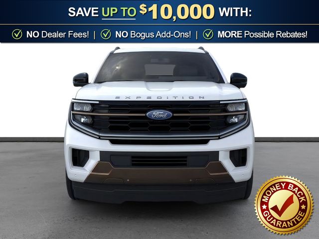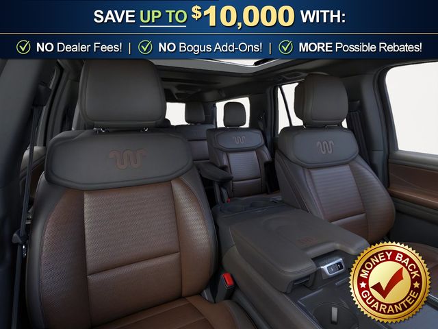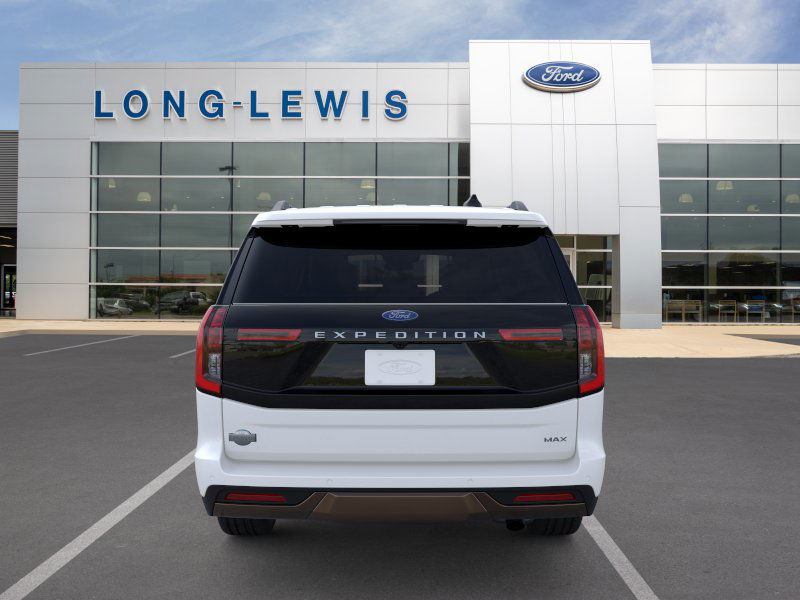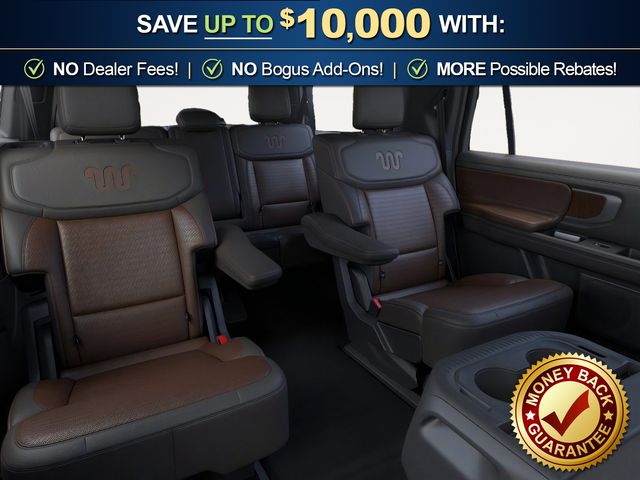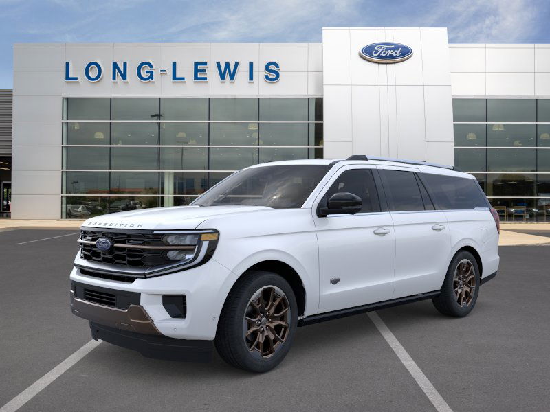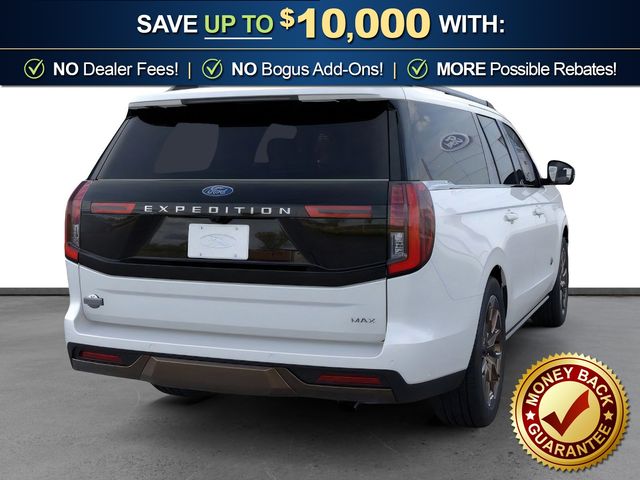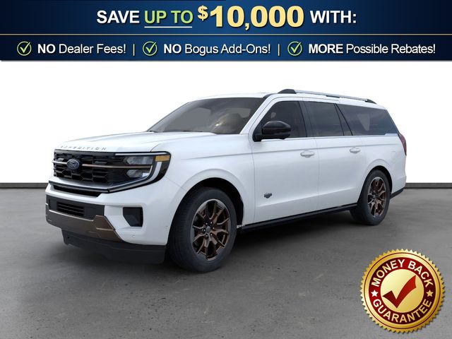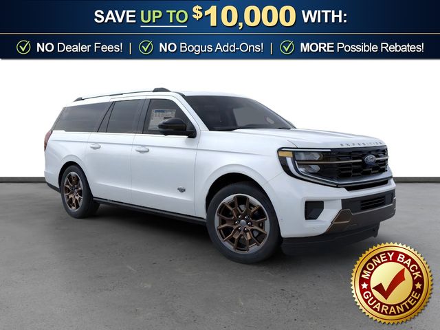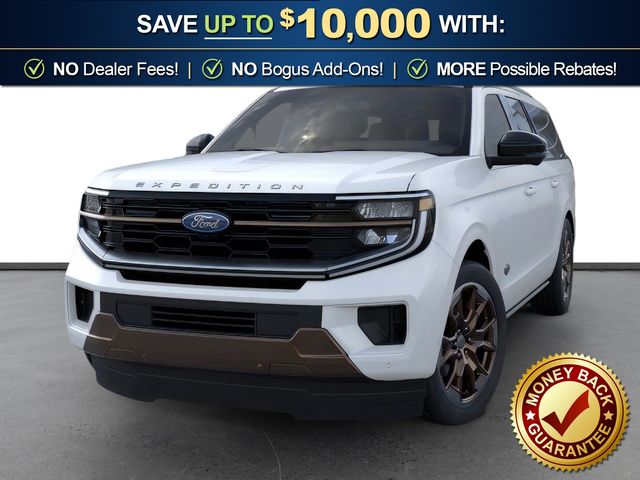2026 Ford Expedition Max King Ranch NFT Star White Metallic Tri-Coat King Ranch NFT 4WD 10-Speed Automatic EcoBoost 3.5L V6 GTDi DOHC 24V Twin Turbocharged 22 Speakers, 3.73 Axle Ratio, 3rd row seats: split-bench, 4-Wheel Disc Brakes, ABS brakes, Adaptive suspension, Adjustable pedals, Air Conditioning, Alloy wheels, AM/FM radio: SiriusXM with 360L, Apple CarPlay/Android Auto, Auto High-beam Headlights, Auto-dimming door mirrors, Auto-dimming Rear-View mirror, Automatic temperature control, Brake assist, Bumpers: body-color, Compass, Delay-off headlights, Driver door bin, Driver vanity mirror, Dual front impact airbags, Dual front side impact airbags, Electronic Stability Control, Emergency communication system: 911 Assist, Exterior Parking Camera Rear, Ford Connectivity Package (1-Year Included), Ford Digital Experience, Four wheel independent suspension, Front anti-roll bar, Front Bucket Seats, Front Center Armrest, Front dual zone A/C, Front reading lights, Fully automatic headlights, Garage door transmitter, Genuine wood dashboard insert, Genuine wood door panel insert, Heated door mirrors, Heated front seats, Heated rear seats, Heated steering wheel, Heated/Ventilated Premium Del Rio Leather Front Captain's Chairs, Illuminated entry, Leather steering wheel, Low tire pressure warning, Memory seat, Navigation System, Occupant sensing airbag, Outside temperature display, Overhead airbag, Overhead console, Panic alarm, Passenger door bin, Passenger vanity mirror, Pedal memory, Power door mirrors, Power driver seat, Power moonroof: Vista Roof, Power passenger seat, Power steering, Power windows, Radio data system, Radio: B&O Unleashed Sound System by Bang & Olufsen, Rain sensing wipers, Rear air conditioning, Rear anti-roll bar, Rear reading lights, Rear window defroster, Rear window wiper, Reclining 3rd row seat, Remote keyless entry, Security system, SiriusXM with 360L, Speed control, Speed-sensing steering, Speed-Sensitive Wipers, Split folding rear seat, Spoiler, Steering wheel memory, Steering wheel mounted audio controls, Tachometer, Telescoping steering wheel, Tilt steering wheel, Traction control, Trip computer, Turn signal indicator mirrors, Variably intermittent wipers, Ventilated front seats, Voltmeter, Wheels: 22" x 9.0" Diamond Cut Machined Face Aluminum.