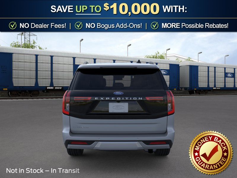 Dealer Discount of $3,178 off MSRP Glacier Gray Metallic Tri-Coat 2026 Ford Expedition Platinum NFC 4WD 10-Speed Automatic EcoBoost 3.5L V6 GTDi DOHC 24V Twin Turbocharged 4WD, 10 Speakers, 2nd Row Power-Folding Captain's Chairs, 3.73 Axle Ratio, 3rd row seats: split-bench, 4-Wheel Disc Brakes, ABS brakes, Air Conditioning, Alloy wheels, AM/FM radio: SiriusXM with 360L, Apple CarPlay/Android Auto, Auto High-beam Headlights, Auto-dimming door mirrors, Auto-dimming Rear-View mirror, Automatic temperature control, Black Onyx Painted Power Deployable Running Boards, Brake assist, Bumpers: body-color, Compass, Delay-off headlights, Driver door bin, Driver vanity mirror, Driver's Package, Dual front impact airbags, Dual front side impact airbags, Electronic Stability Control, Emergency communication system: 911 Assist, Exterior Parking Camera Rear, Ford Connectivity Package (1-Year Included), Ford Digital Experience, Four wheel independent suspension, Front anti-roll bar, Front Bucket Seats, Front Center Armrest, Front dual zone A/C, Front License Plate Bracket, Front reading lights, Fully automatic headlights, Garage door transmitter, Genuine wood dashboard insert, Genuine wood door panel insert, Heated and Ventilated Leather Front Captain's Chairs, Heated door mirrors, Heated front seats, Heated rear seats, Heated steering wheel, Illuminated entry, Intersection Assist, Leather steering wheel, Low tire pressure warning, Memory seat, Multicontour Active Motion Lthr Frnt Captains Chairs, Navigation System, Occupant sensing airbag, Outside temperature display, Overhead airbag, Overhead console, Panic alarm, Passenger door bin, Passenger vanity mirror, Power door mirrors, Power driver seat, Power moonroof: Vista Roof, Power passenger seat, Power steering, Power windows, Radio data system, Radio: B&O Play Unleashed, Radio: B&O Sound System by Bang and Olufsen, Rain sensing wipers, Rear air conditioning, Rear anti-roll bar, Rear reading lights, Rear window defroster, Rear window wiper, Reclining 3rd row seat, Remote keyless entry, Security system, SiriusXM with 360L, Speed control, Speed-sensing steering, Speed-Sensitive Wipers, Split folding rear seat, Spoiler, Steering wheel memory, Steering wheel mounted audio controls, Tachometer, Telescoping steering wheel, Tilt steering wheel, Traction control, Trip computer, Turn signal indicator mirrors, Variably intermittent wipers, Ventilated front seats, Voltmeter, Wheels: 20" x 8.5" Ebony Bright Machined Aluminum, Wheels: 22" x 9.0" Ebony Bright Machined Face Aluminum, 4WD.