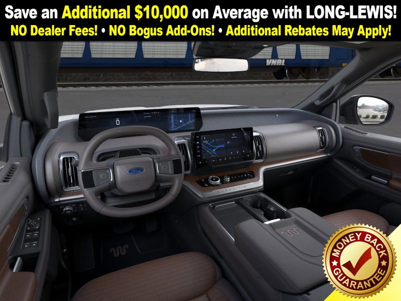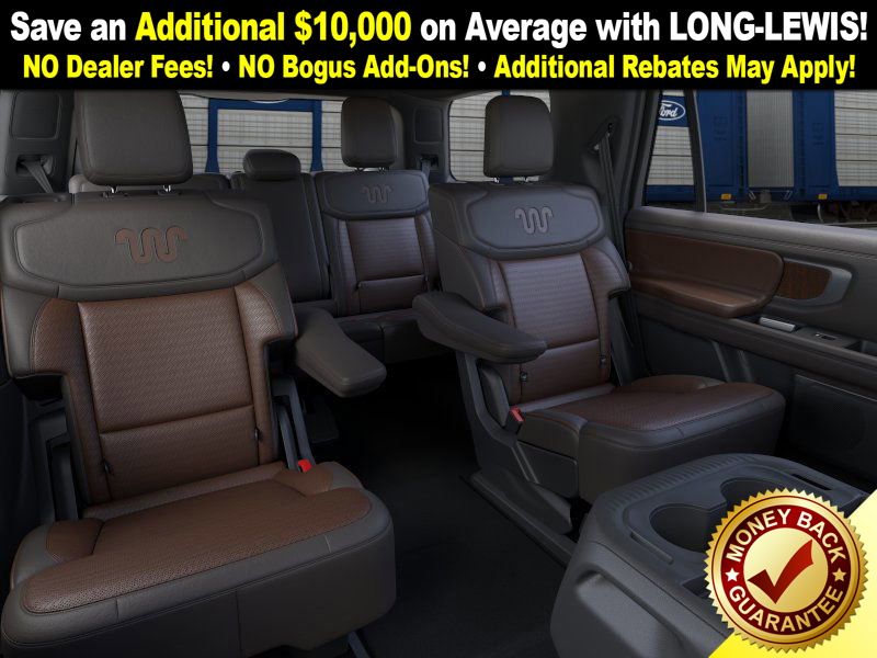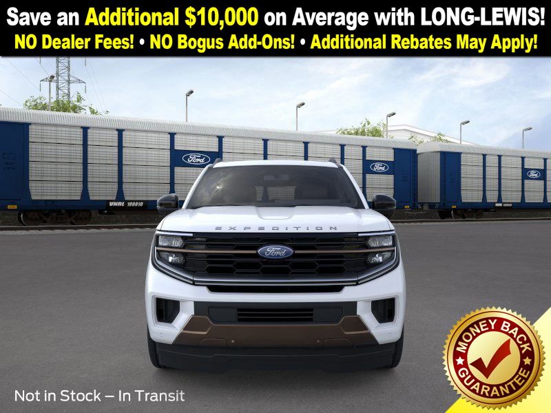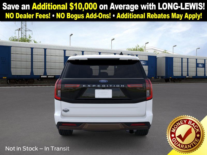 Star White Metallic Tri-Coat 2026 Ford Expedition King Ranch NFT 4WD 10-Speed Automatic EcoBoost 3.5L V6 GTDi DOHC 24V Twin Turbocharged 4WD, 22 Speakers, 3.73 Axle Ratio, 3rd row seats: split-bench, 4-Wheel Disc Brakes, ABS brakes, Adaptive suspension, Adjustable pedals, Air Conditioning, Alloy wheels, AM/FM radio: SiriusXM with 360L, Apple CarPlay/Android Auto, Auto High-beam Headlights, Auto-dimming door mirrors, Auto-dimming Rear-View mirror, Automatic temperature control, Brake assist, Bumpers: body-color, Compass, Delay-off headlights, Driver door bin, Driver vanity mirror, Dual front impact airbags, Dual front side impact airbags, Electronic Stability Control, Emergency communication system: 911 Assist, Exterior Parking Camera Rear, Ford Connectivity Package (1-Year Included), Ford Digital Experience, Four wheel independent suspension, Front anti-roll bar, Front Bucket Seats, Front Center Armrest, Front dual zone A/C, Front License Plate Bracket, Front reading lights, Fully automatic headlights, Garage door transmitter, Genuine wood dashboard insert, Genuine wood door panel insert, Heated door mirrors, Heated front seats, Heated rear seats, Heated steering wheel, Htd/Vent Prem Del Rio Leather Fr Captain's Chairs, Illuminated entry, Leather steering wheel, Low tire pressure warning, Memory seat, Navigation System, Occupant sensing airbag, Outside temperature display, Overhead airbag, Overhead console, Panic alarm, Passenger door bin, Passenger vanity mirror, Pedal memory, Power door mirrors, Power driver seat, Power moonroof: Vista Roof, Power passenger seat, Power steering, Power windows, Radio data system, Radio: B&O Unleashed Sound System by Bang & Olufsen, Rain sensing wipers, Rear air conditioning, Rear anti-roll bar, Rear reading lights, Rear window defroster, Rear window wiper, Reclining 3rd row seat, Remote keyless entry, Security system, SiriusXM w/360L, Speed control, Speed-sensing steering, Speed-Sensitive Wipers, Split folding rear seat, Spoiler, Steering wheel memory, Steering wheel mounted audio controls, Tachometer, Telescoping steering wheel, Tilt steering wheel, Traction control, Trip computer, Turn signal indicator mirrors, Variably intermittent wipers, Ventilated front seats, Voltmeter, Wheels: 22" x 9.0" Diamond Cut Machined Face Alum, 4WD.