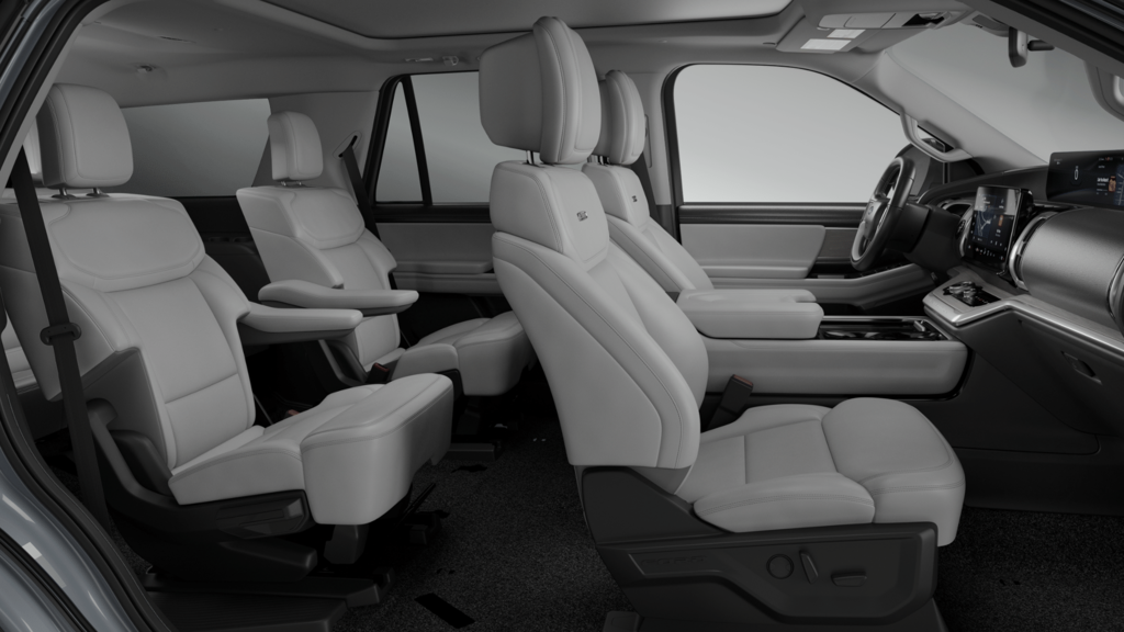 Space Silver Metallic 2026 Ford Expedition Platinum NFT 4WD 10-Speed Automatic EcoBoost 3.5L V6 GTDi DOHC 24V Twin Turbocharged 4WD, 10 Speakers, 2nd Row Power-Folding Captain's Chairs, 3.73 Axle Ratio, 3rd row seats: split-bench, 4-Wheel Disc Brakes, ABS brakes, Air Conditioning, Alloy wheels, AM/FM radio: SiriusXM with 360L, Apple CarPlay/Android Auto, Auto High-beam Headlights, Auto-dimming door mirrors, Auto-dimming Rear-View mirror, Automatic temperature control, Black Onyx Painted Power Deployable Running Boards, Brake assist, Bumpers: body-color, Compass, Delay-off headlights, Driver door bin, Driver vanity mirror, Driver's Package, Dual front impact airbags, Dual front side impact airbags, Electronic Stability Control, Emergency communication system: 911 Assist, Exterior Parking Camera Rear, Ford Connectivity Package (1-Year Included), Ford Digital Experience, Four wheel independent suspension, Front anti-roll bar, Front Bucket Seats, Front Center Armrest, Front dual zone A/C, Front License Plate Bracket, Front reading lights, Fully automatic headlights, Garage door transmitter, Genuine wood dashboard insert, Genuine wood door panel insert, Heated & Ventilated Leather Front Captain's Chairs, Heated door mirrors, Heated front seats, Heated rear seats, Heated steering wheel, Illuminated entry, Intersection Assist, Leather steering wheel, Low tire pressure warning, Memory seat, Multicontour Active Motion Lthr Frnt Captains Chairs, Navigation System, Occupant sensing airbag, Outside temperature display, Overhead airbag, Overhead console, Panic alarm, Passenger door bin, Passenger vanity mirror, Power door mirrors, Power driver seat, Power moonroof: Vista Roof, Power passenger seat, Power steering, Power windows, Radio data system, Radio: B&O Play Unleashed, Radio: B&O Sound System by Bang & Olufsen, Rain sensing wipers, Rear air conditioning, Rear anti-roll bar, Rear reading lights, Rear window defroster, Rear window wiper, Reclining 3rd row seat, Remote keyless entry, Security system, SiriusXM w/360L, Speed control, Speed-sensing steering, Speed-Sensitive Wipers, Split folding rear seat, Spoiler, Steering wheel memory, Steering wheel mounted audio controls, Tachometer, Telescoping steering wheel, Tilt steering wheel, Traction control, Trip computer, Turn signal indicator mirrors, Variably intermittent wipers, Ventilated front seats, Voltmeter, Wheels: 20" x 8.5" Ebony Bright Machined Aluminum, Wheels: 22" x 9.0" Ebony Bright Machined Face Alum, 4WD.