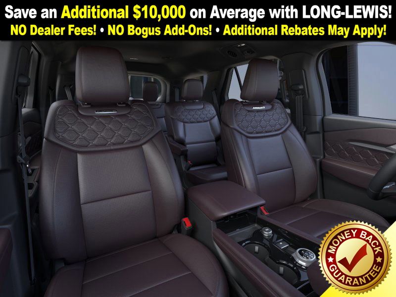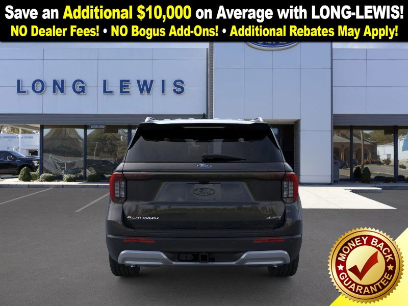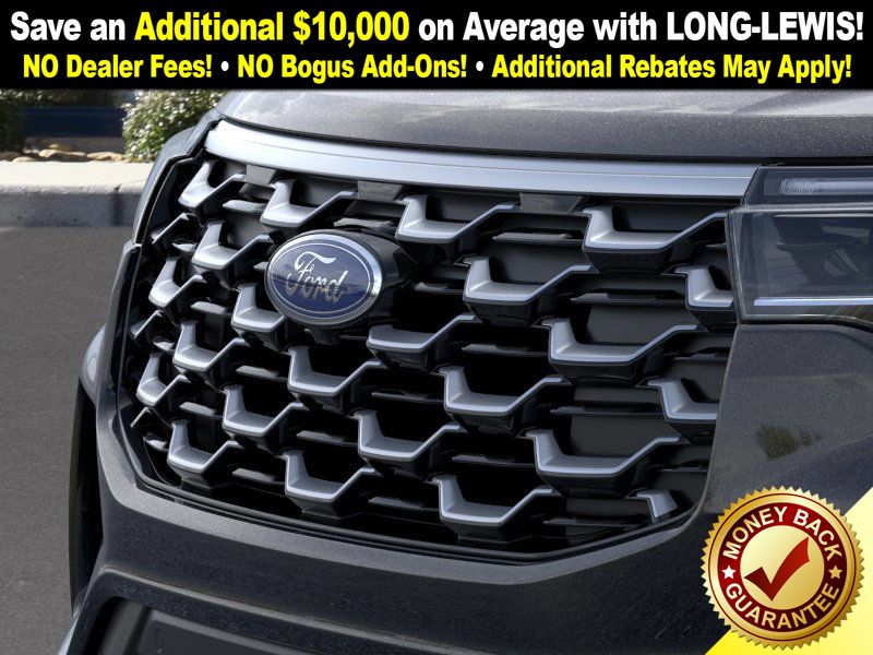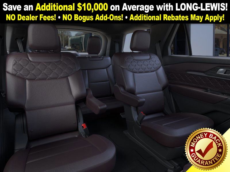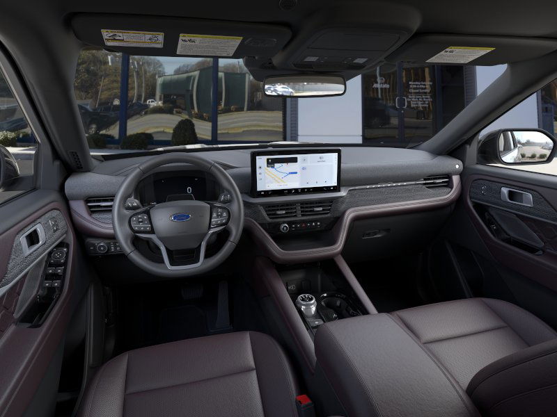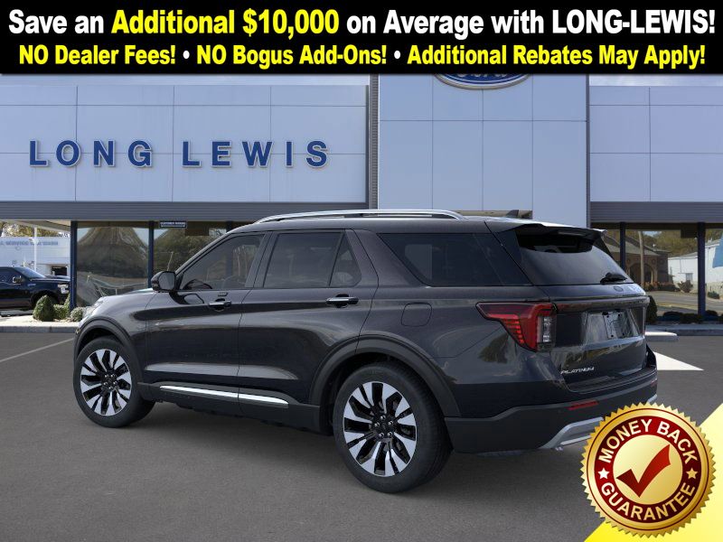Agate Black Metallic 2026 Ford Explorer Platinum FCT 4WD 10-Speed Automatic 2.3L EcoBoost I-4 4WD, 14 Speakers, 3rd row seats: bench, 4-Wheel Disc Brakes, ABS brakes, ActiveX Trimmed Captain's Chairs, Air Conditioning, Alloy wheels, AM/FM radio: SiriusXM with 360L, Apple CarPlay/Android Auto, Auto High-beam Headlights, Auto-dimming door mirrors, Auto-dimming Rear-View mirror, Automatic temperature control, Brake assist, Bumpers: body-color, Compass, Delay-off headlights, Driver door bin, Driver vanity mirror, Dual front impact airbags, Dual front side impact airbags, Electronic Stability Control, Emergency communication system: 911 Assist, Exterior Parking Camera Rear, Four wheel independent suspension, Front anti-roll bar, Front Bucket Seats, Front Center Armrest, Front dual zone A/C, Front fog lights, Front License Plate Bracket, Front reading lights, Fully automatic headlights, Garage door transmitter, Heated door mirrors, Heated front seats, Heated rear seats, Heated steering wheel, Illuminated entry, Knee airbag, Leather steering wheel, Low tire pressure warning, Lux Leather Package, Memory seat, Navigation System, Occupant sensing airbag, Outside temperature display, Overhead airbag, Overhead console, Panic alarm, Passenger door bin, Passenger vanity mirror, Platinum Badges on Front Row Seats, Power door mirrors, Power driver seat, Power Liftgate, Power passenger seat, Power steering, Power windows, Premium Leather Seating Surfaces Captain's Chairs, Radio data system, Rain sensing wipers, Rear air conditioning, Rear anti-roll bar, Rear reading lights, Rear window defroster, Rear window wiper, Remote keyless entry, SecuriCode Keyless Entry Keypad, Security system, Speed control, Speed-sensing steering, Speed-Sensitive Wipers, Split folding rear seat, Spoiler, Steering wheel mounted audio controls, Tachometer, Telescoping steering wheel, Tilt steering wheel, Traction control, Trip computer, Turn signal indicator mirrors, Variably intermittent wipers, Ventilated front seats, Wheels: 20" Luster Nickel-Painted Aluminum, 4WD.