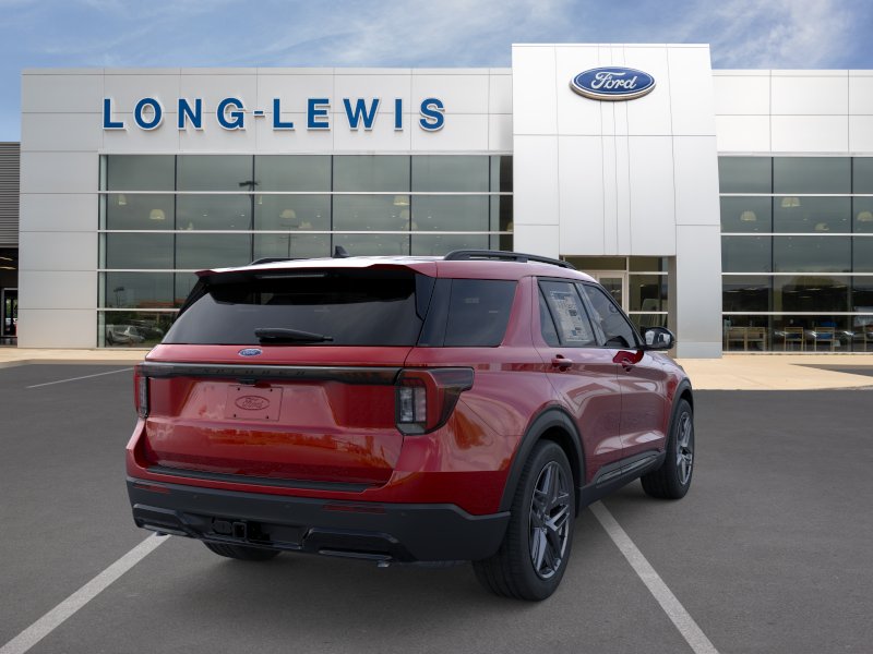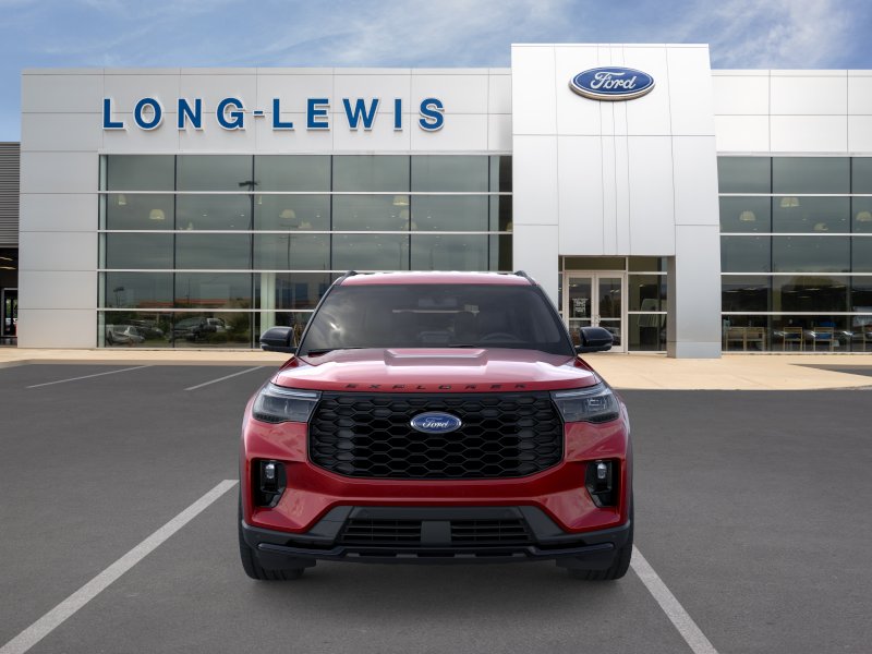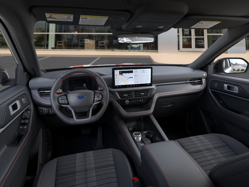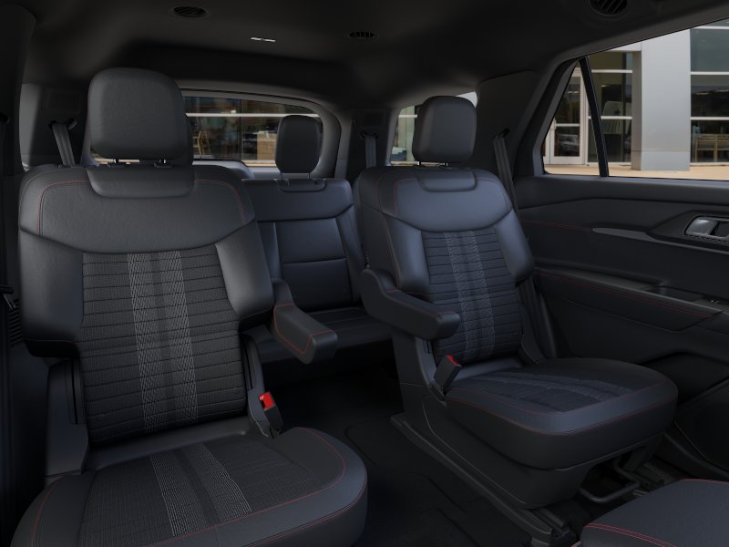 2026 Ford Explorer ST-Line NFT Rapid Red Metallic Tinted Clearcoat ST-Line NFT RWD 10-Speed Automatic 2.3L EcoBoost I-4 10 Speakers, 110V/150W AC Power Outlet, 2nd Row Captain's Chairs w/E-Z Entry and Armrest, 2nd Row Heated Seats, 3rd row seats: bench, 4-Wheel Disc Brakes, ABS brakes, Air Conditioning, Alloy wheels, AM/FM radio: SiriusXM with 360L, Ambient Lighting, Apple CarPlay/Android Auto, Auto High-beam Headlights, Auto-Dimming Interior Rear-View Mirror, Automatic temperature control, Brake assist, Bumpers: body-color, Compass, Delay-off headlights, Driver door bin, Driver vanity mirror, Dual front impact airbags, Dual front side impact airbags, Electronic Stability Control, Emergency communication system: 911 Assist, Exterior Parking Camera Rear, Four wheel independent suspension, Front anti-roll bar, Front Bucket Seats, Front Center Armrest, Front dual zone A/C, Front fog lights, Front reading lights, Fully automatic headlights, Garage door transmitter, Heated door mirrors, Heated front seats, Heated steering wheel, Heated Unique Cloth Captain's Chairs, Illuminated entry, Knee airbag, Leather steering wheel, Low tire pressure warning, Manual-Folding Sideview Mirrors, Memory Driver's Seat, Navigation System, Occupant sensing airbag, Outside temperature display, Overhead airbag, Overhead console, Panic alarm, Passenger door bin, Passenger vanity mirror, Performance Brakes, Power door mirrors, Power driver seat, Power Liftgate, Power passenger seat, Power steering, Power windows, Premium Package, Radio: B&O Sound System by Bang and Olufsen, Rain-Sensing Wipers (front Only), Rear air conditioning, Rear anti-roll bar, Rear reading lights, Rear window defroster, Rear window wiper, Red Painted Performance Front and Rear Brake Calipers, Remote keyless entry, Security system, Speed control, Speed-sensing steering, Speed-Sensitive Wipers, Split folding rear seat, Spoiler, ST-Line Street Pack, Steering wheel mounted audio controls, Tachometer, Telescoping steering wheel, Tilt steering wheel, Traction control, Trip computer, Variably intermittent wipers, Wheels: 20" Ebony-Painted Machined Aluminum, Wheels: 21" Magnetite-Painted Aluminum.