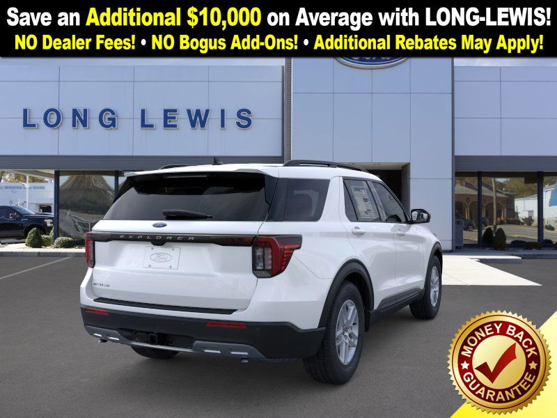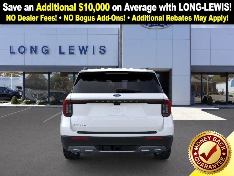 Star White Metallic Tri-Coat 2026 Ford Explorer Active FCT RWD 10-Speed Automatic 2.3L EcoBoost I-4 3rd row seats: bench, 4-Wheel Disc Brakes, 6 Speakers, ABS brakes, Active Comfort Package, Air Conditioning, Alloy wheels, AM/FM radio: SiriusXM with 360L, AM/FM Stereo, Apple CarPlay/Android Auto, Auto High-beam Headlights, Automatic temperature control, Brake assist, Bumpers: body-color, Compass, Delay-off headlights, Driver door bin, Driver vanity mirror, Dual front impact airbags, Dual front side impact airbags, Electronic Stability Control, Emergency communication system: 911 Assist, Exterior Parking Camera Rear, Four wheel independent suspension, Front anti-roll bar, Front Bucket Seats, Front Center Armrest, Front dual zone A/C, Front Fascia, Front License Plate Bracket, Front reading lights, Fully automatic headlights, Heated ActiveX Seating Material Captain's Chairs, Heated door mirrors, Heated Steering Wheel, Illuminated entry, Knee airbag, Low tire pressure warning, Navigation System, Occupant sensing airbag, Outside temperature display, Overhead airbag, Overhead console, Panic alarm, Passenger door bin, Passenger vanity mirror, Power driver seat, Power steering, Power windows, Rear air conditioning, Rear anti-roll bar, Rear reading lights, Rear window defroster, Rear window wiper, Remote keyless entry, Remote Start System, SecuriCode Keyless Entry Keypad, Security system, Speed control, Speed-sensing steering, Speed-Sensitive Wipers, Split folding rear seat, Spoiler, Steering wheel mounted audio controls, Tachometer, Telescoping steering wheel, Tilt steering wheel, Traction control, Trip computer, Unique Cloth Captain's Chairs, Variably intermittent wipers, Wheels: 18" Sparkle Silver-Painted Aluminum.
