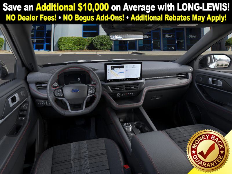 Dealer Discount of $2,324 off MSRP Vapor Blue Metallic 2026 Ford Explorer ST-Line NFT RWD 10-Speed Automatic 2.3L EcoBoost I-4 10 Speakers, 110V/150W AC Power Outlet, 2nd Row Heated Seats, 3rd row seats: bench, 4-Wheel Disc Brakes, ABS brakes, Air Conditioning, Alloy wheels, AM/FM radio: SiriusXM with 360L, Ambient Lighting, Apple CarPlay/Android Auto, Auto High-beam Headlights, Auto-Dimming Interior Rear-View Mirror, Automatic temperature control, Brake assist, Bumpers: body-color, Compass, Delay-off headlights, Driver door bin, Driver vanity mirror, Dual front impact airbags, Dual front side impact airbags, Electronic Stability Control, Emergency communication system: 911 Assist, Exterior Parking Camera Rear, Four wheel independent suspension, Front anti-roll bar, Front Bucket Seats, Front Center Armrest, Front dual zone A/C, Front fog lights, Front License Plate Bracket, Front reading lights, Fully automatic headlights, Garage door transmitter, Heated door mirrors, Heated front seats, Heated steering wheel, Heated Unique Cloth Captain's Chairs, Illuminated entry, Internet access capable: FordPass Connect 5G, Knee airbag, Leather steering wheel, Low tire pressure warning, Manual-Folding Sideview Mirrors, Memory Driver's Seat, Navigation System, Occupant sensing airbag, Outside temperature display, Overhead airbag, Overhead console, Panic alarm, Passenger door bin, Passenger vanity mirror, Power door mirrors, Power driver seat, Power Liftgate, Power passenger seat, Power steering, Power windows, Premium Package, Radio: B&O Sound System by Bang and Olufsen, Rain-Sensing Wipers (front Only), Rear air conditioning, Rear anti-roll bar, Rear reading lights, Rear window defroster, Rear window wiper, Remote keyless entry, Security system, Speed control, Speed-sensing steering, Speed-Sensitive Wipers, Split folding rear seat, Spoiler, Steering wheel mounted audio controls, Tachometer, Telescoping steering wheel, Tilt steering wheel, Traction control, Trip computer, Variably intermittent wipers, Wheels: 20" Ebony-Painted Machined Aluminum.