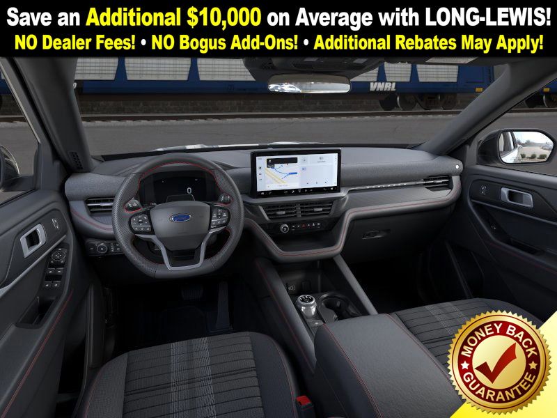 Dealer Discount of $2,359 off MSRP Vapor Blue Metallic 2026 Ford Explorer ST-Line NFT 4WD 10-Speed Automatic 2.3L EcoBoost I-4 4WD, 10 Speakers, 2nd Row Captain's Chairs w/E-Z Entry and Armrest, 3rd row seats: bench, 4-Wheel Disc Brakes, ABS brakes, Air Conditioning, Alloy wheels, AM/FM radio: SiriusXM with 360L, Apple CarPlay/Android Auto, Auto High-beam Headlights, Automatic temperature control, Brake assist, Bumpers: body-color, Compass, Delay-off headlights, Driver door bin, Driver vanity mirror, Dual front impact airbags, Dual front side impact airbags, Electronic Stability Control, Emergency communication system: 911 Assist, Exterior Parking Camera Rear, Four wheel independent suspension, Front anti-roll bar, Front Bucket Seats, Front Center Armrest, Front dual zone A/C, Front fog lights, Front License Plate Bracket, Front reading lights, Fully automatic headlights, Garage door transmitter, Heated door mirrors, Heated front seats, Heated steering wheel, Heated Unique Cloth Captain's Chairs, Illuminated entry, Internet access capable: FordPass Connect 5G, Knee airbag, Leather steering wheel, Low tire pressure warning, Navigation System, Occupant sensing airbag, Outside temperature display, Overhead airbag, Overhead console, Panic alarm, Passenger door bin, Passenger vanity mirror, Power door mirrors, Power driver seat, Power Liftgate, Power passenger seat, Power steering, Power windows, Radio: B&O Sound System by Bang and Olufsen, Rear air conditioning, Rear anti-roll bar, Rear reading lights, Rear window defroster, Rear window wiper, Remote keyless entry, SecuriCode Keyless Entry Keypad, Security system, Speed control, Speed-sensing steering, Speed-Sensitive Wipers, Split folding rear seat, Spoiler, Steering wheel mounted audio controls, Tachometer, Telescoping steering wheel, Tilt steering wheel, Traction control, Trip computer, Variably intermittent wipers, Wheels: 20" Ebony-Painted Machined Aluminum, 4WD.