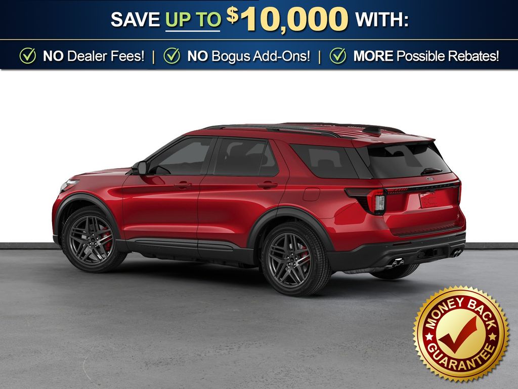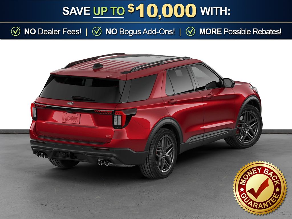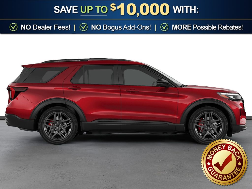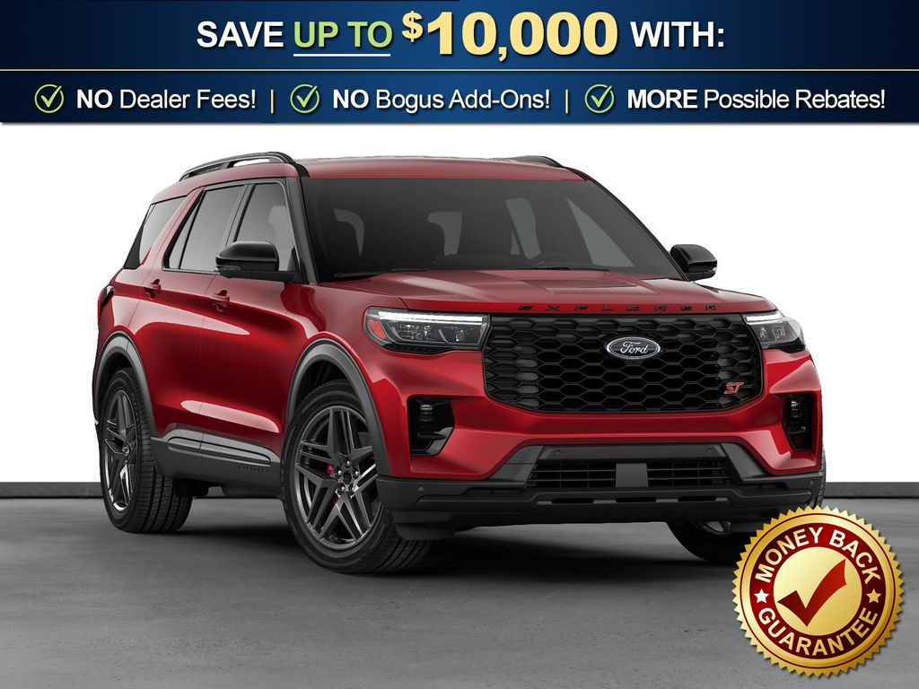 Dealer Discount of $3,027 off MSRP Rapid Red Metallic Tinted Clearcoat 2026 Ford Explorer ST FCT 4WD 10-Speed Automatic 3.0L EcoBoost V6 4WD, 10 Speakers, 3rd row seats: bench, 4-Wheel Disc Brakes, ABS brakes, Air Conditioning, Alloy wheels, AM/FM radio: SiriusXM with 360L, Apple CarPlay/Android Auto, Auto High-beam Headlights, Auto-dimming door mirrors, Auto-dimming Rear-View mirror, Automatic temperature control, Brake assist, Bumpers: body-color, Compass, Delay-off headlights, Driver door bin, Driver vanity mirror, Dual front impact airbags, Dual front side impact airbags, Electronic Stability Control, Emergency communication system: 911 Assist, Equipment Group 400A Standard Package, Exterior Parking Camera Rear, Four wheel independent suspension, Front anti-roll bar, Front Bucket Seats, Front Center Armrest, Front dual zone A/C, Front fog lights, Front reading lights, Fully automatic headlights, Garage door transmitter, Heated door mirrors, Heated front seats, Heated rear seats, Heated steering wheel, Heated/Ventilated Miko Suede Captain's Chairs, Illuminated entry, Knee airbag, Leather steering wheel, Low tire pressure warning, Memory seat, Multicontour Seats with Front Active Motion, Navigation System, Occupant sensing airbag, Outside temperature display, Overhead airbag, Overhead console, Panic alarm, Panoramic Fixed Glass Roof with Power Shade, Passenger door bin, Passenger vanity mirror, Power door mirrors, Power driver seat, Power Liftgate, Power passenger seat, Power steering, Power windows, Radio: B&O Sound System by Bang & Olufsen, Radio: B&O Sound System by Bang and Olufsen, Rain sensing wipers, Rear air conditioning, Rear anti-roll bar, Rear reading lights, Rear window defroster, Rear window wiper, Remote Control Front Windows, Remote keyless entry, Security system, Speed control, Speed-sensing steering, Speed-Sensitive Wipers, Split folding rear seat, Spoiler, Sport steering wheel, Steering wheel mounted audio controls, Sun and Sound Package, Tachometer, Telescoping steering wheel, Tilt steering wheel, Traction control, Trip computer, Turn signal indicator mirrors, Variably intermittent wipers, Ventilated front seats, Wheels: 21" Magnetite-Painted Aluminum, 4WD. Price includes: $3500 - Retail Customer Cash. Exp. 03/31/2026
