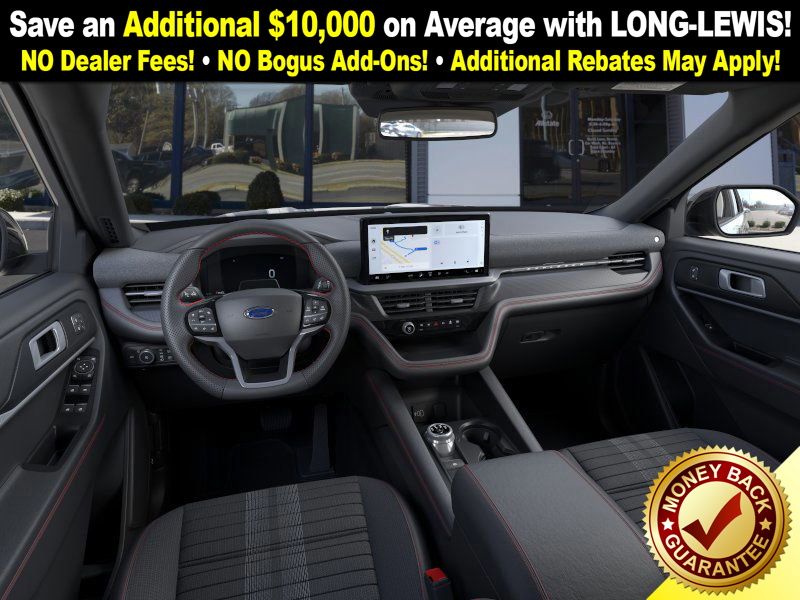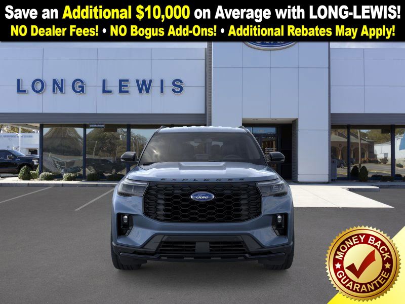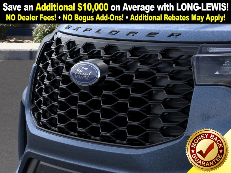 Vapor Blue Metallic 2026 Ford Explorer ST-Line FCT RWD 10-Speed Automatic 2.3L EcoBoost I-4 10 Speakers, 110V/150W AC Power Outlet, 2nd Row Heated Seats, 3rd row seats: bench, 4-Wheel Disc Brakes, ABS brakes, Air Conditioning, Alloy wheels, AM/FM radio: SiriusXM with 360L, Ambient Lighting, Apple CarPlay/Android Auto, Auto High-beam Headlights, Auto-Dimming Interior Rear-View Mirror, Automatic temperature control, Brake assist, Bumpers: body-color, Compass, Delay-off headlights, Driver door bin, Driver vanity mirror, Dual front impact airbags, Dual front side impact airbags, Electronic Stability Control, Emergency communication system: 911 Assist, Exterior Parking Camera Rear, Four wheel independent suspension, Front anti-roll bar, Front Bucket Seats, Front Center Armrest, Front dual zone A/C, Front fog lights, Front License Plate Bracket, Front reading lights, Fully automatic headlights, Garage door transmitter, Heated door mirrors, Heated front seats, Heated steering wheel, Heated Unique Cloth Captain's Chairs, Illuminated entry, Knee airbag, Leather steering wheel, Low tire pressure warning, Manual-Folding Sideview Mirrors, Memory Driver's Seat, Navigation System, Occupant sensing airbag, Outside temperature display, Overhead airbag, Overhead console, Panic alarm, Passenger door bin, Passenger vanity mirror, Performance Brakes, Power door mirrors, Power driver seat, Power Liftgate, Power passenger seat, Power steering, Power windows, Premium Package, Rear air conditioning, Rear anti-roll bar, Rear reading lights, Rear window defroster, Rear window wiper, Remote keyless entry, SecuriCode Keyless Entry Keypad, Security system, Speed control, Speed-sensing steering, Speed-Sensitive Wipers, Split folding rear seat, Spoiler, ST-Line Street Pack, Steering wheel mounted audio controls, Tachometer, Telescoping steering wheel, Tilt steering wheel, Traction control, Trip computer, Variably intermittent wipers, Wheels: 20" Ebony-Painted Machined Aluminum, Wheels: 21" Magnetite-Painted Aluminum.