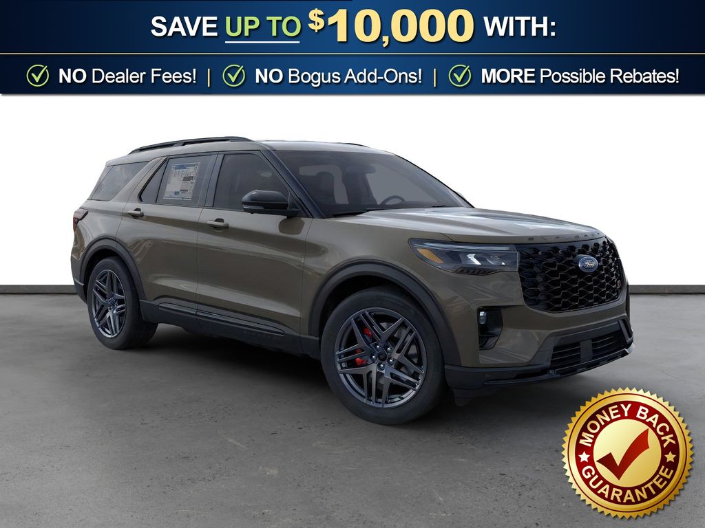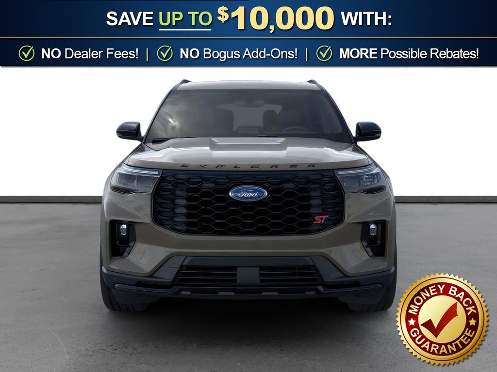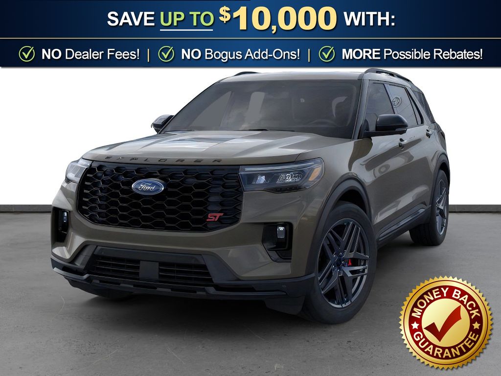 Marsh Gray 2026 Ford Explorer ST NFT RWD 10-Speed Automatic 3.0L EcoBoost V6 10 Speakers, 3rd row seats: bench, 4-Wheel Disc Brakes, ABS brakes, Air Conditioning, Alloy wheels, AM/FM radio: SiriusXM with 360L, Apple CarPlay/Android Auto, Auto High-beam Headlights, Auto-dimming door mirrors, Auto-dimming Rear-View mirror, Automatic temperature control, Brake assist, Bumpers: body-color, Compass, Delay-off headlights, Driver door bin, Driver vanity mirror, Dual front impact airbags, Dual front side impact airbags, Electronic Stability Control, Emergency communication system: 911 Assist, Exterior Parking Camera Rear, Four wheel independent suspension, Front anti-roll bar, Front Bucket Seats, Front Center Armrest, Front dual zone A/C, Front fog lights, Front reading lights, Fully automatic headlights, Garage door transmitter, Heated door mirrors, Heated front seats, Heated rear seats, Heated steering wheel, Heated/Ventilated Miko Suede Captain's Chairs, Illuminated entry, Knee airbag, Leather steering wheel, Low tire pressure warning, Memory seat, Navigation System, Occupant sensing airbag, Outside temperature display, Overhead airbag, Overhead console, Panic alarm, Passenger door bin, Passenger vanity mirror, Power door mirrors, Power driver seat, Power Liftgate, Power passenger seat, Power steering, Power windows, Radio: B&O Sound System by Bang and Olufsen, Rain sensing wipers, Rear air conditioning, Rear anti-roll bar, Rear reading lights, Rear window defroster, Rear window wiper, Remote keyless entry, Security system, Speed control, Speed-sensing steering, Speed-Sensitive Wipers, Split folding rear seat, Spoiler, Sport steering wheel, Steering wheel mounted audio controls, Tachometer, Telescoping steering wheel, Tilt steering wheel, Traction control, Trip computer, Turn signal indicator mirrors, Variably intermittent wipers, Ventilated front seats, Wheels: 21" Magnetite-Painted Aluminum.