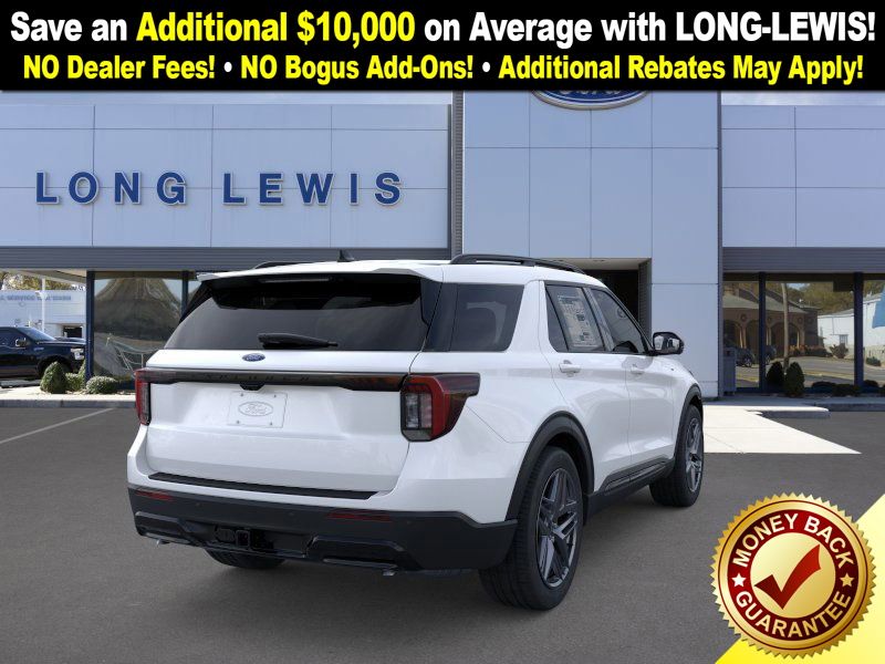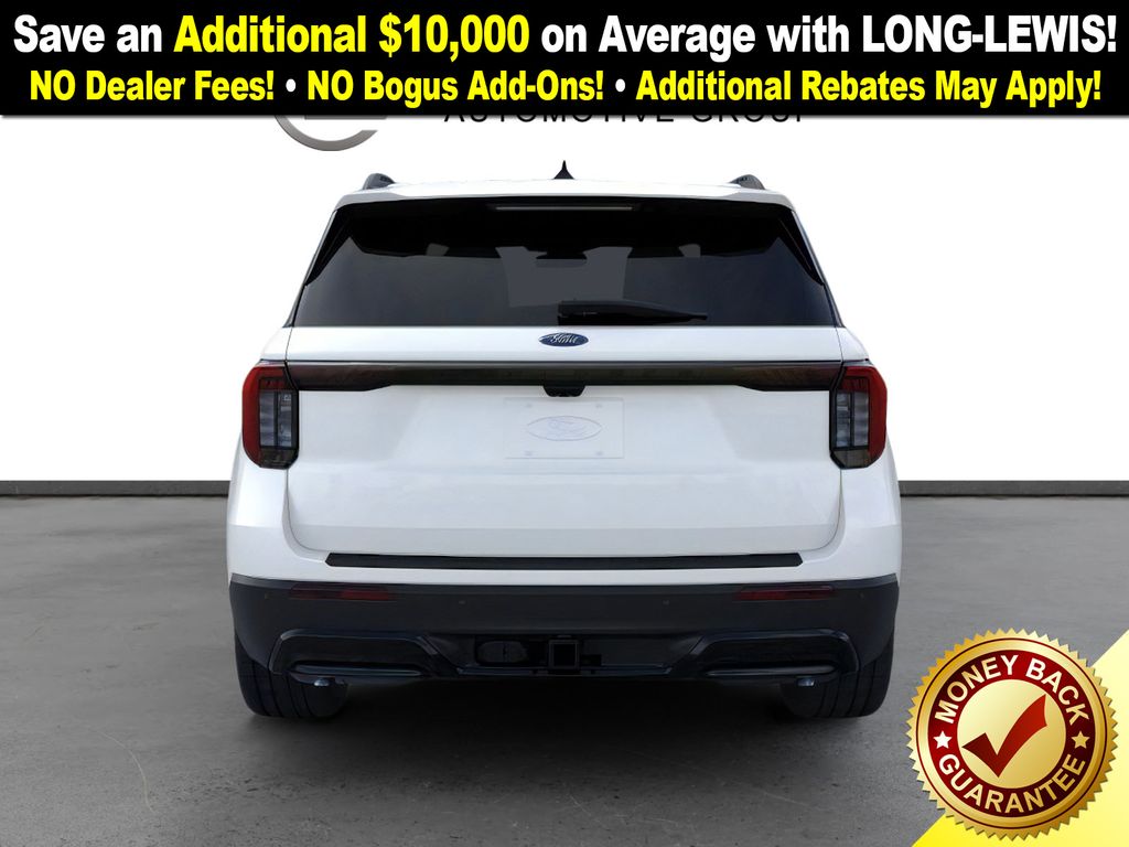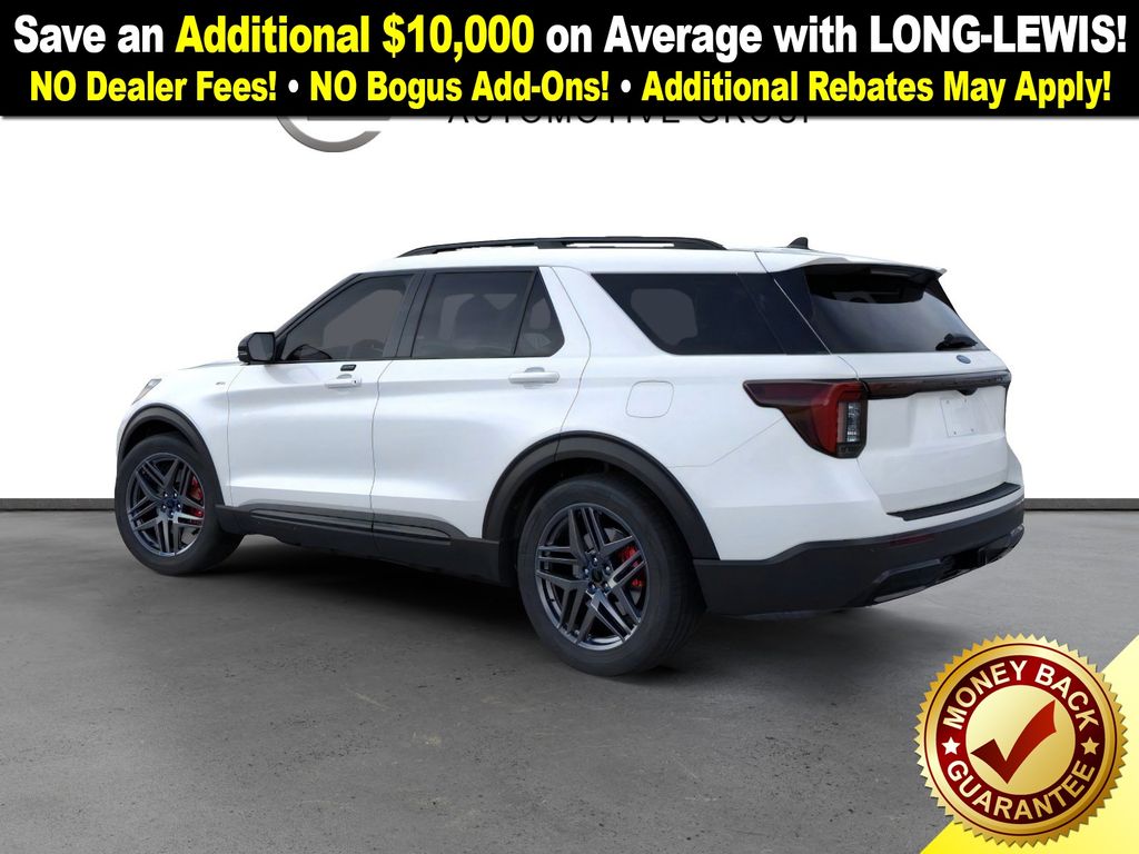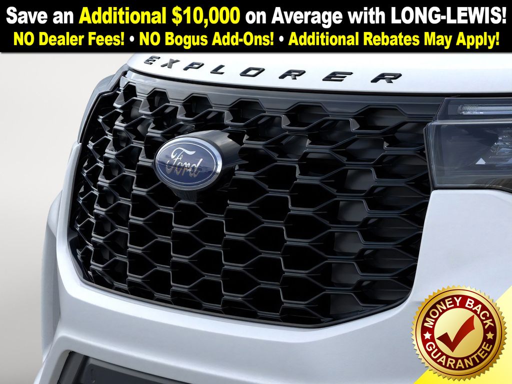 Star White Metallic Tri-Coat 2026 Ford Explorer ST-Line fctp RWD 10-Speed Automatic 2.3L EcoBoost I-4 10 Speakers, 110V/150W AC Power Outlet, 2nd Row Heated Seats, 3rd row seats: bench, 4-Wheel Disc Brakes, ABS brakes, Air Conditioning, Alloy wheels, AM/FM radio: SiriusXM with 360L, Ambient Lighting, Apple CarPlay/Android Auto, Auto High-beam Headlights, Auto-Dimming Interior Rear-View Mirror, Automatic temperature control, Brake assist, Bumpers: body-color, Compass, Delay-off headlights, Driver door bin, Driver vanity mirror, Dual front impact airbags, Dual front side impact airbags, Electronic Stability Control, Emergency communication system: 911 Assist, Exterior Parking Camera Rear, Four wheel independent suspension, Front anti-roll bar, Front Bucket Seats, Front Center Armrest, Front dual zone A/C, Front fog lights, Front License Plate Bracket, Front reading lights, Fully automatic headlights, Garage door transmitter, Heated door mirrors, Heated front seats, Heated steering wheel, Heated Unique Cloth Captain's Chairs, Illuminated entry, Knee airbag, Leather steering wheel, Low tire pressure warning, Manual-Folding Sideview Mirrors, Memory Driver's Seat, Navigation System, Occupant sensing airbag, Outside temperature display, Overhead airbag, Overhead console, Panic alarm, Passenger door bin, Passenger vanity mirror, Performance Brakes, Power door mirrors, Power driver seat, Power Liftgate, Power passenger seat, Power steering, Power windows, Premium Package, Rear air conditioning, Rear anti-roll bar, Rear reading lights, Rear window defroster, Rear window wiper, Remote keyless entry, SecuriCode Keyless Entry Keypad, Security system, Speed control, Speed-sensing steering, Speed-Sensitive Wipers, Split folding rear seat, Spoiler, ST-Line Street Pack, Steering wheel mounted audio controls, Tachometer, Telescoping steering wheel, Tilt steering wheel, Traction control, Trip computer, Variably intermittent wipers, Wheels: 20" Ebony-Painted Machined Aluminum, Wheels: 21" Magnetite-Painted Aluminum.