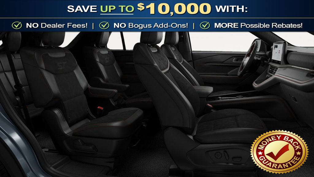 Dealer Discount of $3,054 off MSRP Vapor Blue Metallic 2026 Ford Explorer ST NFT 4WD 10-Speed Automatic 3.0L EcoBoost V6 4WD, 10 Speakers, 3rd row seats: bench, 4-Wheel Disc Brakes, ABS brakes, Air Conditioning, Alloy wheels, AM/FM radio: SiriusXM with 360L, Apple CarPlay/Android Auto, Auto High-beam Headlights, Auto-dimming door mirrors, Auto-dimming Rear-View mirror, Automatic temperature control, Brake assist, Bumpers: body-color, Compass, Delay-off headlights, Driver door bin, Driver vanity mirror, Dual front impact airbags, Dual front side impact airbags, Electronic Stability Control, Emergency communication system: 911 Assist, Exterior Parking Camera Rear, Four wheel independent suspension, Front anti-roll bar, Front Bucket Seats, Front Center Armrest, Front dual zone A/C, Front fog lights, Front License Plate Bracket, Front reading lights, Fully automatic headlights, Garage door transmitter, Heated door mirrors, Heated front seats, Heated rear seats, Heated steering wheel, Heated/Ventilated Miko Suede Captain's Chairs, Illuminated entry, Knee airbag, Leather steering wheel, Low tire pressure warning, Memory seat, Multicontour Seats with Front Active Motion, Navigation System, Occupant sensing airbag, Outside temperature display, Overhead airbag, Overhead console, Panic alarm, Panoramic Fixed Glass Roof with Power Shade, Passenger door bin, Passenger vanity mirror, Power door mirrors, Power driver seat, Power Liftgate, Power passenger seat, Power steering, Power windows, Radio: B&O Sound System by Bang & Olufsen, Radio: B&O Sound System by Bang and Olufsen, Rain sensing wipers, Rear air conditioning, Rear anti-roll bar, Rear reading lights, Rear window defroster, Rear window wiper, Remote Control Front Windows, Remote keyless entry, SecuriCode Keyless Entry Keypad, Security system, Speed control, Speed-sensing steering, Speed-Sensitive Wipers, Split folding rear seat, Spoiler, Sport steering wheel, Steering wheel mounted audio controls, Sun and Sound Package, Tachometer, Telescoping steering wheel, Tilt steering wheel, Traction control, Trip computer, Turn signal indicator mirrors, Variably intermittent wipers, Ventilated front seats, Wheels: 21" Magnetite-Painted Aluminum, 4WD.
