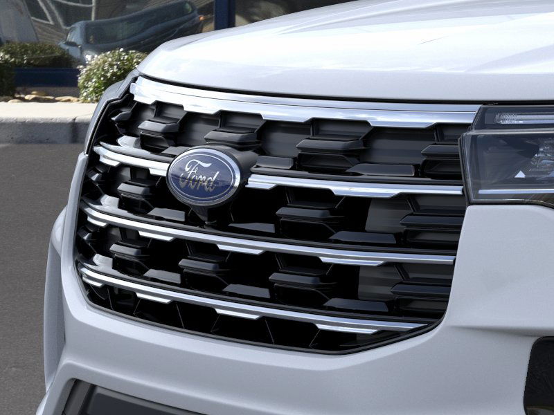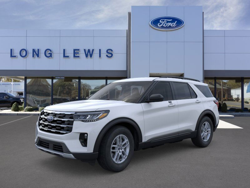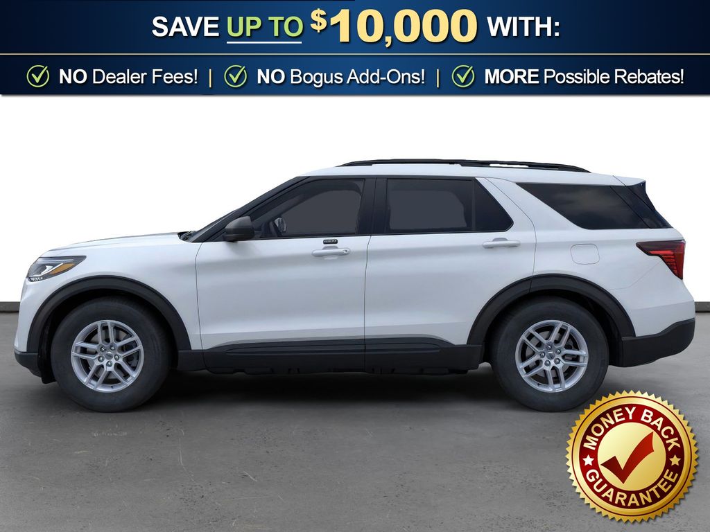 Space White Metallic 2026 Ford Explorer Active FCT RWD 10-Speed Automatic 2.3L EcoBoost I-4 3rd row seats: bench, 4-Wheel Disc Brakes, 6 Speakers, ABS brakes, Air Conditioning, Alloy wheels, AM/FM radio: SiriusXM with 360L, AM/FM Stereo, Apple CarPlay/Android Auto, Auto High-beam Headlights, Automatic temperature control, Brake assist, Bumpers: body-color, Compass, Delay-off headlights, Driver door bin, Driver vanity mirror, Dual front impact airbags, Dual front side impact airbags, Electronic Stability Control, Emergency communication system: 911 Assist, Exterior Parking Camera Rear, Four wheel independent suspension, Front anti-roll bar, Front Bucket Seats, Front Center Armrest, Front dual zone A/C, Front License Plate Bracket, Front reading lights, Fully automatic headlights, Heated door mirrors, Illuminated entry, Knee airbag, Low tire pressure warning, Navigation System, Occupant sensing airbag, Outside temperature display, Overhead airbag, Overhead console, Panic alarm, Passenger door bin, Passenger vanity mirror, Power door mirrors, Power driver seat, Power steering, Power windows, Rear air conditioning, Rear anti-roll bar, Rear reading lights, Rear window defroster, Rear window wiper, Remote keyless entry, Security system, Speed control, Speed-sensing steering, Speed-Sensitive Wipers, Split folding rear seat, Spoiler, Steering wheel mounted audio controls, Tachometer, Telescoping steering wheel, Tilt steering wheel, Traction control, Trip computer, Variably intermittent wipers, Wheels: 18" Sparkle Silver-Painted Aluminum.