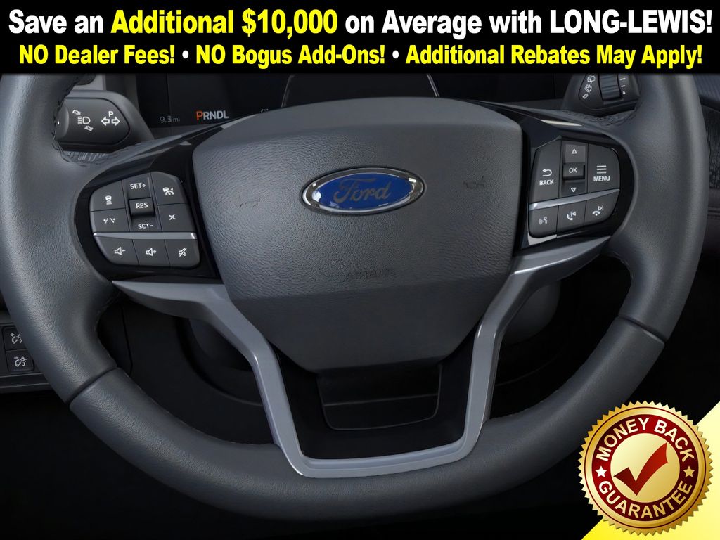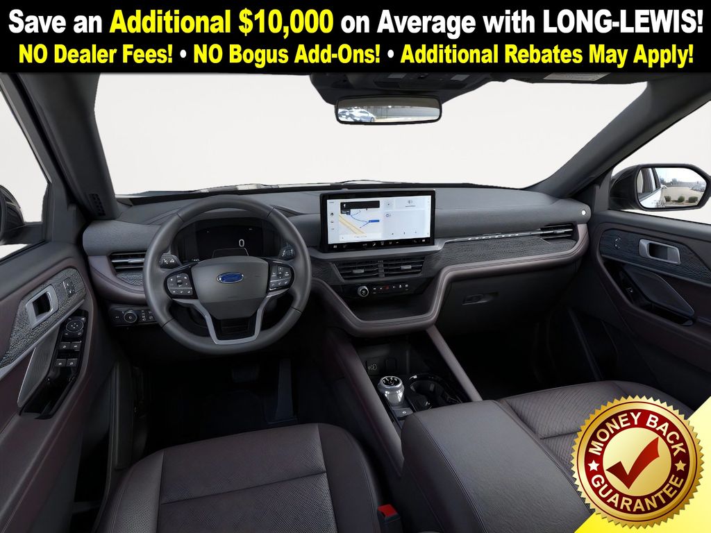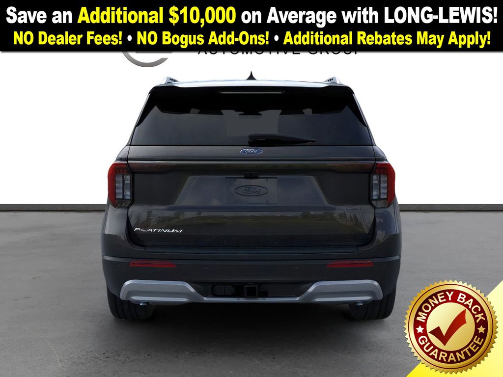 Agate Black Metallic 2026 Ford Explorer Platinum FCT RWD 10-Speed Automatic 2.3L EcoBoost I-4 14 Speakers, 3rd row seats: bench, 4-Wheel Disc Brakes, ABS brakes, ActiveX Trimmed Captain's Chairs, Air Conditioning, Alloy wheels, AM/FM radio: SiriusXM with 360L, Apple CarPlay/Android Auto, Auto High-beam Headlights, Auto-dimming door mirrors, Auto-dimming Rear-View mirror, Automatic temperature control, Brake assist, Bumpers: body-color, Compass, Delay-off headlights, Driver door bin, Driver vanity mirror, Dual front impact airbags, Dual front side impact airbags, Electronic Stability Control, Emergency communication system: 911 Assist, Exterior Parking Camera Rear, Four wheel independent suspension, Front anti-roll bar, Front Bucket Seats, Front Center Armrest, Front dual zone A/C, Front fog lights, Front License Plate Bracket, Front reading lights, Fully automatic headlights, Garage door transmitter, Heated door mirrors, Heated front seats, Heated rear seats, Heated steering wheel, Illuminated entry, Internet access capable: FordPass Connect 5G, Knee airbag, Leather steering wheel, Low tire pressure warning, Memory seat, Navigation System, Occupant sensing airbag, Outside temperature display, Overhead airbag, Overhead console, Panic alarm, Panoramic Fixed Glass Roof with Power Shade, Passenger door bin, Passenger vanity mirror, Power door mirrors, Power driver seat, Power Liftgate, Power passenger seat, Power steering, Power windows, Radio data system, Radio: B&O Sound System by Bang & Olufsen with HD, Rain sensing wipers, Rear air conditioning, Rear anti-roll bar, Rear reading lights, Rear window defroster, Rear window wiper, Remote keyless entry, SecuriCode Keyless Entry Keypad, Security system, Speed control, Speed-sensing steering, Speed-Sensitive Wipers, Split folding rear seat, Spoiler, Steering wheel mounted audio controls, Tachometer, Telescoping steering wheel, Tilt steering wheel, Traction control, Trip computer, Turn signal indicator mirrors, Variably intermittent wipers, Ventilated front seats, Wheels: 20" Luster Nickel-Painted Aluminum.