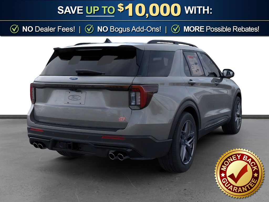 Carbonized Gray Metallic 2026 Ford Explorer ST NFT 4WD 10-Speed Automatic 3.0L EcoBoost V6 4WD, 10 Speakers, 3rd row seats: bench, 4-Wheel Disc Brakes, ABS brakes, Air Conditioning, Alloy wheels, AM/FM radio: SiriusXM with 360L, Apple CarPlay/Android Auto, Auto High-beam Headlights, Auto-dimming door mirrors, Auto-dimming Rear-View mirror, Automatic temperature control, Brake assist, Bumpers: body-color, Compass, Delay-off headlights, Driver door bin, Driver vanity mirror, Dual front impact airbags, Dual front side impact airbags, Electronic Stability Control, Emergency communication system: 911 Assist, Exterior Parking Camera Rear, Four wheel independent suspension, Front anti-roll bar, Front Bucket Seats, Front Center Armrest, Front dual zone A/C, Front fog lights, Front License Plate Bracket, Front reading lights, Fully automatic headlights, Garage door transmitter, Heated door mirrors, Heated front seats, Heated rear seats, Heated steering wheel, Heated/Ventilated Miko Suede Captain's Chairs, Illuminated entry, Knee airbag, Leather steering wheel, Low tire pressure warning, Memory seat, Multicontour Seats with Front Active Motion, Navigation System, Occupant sensing airbag, Outside temperature display, Overhead airbag, Overhead console, Panic alarm, Panoramic Fixed Glass Roof with Power Shade, Passenger door bin, Passenger vanity mirror, Power door mirrors, Power driver seat, Power Liftgate, Power passenger seat, Power steering, Power windows, Radio: B&O Sound System by Bang & Olufsen, Radio: B&O Sound System by Bang and Olufsen, Rain sensing wipers, Rear air conditioning, Rear anti-roll bar, Rear reading lights, Rear window defroster, Rear window wiper, Remote Control Front Windows, Remote keyless entry, SecuriCode Keyless Entry Keypad, Security system, Speed control, Speed-sensing steering, Speed-Sensitive Wipers, Split folding rear seat, Spoiler, Sport steering wheel, Steering wheel mounted audio controls, Sun and Sound Package, Tachometer, Telescoping steering wheel, Tilt steering wheel, Traction control, Trip computer, Turn signal indicator mirrors, Variably intermittent wipers, Ventilated front seats, Wheels: 21" Magnetite-Painted Aluminum, 4WD.