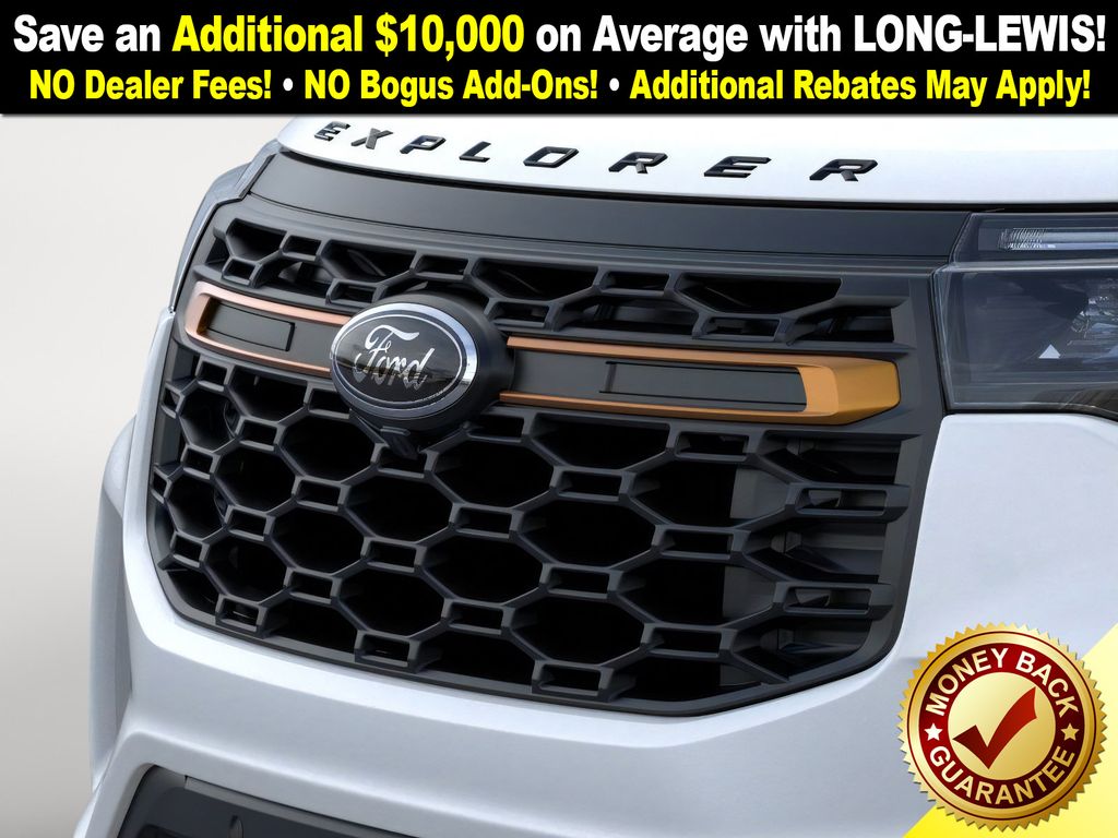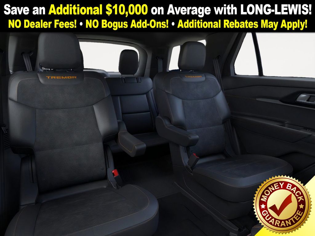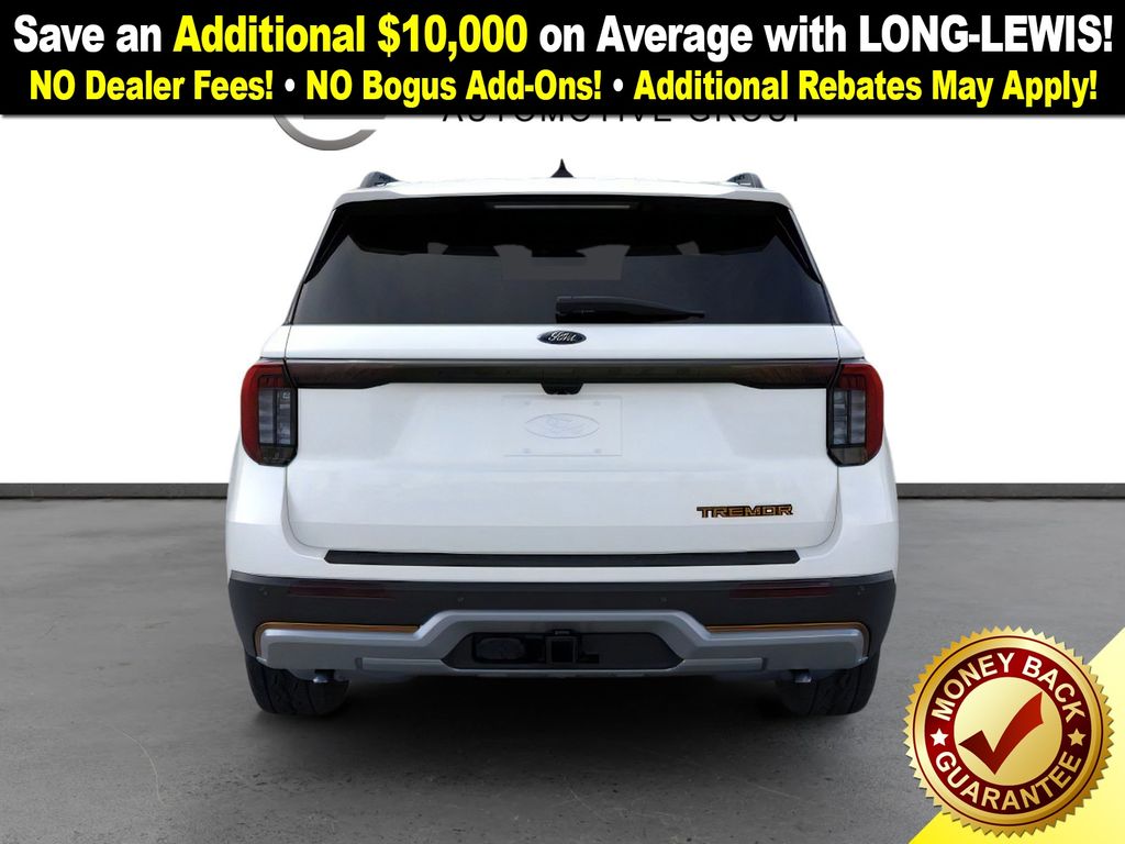 Star White Metallic Tri-Coat 2026 Ford Explorer Tremor NFT 4WD 10-Speed Automatic 3.0L EcoBoost V6 4WD, 10 Speakers, 3rd Row PowerFold Seats, 3rd row seats: bench, 4-Wheel Disc Brakes, ABS brakes, Air Conditioning, Alloy wheels, AM/FM radio: SiriusXM with 360L, Ambient Lighting, Apple CarPlay/Android Auto, Auto High-beam Headlights, Automatic temperature control, BlueCruise Hardware, Brake assist, Bumpers: body-color, Compass, Delay-off headlights, Driver door bin, Driver vanity mirror, Dual front impact airbags, Dual front side impact airbags, Electronic Stability Control, Emergency communication system: 911 Assist, Exterior Parking Camera Rear, Four wheel independent suspension, Front anti-roll bar, Front Bucket Seats, Front Center Armrest, Front dual zone A/C, Front fog lights, Front License Plate Bracket, Front reading lights, Fully automatic headlights, Garage door transmitter, Heated door mirrors, Heated front seats, Heated rear seats, Heated steering wheel, Heated/Ventilated Miko Suede Captain's Chairs, Illuminated entry, Knee airbag, Leather steering wheel, Low tire pressure warning, Memory Driver's Seat, Multicontour Seats with Front Active Motion, Navigation System, Occupant sensing airbag, Outside temperature display, Overhead airbag, Overhead console, Panic alarm, Panoramic Fixed Glass Roof with Power Shade, Passenger door bin, Passenger vanity mirror, Power door mirrors, Power driver seat, Power Liftgate, Power passenger seat, Power steering, Power windows, Power-Folding with Autofold Side Mirrors, Radio: B&O Sound System by Bang & Olufsen, Radio: B&O Sound System by Bang and Olufsen, Rain-Sensing Wipers (front Only), Rear air conditioning, Rear anti-roll bar, Rear reading lights, Rear window defroster, Rear window wiper, Remote keyless entry, SecuriCode Keyless Entry Keypad, Security system, Speed control, Speed-sensing steering, Speed-Sensitive Wipers, Split folding rear seat, Spoiler, Sport steering wheel, Steering wheel mounted audio controls, Tachometer, Telescoping steering wheel, Tilt steering wheel, Traction control, Tremor Ultimate Package, Trip computer, Variably intermittent wipers, Ventilated front seats, Wheels: 18" High Gloss Black-Painted Aluminum, 4WD.