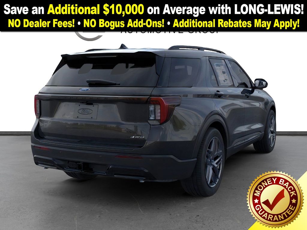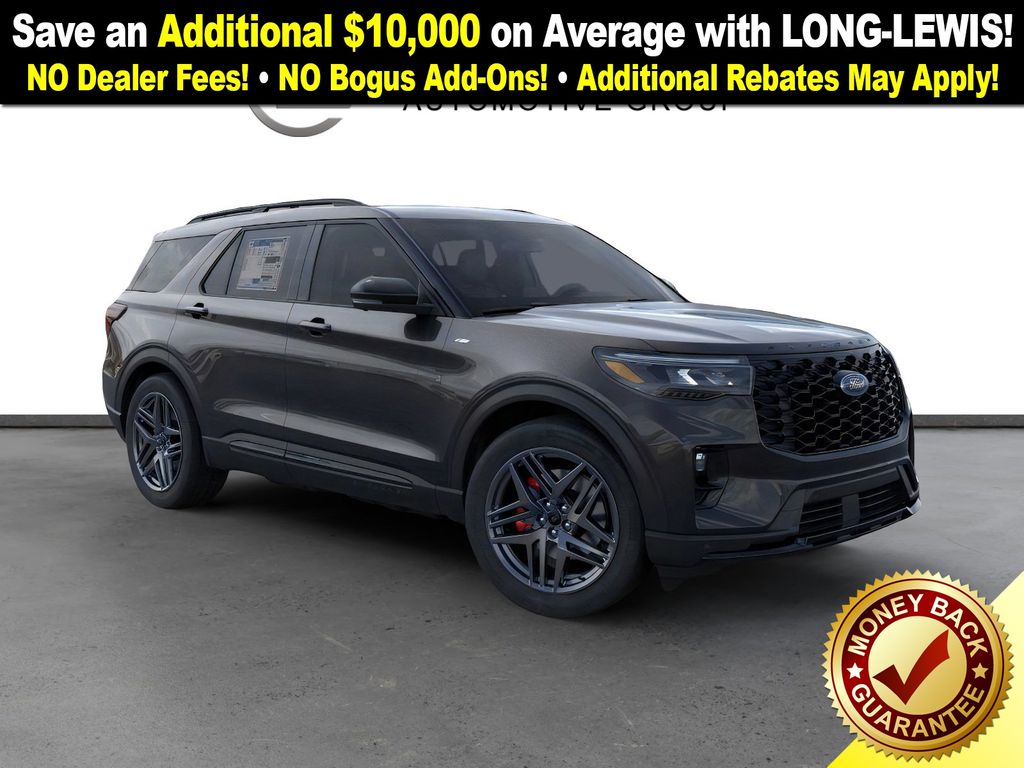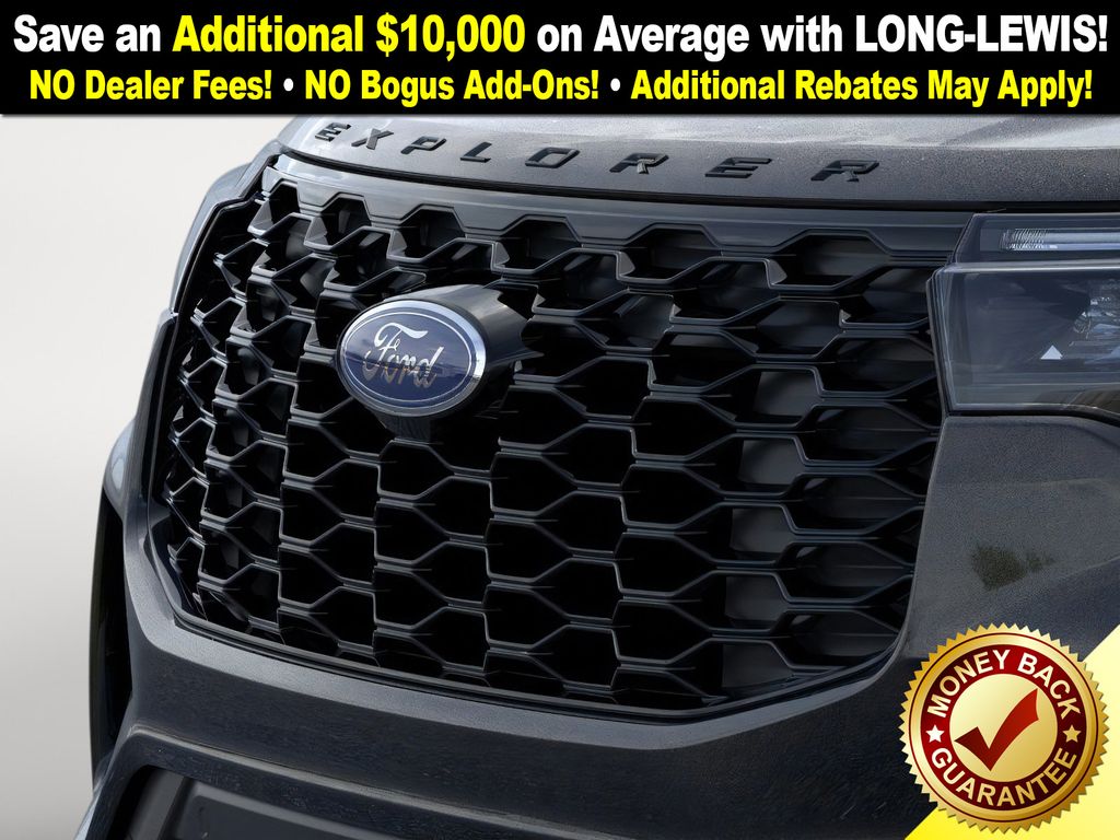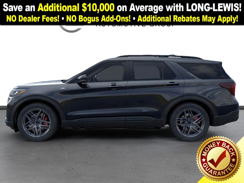 Agate Black Metallic 2026 Ford Explorer ST-Line FCT 4WD 10-Speed Automatic 2.3L EcoBoost I-4 4WD, 10 Speakers, 110V/150W AC Power Outlet, 2nd Row Captain's Chairs w/E-Z Entry and Armrest, 2nd Row Heated Seats, 3rd row seats: bench, 4-Wheel Disc Brakes, ABS brakes, Air Conditioning, Alloy wheels, AM/FM radio: SiriusXM with 360L, Ambient Lighting, Apple CarPlay/Android Auto, Auto High-beam Headlights, Auto-Dimming Interior Rear-View Mirror, Automatic temperature control, BlueCruise (equipment + 1-Year + 90-Day Plan), BlueCruise Hardware, Brake assist, Bumpers: body-color, Compass, Delay-off headlights, Driver door bin, Driver vanity mirror, Dual front impact airbags, Dual front side impact airbags, Electronic Stability Control, Emergency communication system: 911 Assist, Exterior Parking Camera Rear, Four wheel independent suspension, Front anti-roll bar, Front Bucket Seats, Front Center Armrest, Front dual zone A/C, Front fog lights, Front License Plate Bracket, Front reading lights, Fully automatic headlights, Garage door transmitter, Heated door mirrors, Heated front seats, Heated steering wheel, Heated Unique Cloth Captain's Chairs, Illuminated entry, Knee airbag, Leather steering wheel, Low tire pressure warning, Manual-Folding Sideview Mirrors, Memory Driver's Seat, Navigation System, Occupant sensing airbag, Outside temperature display, Overhead airbag, Overhead console, Panic alarm, Panoramic Fixed Glass Roof with Power Shade, Passenger door bin, Passenger vanity mirror, Performance Brakes, Power door mirrors, Power driver seat, Power Liftgate, Power passenger seat, Power steering, Power windows, Premium Package, Radio: B&O Sound System by Bang and Olufsen, Rain-Sensing Wipers (front Only), Rear air conditioning, Rear anti-roll bar, Rear reading lights, Rear window defroster, Rear window wiper, Red Painted Performance Front and Rear Brake Calipers, Remote keyless entry, SecuriCode Keyless Entry Keypad, Security system, Speed control, Speed-sensing steering, Speed-Sensitive Wipers, Split folding rear seat, Spoiler, ST-Line Street Pack, Steering wheel mounted audio controls, Tachometer, Telescoping steering wheel, Tilt steering wheel, Traction control, Trip computer, Variably intermittent wipers, Wheels: 20" Ebony-Painted Machined Aluminum, Wheels: 21" Magnetite-Painted Aluminum, 4WD.
