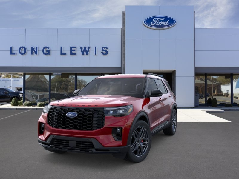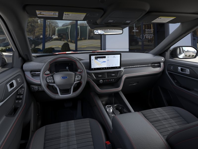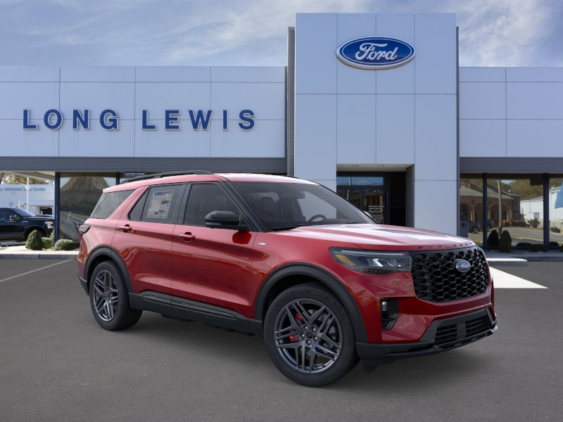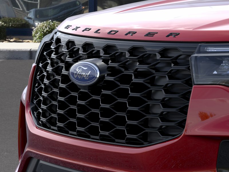 Rapid Red Metallic Tinted Clearcoat 2026 Ford Explorer ST-Line NFT RWD 10-Speed Automatic 2.3L EcoBoost I-4 10 Speakers, 110V/150W AC Power Outlet, 2nd Row Captain's Chairs w/E-Z Entry and Armrest, 2nd Row Heated Seats, 3rd row seats: bench, 4-Wheel Disc Brakes, ABS brakes, Air Conditioning, Alloy wheels, AM/FM radio: SiriusXM with 360L, Ambient Lighting, Apple CarPlay/Android Auto, Auto High-beam Headlights, Auto-Dimming Interior Rear-View Mirror, Automatic temperature control, BlueCruise (equipment + 1-Year + 90-Day Plan), BlueCruise Hardware, Brake assist, Bumpers: body-color, Compass, Delay-off headlights, Driver door bin, Driver vanity mirror, Dual front impact airbags, Dual front side impact airbags, Electronic Stability Control, Emergency communication system: 911 Assist, Exterior Parking Camera Rear, Four wheel independent suspension, Front anti-roll bar, Front Bucket Seats, Front Center Armrest, Front dual zone A/C, Front fog lights, Front License Plate Bracket, Front reading lights, Fully automatic headlights, Garage door transmitter, Heated door mirrors, Heated front seats, Heated steering wheel, Heated Unique Cloth Captain's Chairs, Illuminated entry, Knee airbag, Leather steering wheel, Low tire pressure warning, Manual-Folding Sideview Mirrors, Memory Driver's Seat, Navigation System, Occupant sensing airbag, Outside temperature display, Overhead airbag, Overhead console, Panic alarm, Passenger door bin, Passenger vanity mirror, Performance Brakes, Power door mirrors, Power driver seat, Power Liftgate, Power passenger seat, Power steering, Power windows, Premium Package, Radio: B&O Sound System by Bang and Olufsen, Rain-Sensing Wipers (front Only), Rear air conditioning, Rear anti-roll bar, Rear reading lights, Rear window defroster, Rear window wiper, Red Painted Performance Front and Rear Brake Calipers, Remote keyless entry, SecuriCode Keyless Entry Keypad, Security system, Speed control, Speed-sensing steering, Speed-Sensitive Wipers, Split folding rear seat, Spoiler, ST-Line Street Pack, Steering wheel mounted audio controls, Tachometer, Telescoping steering wheel, Tilt steering wheel, Traction control, Trip computer, Variably intermittent wipers, Wheels: 20" Ebony-Painted Machined Aluminum, Wheels: 21" Magnetite-Painted Aluminum.