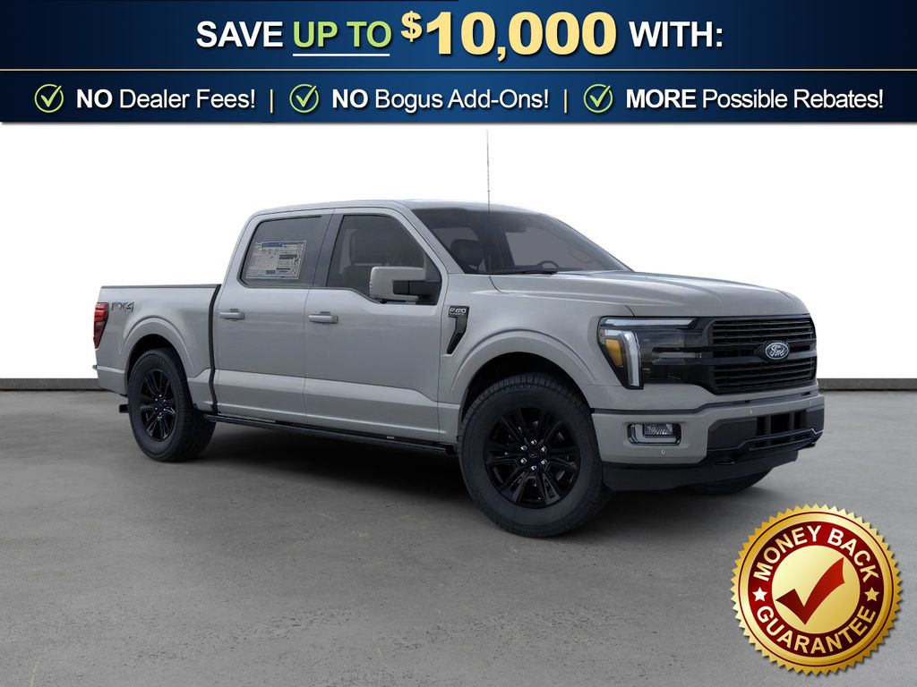 Dealer Discount of $4,683 off MSRP Avalanche 2026 Ford F-150 Platinum NFT 4WD 10-Speed Automatic 3.5L V6 EcoBoost 4WD, 4-Wheel Disc Brakes, 4x4 FX4 Off-Road Bodyside Decal, 8 Speakers, ABS brakes, Adjustable pedals, Air Conditioning, Alloy wheels, AM/FM radio: SiriusXM with 360L, Auto High-beam Headlights, Auto tilt-away steering wheel, Auto-dimming door mirrors, Auto-dimming Rear-View mirror, Automatic temperature control, Brake assist, Bumpers: body-color, Compass, Delay-off headlights, Driver door bin, Driver vanity mirror, Driver's Side SecuriCode Keyless-Entry Keypad, Dual front impact airbags, Dual front side impact airbags, Electronic Locking with 3.55 Axle Ratio, Electronic Stability Control, Emergency communication system: SYNC 4 911 Assist, Ford Connectivity Package (1-Year Included), Front anti-roll bar, Front Bucket Seats, Front Center Armrest, Front dual zone A/C, Front fog lights, Front License Plate Bracket, Front reading lights, Front wheel independent suspension, Fully automatic headlights, FX4 Off-Road Package, Garage door transmitter, GVWR: 7,400 lbs Payload Package, Heated door mirrors, Heated front seats, Heated rear seats, Heated steering wheel, Hill Descent Control, Illuminated entry, Internet access capable: 5G Modem - Ford Connectivity Package, Leather steering wheel, Low tire pressure warning, Memory seat, Monotube Rear Shocks, Navigation system: Connected Navigation, Occupant sensing airbag, Off-Road Tuned Front Shock Absorbers, Outside temperature display, Overhead airbag, Overhead console, Panic alarm, Passenger door bin, Passenger vanity mirror, Pedal memory, Power door mirrors, Power driver seat, Power passenger seat, Power steering, Power windows, Radio data system, Radio: B&O Sound System by Bang and Olufsen, Rain sensing wipers, Rear reading lights, Rear seat center armrest, Rear step bumper, Rear window defroster, Remote keyless entry, Security system, Speed control, Split folding rear seat, Steering wheel memory, Steering wheel mounted audio controls, SYNC 4 with Enhanced Voice Recognition, Tachometer, Telescoping steering wheel, Tilt steering wheel, Traction control, Tray Style Floor Liner, Trip computer, Turn signal indicator mirrors, Twin Panel Moonroof, Unique Multi-Contour Leather Bucket Seats, Variably intermittent wipers, Ventilated front seats, Wheels: 20" Painted Gloss Ebony Black, 4WD.