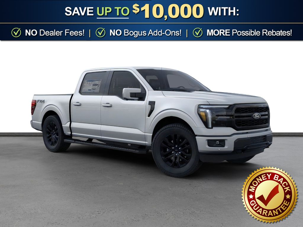 Iconic Silver Metallic 2026 Ford F-150 Lariat NFT 4WD 10-Speed Automatic 5.0L V8 4WD, 3.31 Axle Ratio, 4-Wheel Disc Brakes, 8 Speakers, ABS brakes, Air Conditioning, Alloy wheels, AM/FM radio: SiriusXM with 360L, Auto High-beam Headlights, Auto-dimming door mirrors, Auto-dimming Rear-View mirror, Automatic temperature control, Brake assist, Bumpers: chrome, Chrome wheels, Compass, Delay-off headlights, Driver door bin, Driver vanity mirror, Dual front impact airbags, Dual front side impact airbags, Electronic Stability Control, Emergency communication system: SYNC 4 911 Assist, Ford Connectivity Package (1-Year Included), Front anti-roll bar, Front Bucket Seats, Front Center Armrest, Front dual zone A/C, Front fog lights, Front reading lights, Front wheel independent suspension, Fully automatic headlights, Garage door transmitter, Heated door mirrors, Heated front seats, Heated steering wheel, Illuminated entry, Internet access capable: 5G Modem - Ford Connectivity Package, Low tire pressure warning, Memory seat, Navigation system: Connected Navigation, Occupant sensing airbag, Outside temperature display, Overhead airbag, Overhead console, Panic alarm, Passenger door bin, Passenger vanity mirror, Power door mirrors, Power driver seat, Power passenger seat, Power steering, Power windows, Radio data system, Radio: B&O Sound System by Bang and Olufsen, Rain sensing wipers, Rear reading lights, Rear seat center armrest, Rear step bumper, Rear window defroster, Remote keyless entry, Security system, Speed control, Split folding rear seat, Steering wheel mounted audio controls, SYNC 4 with Enhanced Voice Recognition, Tachometer, Telescoping steering wheel, Tilt steering wheel, Traction control, Trip computer, Turn signal indicator mirrors, Variably intermittent wipers, Ventilated front seats, Wheels: 18" Chrome-Like PVD, 4WD.