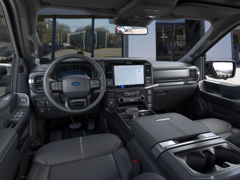 Agate Black Metallic 2026 Ford F-150 Platinum NFT 4WD 10-Speed Automatic 3.5L PowerBoost Full-Hybrid V6 3.5L PowerBoost Full-Hybrid V6, 4WD, 4-Wheel Disc Brakes, 8 Speakers, ABS brakes, Adjustable pedals, Air Conditioning, Alloy wheels, AM/FM radio: SiriusXM with 360L, Auto High-beam Headlights, Auto tilt-away steering wheel, Auto-dimming door mirrors, Auto-dimming Rear-View mirror, Automatic temperature control, Brake assist, Bumpers: body-color, Compass, Delay-off headlights, Driver door bin, Driver vanity mirror, Driver's Side SecuriCode Keyless-Entry Keypad, Dual front impact airbags, Dual front side impact airbags, Electronic Stability Control, Emergency communication system: SYNC 4 911 Assist, Ford Connectivity Package (1-Year Included), Front anti-roll bar, Front Bucket Seats, Front Center Armrest, Front dual zone A/C, Front fog lights, Front License Plate Bracket, Front reading lights, Front wheel independent suspension, Fully automatic headlights, Garage door transmitter, GVWR: 7,400 lbs Payload Package, Heated door mirrors, Heated front seats, Heated rear seats, Heated steering wheel, Illuminated entry, Internet access capable: 5G Modem - Ford Connectivity Package, Leather steering wheel, Low tire pressure warning, Memory seat, Navigation system: Connected Navigation, Occupant sensing airbag, Outside temperature display, Overhead airbag, Overhead console, Panic alarm, Passenger door bin, Passenger vanity mirror, Pedal memory, Power door mirrors, Power driver seat, Power passenger seat, Power steering, Power windows, Pro Access Tailgate, Radio data system, Radio: B&O Sound System by Bang and Olufsen, Rain sensing wipers, Rear reading lights, Rear seat center armrest, Rear step bumper, Rear window defroster, Remote keyless entry, Security system, Speed control, Split folding rear seat, Steering wheel memory, Steering wheel mounted audio controls, SYNC 4 with Enhanced Voice Recognition, Tachometer, Telescoping steering wheel, Tilt steering wheel, Traction control, Trip computer, Turn signal indicator mirrors, Twin Panel Moonroof, Unique Multi-Contour Leather Bucket Seats, Variably intermittent wipers, Ventilated front seats, Wheels: 20" Painted Gloss Ebony Black, 3.5L PowerBoost Full-Hybrid V6, 4WD.