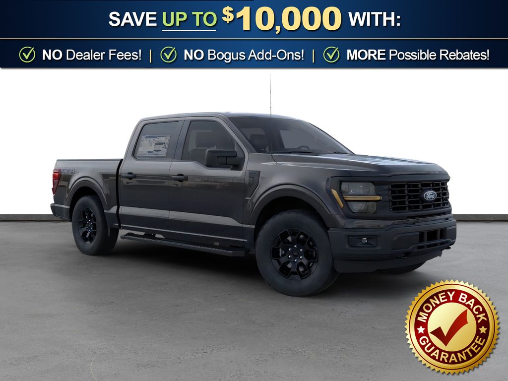 Dealer Discount of $7,075 off MSRP Agate Black Metallic 2026 Ford F-150 STX NFT 4WD 10-Speed Automatic 2.7L V6 EcoBoost 4WD, 3.55 Axle Ratio, 4-Wheel Disc Brakes, 6 Speakers, ABS brakes, Air Conditioning, Alloy wheels, AM/FM radio: SiriusXM with 360L, Auto High-beam Headlights, Brake assist, Bumpers: body-color, Compass, Delay-off headlights, Driver door bin, Dual front impact airbags, Dual front side impact airbags, Electronic Stability Control, Emergency communication system: SYNC 4 911 Assist, Ford Connectivity Package (1-Year Included), Front anti-roll bar, Front Bucket Seats, Front Center Armrest, Front License Plate Bracket, Front reading lights, Front wheel independent suspension, Fully automatic headlights, GVWR: 6,650 lbs Payload Package, Heated door mirrors, Illuminated entry, Internet access capable: 5G Modem - Ford Connectivity Package, Low tire pressure warning, Occupant sensing airbag, Outside temperature display, Overhead airbag, Overhead console, Panic alarm, Passenger door bin, Passenger vanity mirror, Power door mirrors, Power steering, Power windows, Radio data system, Radio: AM/FM Stereo with SiriusXM 360L, Rear step bumper, Rear window defroster, Remote keyless entry, Security system, Speed control, Split folding rear seat, Steering wheel mounted audio controls, SYNC 4 with Enhanced Voice Recognition, Tachometer, Telescoping steering wheel, Tilt steering wheel, Traction control, Trip computer, Unique Cloth 40/Console/40 Front Seats, Unique Sport Cloth 40/Console/40 Front-Seats, Variably intermittent wipers, Wheels: 18" Gloss Black, 4WD.