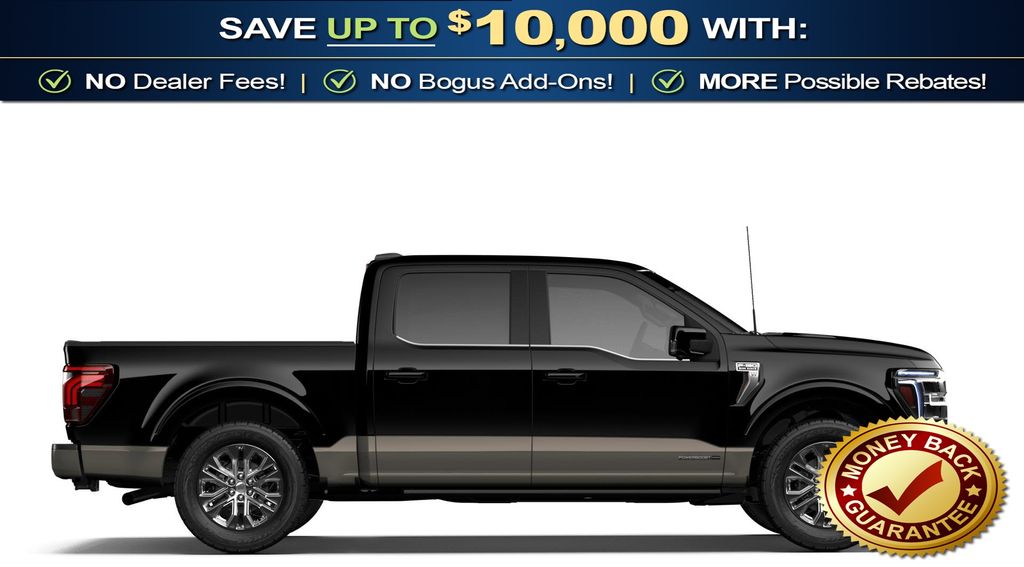 Ford Connectivity Package (1-Year Included), FX4 Off-Road Package (4x4 FX4 Off-Road Bodyside Decal, Hill Descent Control, and Off-Road Tuned Front Shock Absorbers), Internet access capable: 5G Modem - Ford Connectivity Package, 3.5L PowerBoost Full-Hybrid V6, 4WD, 4-Wheel Disc Brakes, 8 Speakers, ABS brakes, Adjustable pedals, Air Conditioning, Alloy wheels, AM/FM radio: SiriusXM with 360L, Auto High-beam Headlights, Auto tilt-away steering wheel, Auto-dimming door mirrors, Auto-dimming Rear-View mirror, Automatic temperature control, Brake assist, Chrome wheels, Compass, Delay-off headlights, Driver door bin, Driver vanity mirror, Driver's Side SecuriCode Keyless-Entry Keypad, Dual front impact airbags, Dual front side impact airbags, Electronic Stability Control, Emergency communication system: SYNC 4 911 Assist, Front anti-roll bar, Front Bucket Seats, Front Center Armrest, Front dual zone A/C, Front fog lights, Front reading lights, Front wheel independent suspension, Fully automatic headlights, Garage door transmitter, Genuine wood dashboard insert, Head-Up Display, Heated door mirrors, Heated front seats, Heated rear seats, Heated steering wheel, Illuminated entry, King Ranch Multicontour Leather Bucket Seats, Leather steering wheel, Low tire pressure warning, Memory seat, Navigation system: Connected Navigation, Occupant sensing airbag, Outside temperature display, Overhead airbag, Overhead console, Panic alarm, Passenger door bin, Passenger vanity mirror, Pedal memory, Power door mirrors, Power driver seat, Power passenger seat, Power steering, Power windows, Pro Access Tailgate, Radio data system, Radio: B&O Sound System by Bang and Olufsen, Rain sensing wipers, Rear reading lights, Rear seat center armrest, Rear step bumper, Rear window defroster, Remote keyless entry, Security system, Speed control, Split folding rear seat, Steering wheel memory, Steering wheel mounted audio controls, SYNC 4 with Enhanced Voice Recognition, Tachometer, Telescoping steering wheel, Tilt steering wheel, Traction control, Trip computer, Turn signal indicator mirrors, Twin Panel Moonroof, Variably intermittent wipers, Ventilated front seats, and Wheels: 20" Chrome-Like PVD.