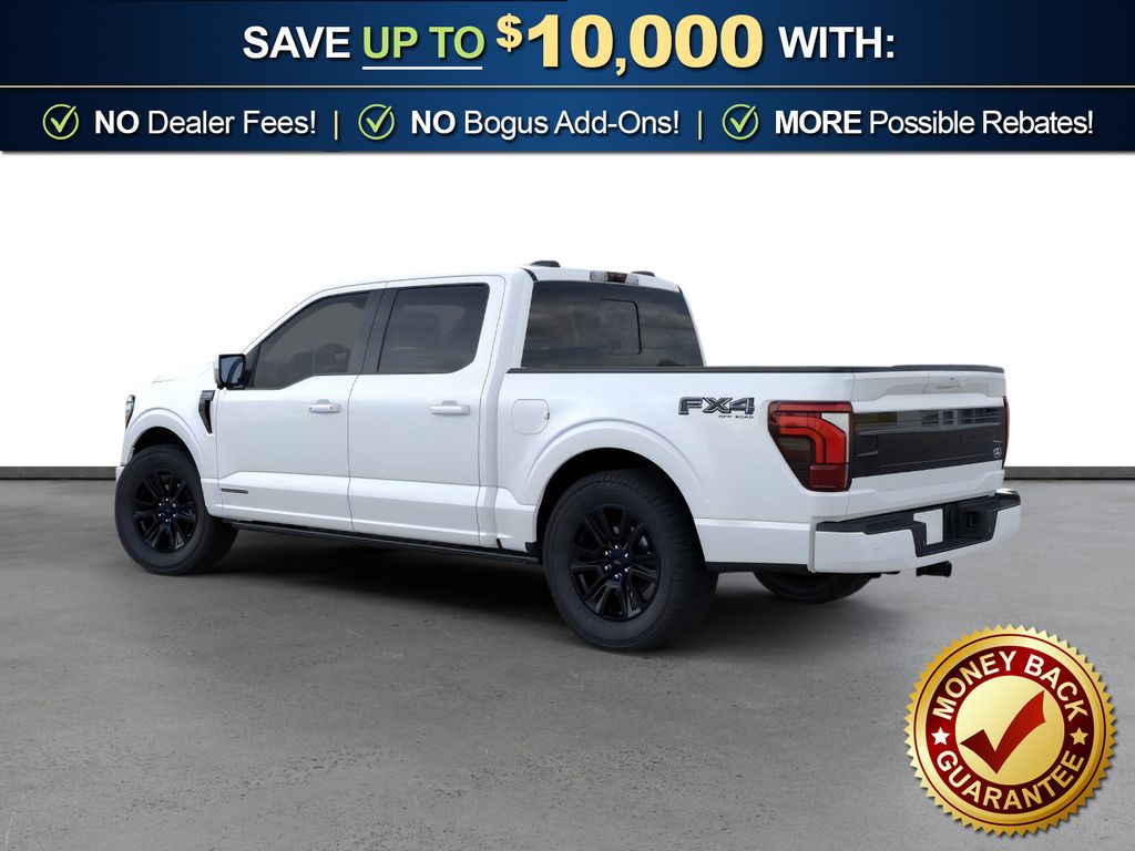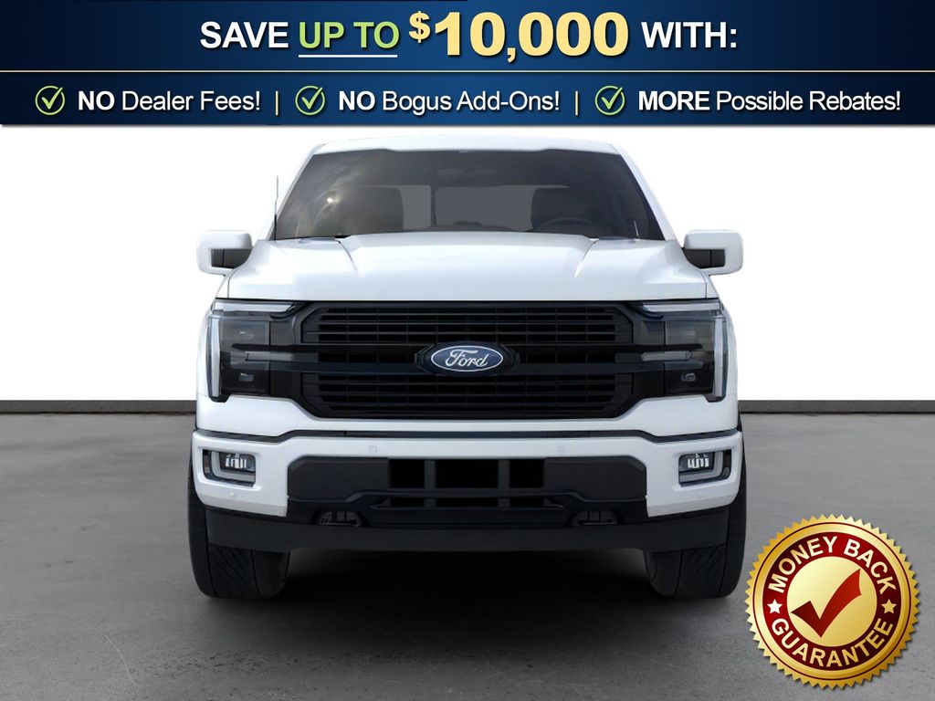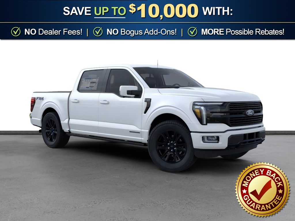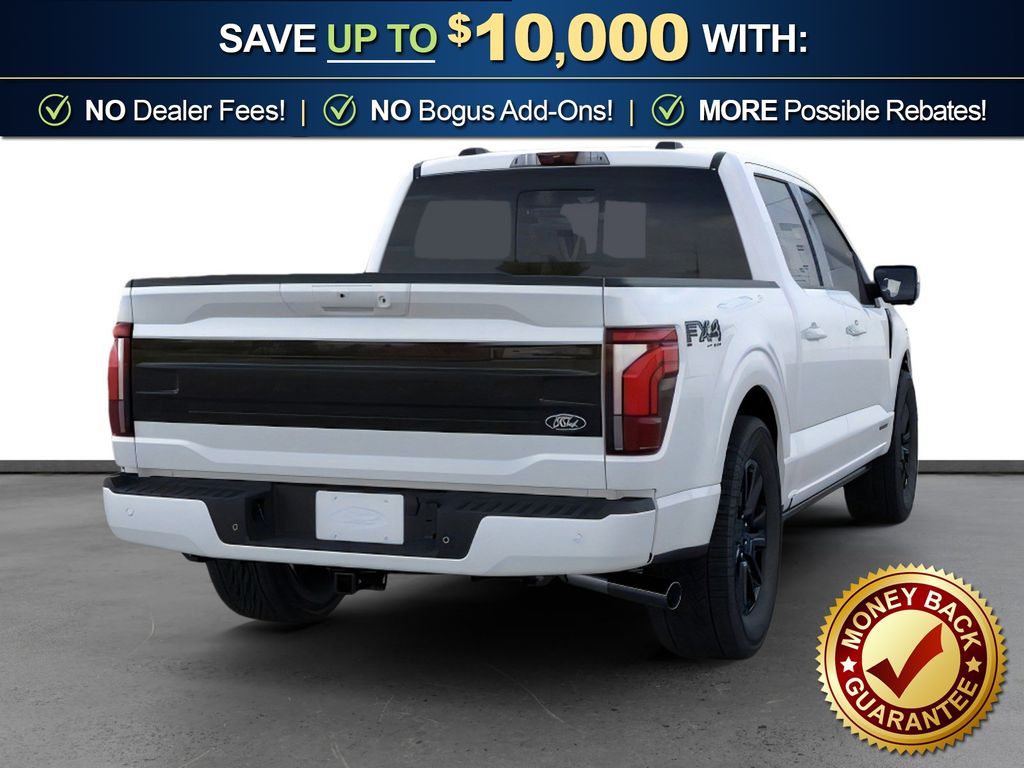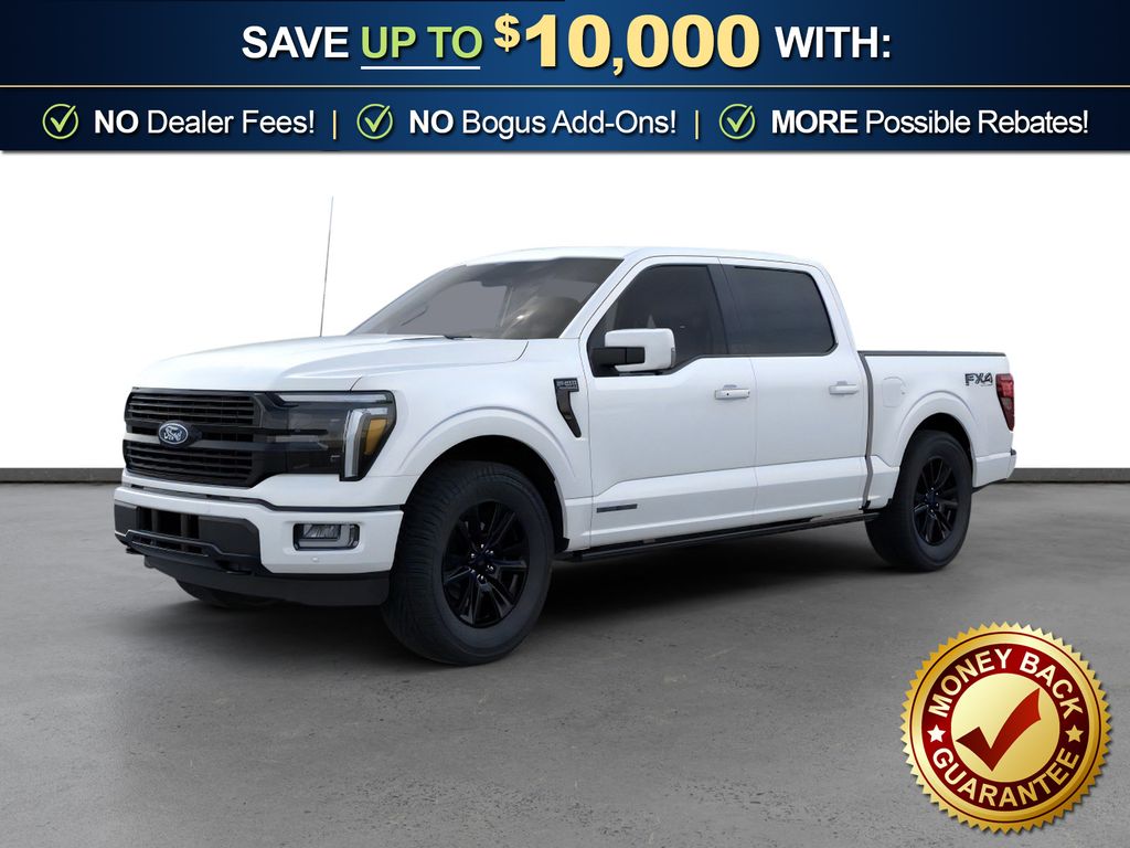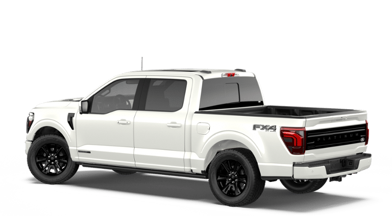 Star White Metallic Tri-Coat 2026 Ford F-150 Platinum NFT 4WD 10-Speed Automatic 3.5L PowerBoost Full-Hybrid V6 3.5L PowerBoost Full-Hybrid V6, 4WD, 4-Wheel Disc Brakes, 4x4 FX4 Off-Road Bodyside Decal, 8 Speakers, ABS brakes, Adjustable pedals, Air Conditioning, Alloy wheels, AM/FM radio: SiriusXM with 360L, Auto High-beam Headlights, Auto tilt-away steering wheel, Auto-dimming door mirrors, Auto-dimming Rear-View mirror, Automatic temperature control, Brake assist, Bumpers: body-color, Center High Mounted Stop Lamp (CHMSL) Camera, Compass, Delay-off headlights, Driver door bin, Driver vanity mirror, Dual front impact airbags, Dual front side impact airbags, Electronic Stability Control, Emergency communication system: SYNC 4 911 Assist, Equipment Group 702A High, Ford Connectivity Package (1-Year Included), Front anti-roll bar, Front Bucket Seats, Front Center Armrest, Front dual zone A/C, Front fog lights, Front License Plate Bracket, Front reading lights, Front wheel independent suspension, Fully automatic headlights, FX4 Off-Road Package, Garage door transmitter, GVWR: 7,400 lbs Payload Package, Heated door mirrors, Heated front seats, Heated rear seats, Heated steering wheel, Hill Descent Control, Illuminated entry, Internet access capable: 5G Modem - Ford Connectivity Package, Leather steering wheel, Low tire pressure warning, Memory seat, Monotube Rear Shocks, Navigation system: Connected Navigation, Occupant sensing airbag, Off-Road Tuned Front Shock Absorbers, Outside temperature display, Overhead airbag, Overhead console, Panic alarm, Passenger door bin, Passenger vanity mirror, Pedal memory, Power door mirrors, Power driver seat, Power passenger seat, Power steering, Power windows, Power-Deployable Running Boards, Radio data system, Radio: B&O Sound System by Bang and Olufsen, Radio: B&O Unleashed Sound System by Bang & Olufsen, Rain sensing wipers, Rear reading lights, Rear seat center armrest, Rear step bumper, Rear window defroster, Remote keyless entry, Security system, Speed control, Split folding rear seat, Steering wheel memory, Steering wheel mounted audio controls, SYNC 4 with Enhanced Voice Recognition, Tachometer, Telescoping steering wheel, Tilt steering wheel, Tough Bed Spray-in Bedliner, Traction control, Tray Style Floor Liner, Trip computer, Turn signal indicator mirrors, Twin Panel Moonroof, Unique Multi-Contour Leather Bucket Seats, Variably intermittent wipers, Ventilated front seats, Wheels: 20" Painted Gloss Ebony Black, 3.5L PowerBoost Full-Hybrid V6, 4WD.