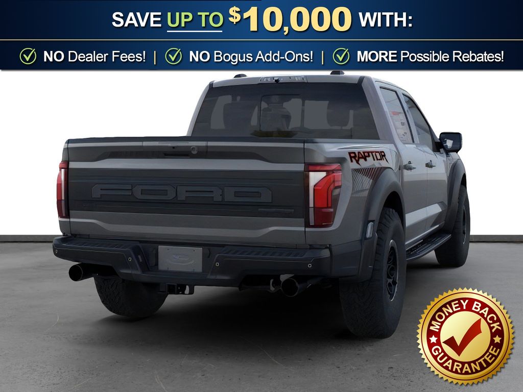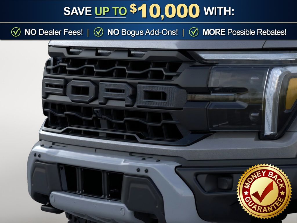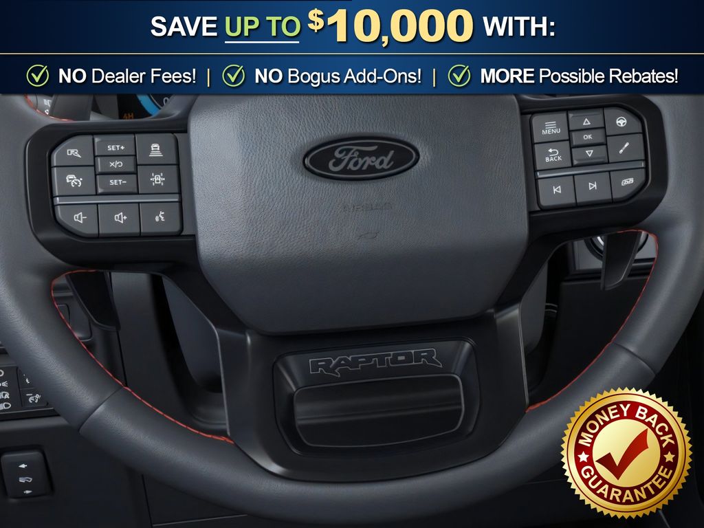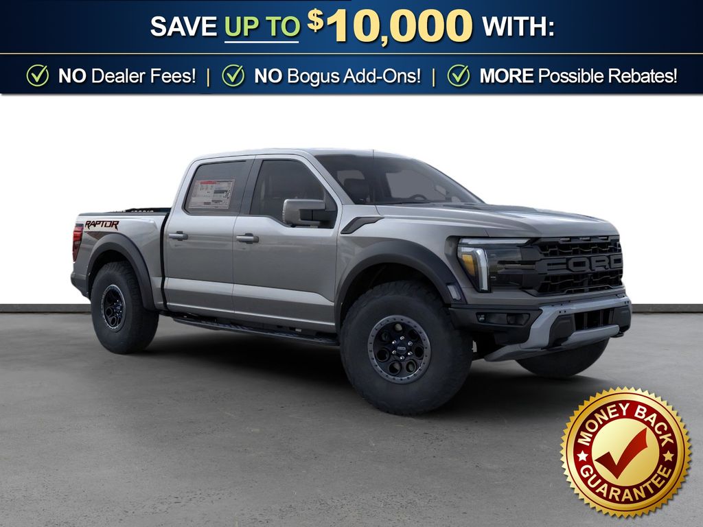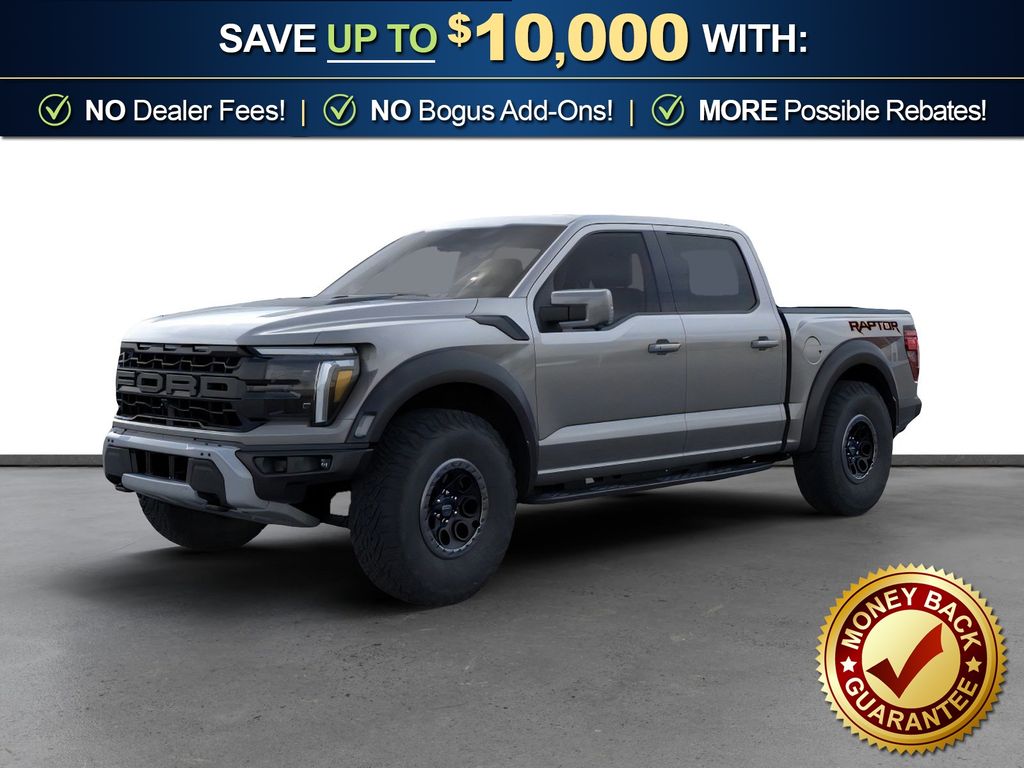 Carbonized Gray Metallic 2026 Ford F-150 Raptor NFT 4WD 10-Speed Automatic 3.5L V6 EcoBoost High Output 4WD, 14 Speakers, 17" Cast Aluminum Wheels, 4-Wheel Disc Brakes, ABS brakes, Adjustable pedals, Air Conditioning, Alloy wheels, AM/FM radio: SiriusXM with 360L, Auto High-beam Headlights, Auto tilt-away steering wheel, Auto-dimming door mirrors, Auto-dimming Rear-View mirror, Automatic temperature control, Brake assist, Bumpers: body-color, Compass, Delay-off headlights, Driver door bin, Driver vanity mirror, Driver's Side SecuriCode Keyless-Entry Keypad, Dual front impact airbags, Dual front side impact airbags, Electronic Locking with 4.10 Axle Ratio, Electronic Stability Control, Emergency communication system: SYNC 4 911 Assist, Ford Connectivity Package (1-Year Included), Front anti-roll bar, Front Bucket Seats, Front Center Armrest, Front dual zone A/C, Front fog lights, Front License Plate Bracket, Front reading lights, Front wheel independent suspension, Fully automatic headlights, Garage door transmitter, Heads-Up Display, Heated door mirrors, Heated front seats, Heated rear seats, Heated steering wheel, Illuminated entry, Internet access capable: 5G Modem - Ford Connectivity Package, Lane Departure Warning System, Leather steering wheel, Leather Trimmed Seats, Low tire pressure warning, Memory seat, Navigation system: Connected Navigation, Occupant sensing airbag, Outside temperature display, Overhead airbag, Overhead console, Panic alarm, Passenger door bin, Passenger vanity mirror, Pedal memory, Power door mirrors, Power driver seat, Power passenger seat, Power steering, Power windows, Radio data system, Radio: B&O Unleashed Sound System by Bang & Olufsen, Rain sensing wipers, Rear reading lights, Rear step bumper, Rear window defroster, RECARO Unique Leather Front Seats, RECARO with Code Orange Stitching Front Seats, Remote keyless entry, Security system, Speed control, Speed-sensing steering, Split folding rear seat, Steering wheel memory, Steering wheel mounted audio controls, SYNC 4 with Enhanced Voice Recognition, Tachometer, Telescoping steering wheel, Tilt steering wheel, Traction control, Trip computer, Turn signal indicator mirrors, Twin Panel Moonroof, Variably intermittent wipers, Ventilated front seats, 4WD.