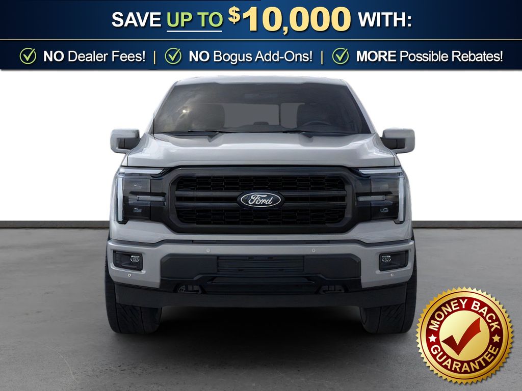 Ford Connectivity Package (1-Year Included), FX4 Off-Road Package (4x4 FX4 Off-Road Bodyside Decal, Hill Descent Control, Monotube Rear Shocks, Off-Road Tuned Front Shock Absorbers, Rock Crawl Mode, and Tray Style Floor Liner Without Carpet Mats), Internet access capable: 5G Modem - Ford Connectivity Package, Lariat Black Appearance Package (ActiveX Trimmed Bucket Seats, Black Exterior Badging, Black Grille, Black Taillamp Bezels, Body-Color Front and Rear Bumpers, Dark Interior Appliques, Gray Box Side Decal, and Matte Black Tailgate F-150 Decal), 4WD, 4-Wheel Disc Brakes, 8 Speakers, ABS brakes, Air Conditioning, Alloy wheels, AM/FM radio: SiriusXM with 360L, Auto High-beam Headlights, Auto-dimming door mirrors, Auto-dimming Rear-View mirror, Automatic temperature control, Brake assist, Bumpers: chrome, Chrome wheels, Compass, Delay-off headlights, Driver door bin, Driver vanity mirror, Driver's Side SecuriCode Keyless-Entry Keypad, Dual front impact airbags, Dual front side impact airbags, Electronic Stability Control, Emergency communication system: SYNC 4 911 Assist, Front anti-roll bar, Front Bucket Seats, Front Center Armrest, Front dual zone A/C, Front fog lights, Front reading lights, Front wheel independent suspension, Fully automatic headlights, Garage door transmitter, Heated door mirrors, Heated front seats, Heated steering wheel, Illuminated entry, Low tire pressure warning, Memory seat, Navigation system: Connected Navigation, Occupant sensing airbag, Outside temperature display, Overhead airbag, Overhead console, Panic alarm, Passenger door bin, Passenger vanity mirror, Power door mirrors, Power driver seat, Power passenger seat, Power steering, Power windows, Radio data system, Radio: B&O Sound System by Bang and Olufsen, Rain sensing wipers, Rear reading lights, Rear seat center armrest, Rear step bumper, Rear window defroster, Remote keyless entry, Security system, Speed control, Split folding rear seat, Steering wheel mounted audio controls, SYNC 4 with Enhanced Voice Recognition, Tachometer, Telescoping steering wheel, Tilt steering wheel, Traction control, Trip computer, Turn signal indicator mirrors, Variably intermittent wipers, Ventilated front seats, and Wheels: 18" Chrome-Like PVD. Price includes: $2000 - Retail Customer Cash. Exp. 03/31/2026