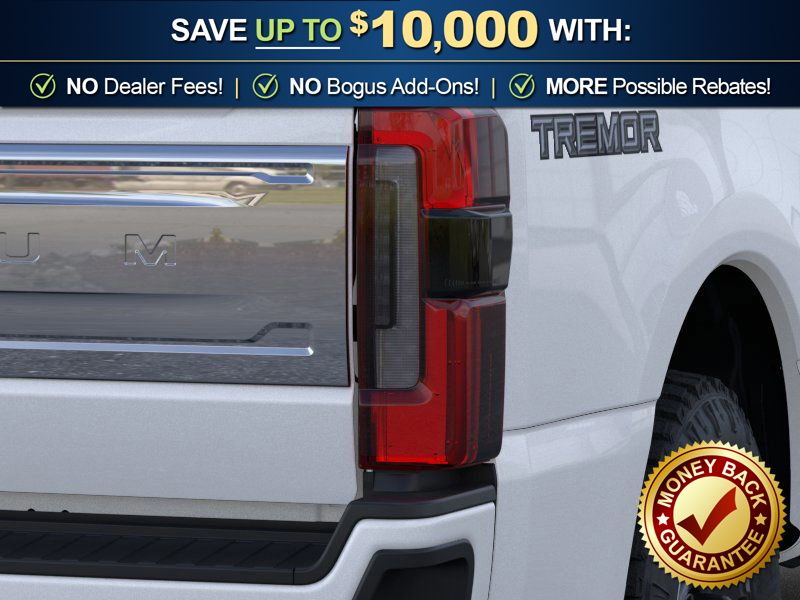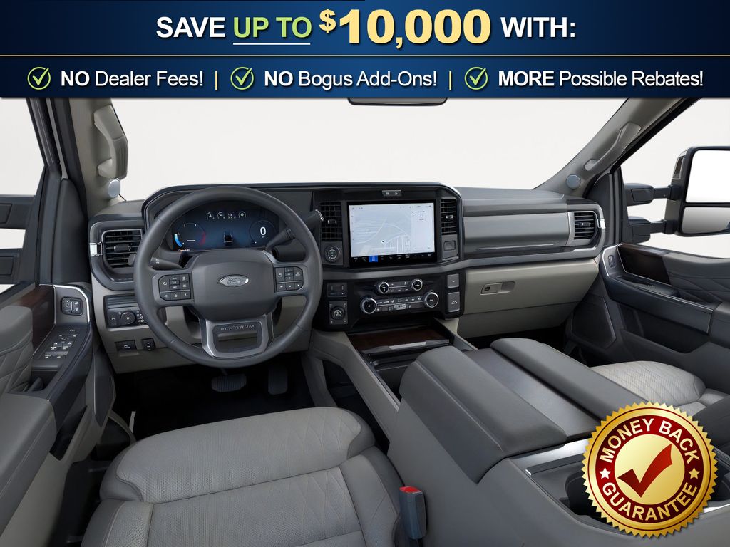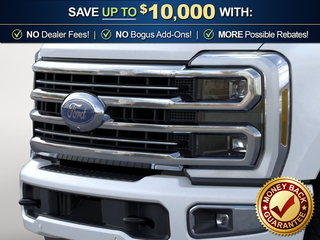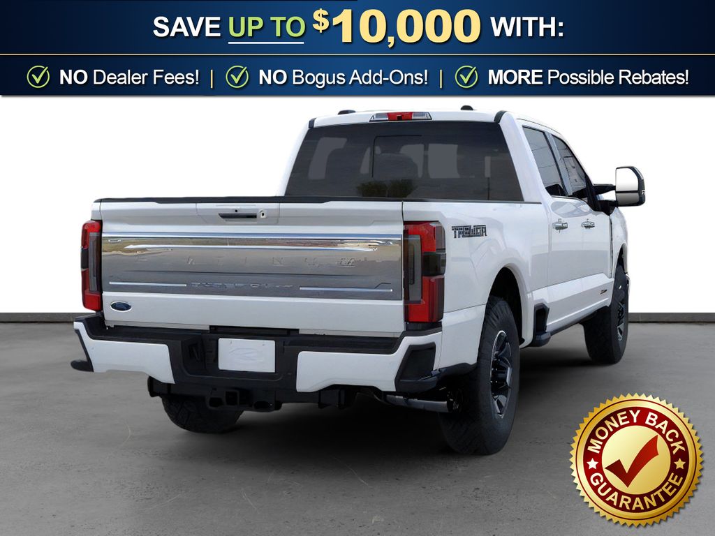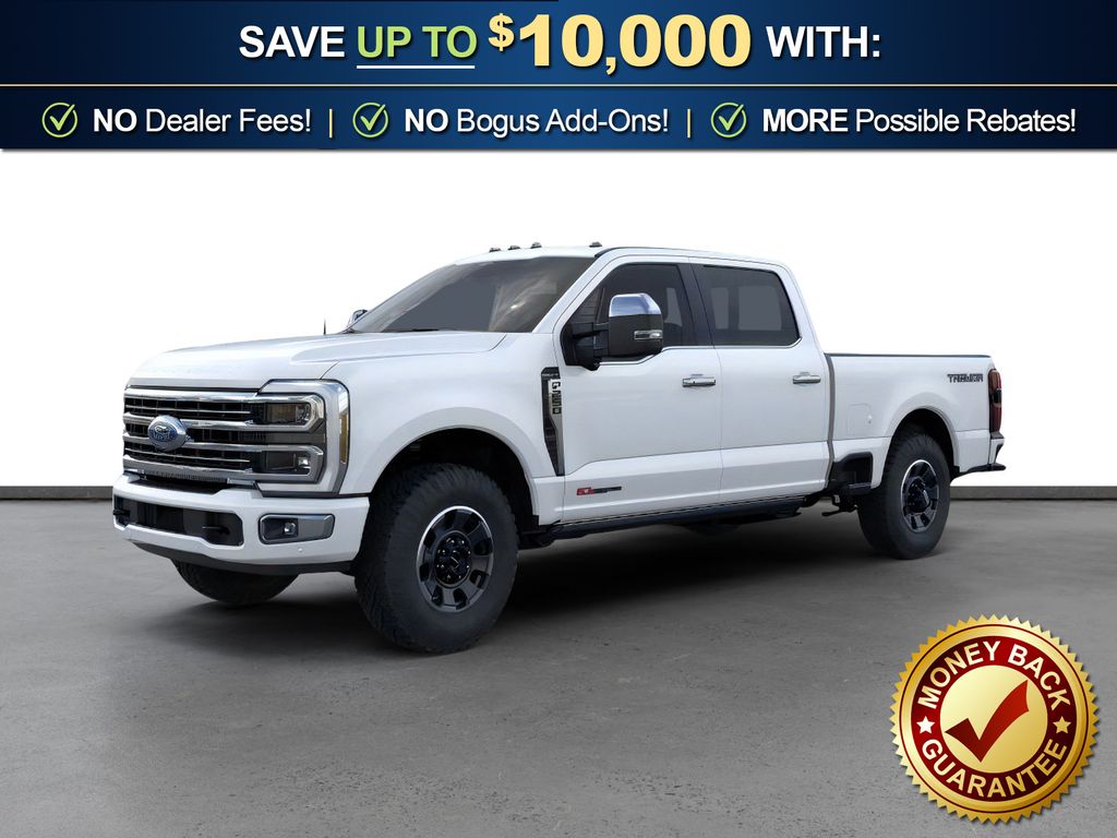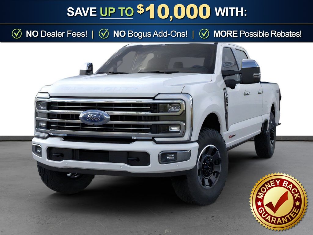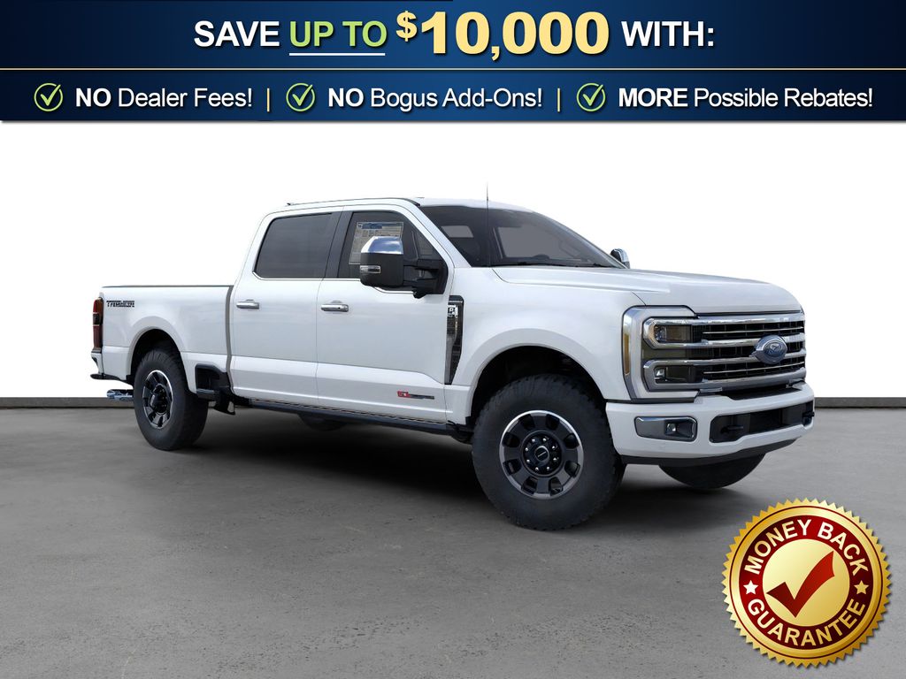 Star White Metallic Tri-Coat 2026 Ford F-250SD Platinum NFT 4WD 10-Speed Automatic 6.7L High Output Power Stroke V8 Diesel 4WD, 4-Wheel Disc Brakes, 410 Amp Dual Alternators, 5th Wheel/Gooseneck Hitch Prep Package, ABS brakes, Adjustable pedals, Air Conditioning, Alloy wheels, AM/FM radio: SiriusXM with 360L, Auto High-beam Headlights, Auto-dimming Rear-View mirror, Automatic temperature control, Brake assist, Compass, Delay-off headlights, Driver door bin, Driver vanity mirror, Dual front impact airbags, Dual front side impact airbags, Electronic Stability Control, Emergency communication system: SYNC 4 911 Assist, Engine Block Heater, Flow-Through Console, Ford Connectivity Package (1-Year Included), Front anti-roll bar, Front Bucket Seats, Front Center Armrest, Front dual zone A/C, Front fog lights, Front reading lights, Fully automatic headlights, Garage door transmitter, GVWR: F-250 >10K Package, Heated door mirrors, Heated front seats, Heated rear seats, Heated steering wheel, High Capacity 11.6" Axle Upgrade Package, Illuminated entry, Internet access capable: 5G Modem - Ford Connectivity Package, LED Roof Clearance Lights, Low tire pressure warning, Memory seat, Navigation system: Connected Navigation, Outside temperature display, Overhead airbag, Overhead console, Panic alarm, Passenger door bin, Passenger vanity mirror, Pedal memory, Power door mirrors, Power driver seat, Power passenger seat, Power steering, Power windows, Radio: B&O Unleashed Sound System by Bang & Olufsen, Rain sensing wipers, Rapid-Heat Supplemental Cab Heater, Rear reading lights, Rear seat center armrest, Rear step bumper, Rear window defroster, Remote keyless entry, Security system, SiriusXM with 360L, Speed control, Split folding rear seat, Steering wheel mounted audio controls, SYNC 4 with Enhanced Voice Recognition, Tachometer, Telescoping steering wheel, Tilt steering wheel, Traction control, Trip computer, Turn signal indicator mirrors, Variably intermittent wipers, Ventilated front seats, 4WD.