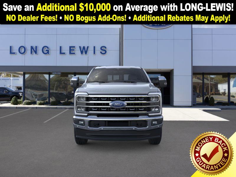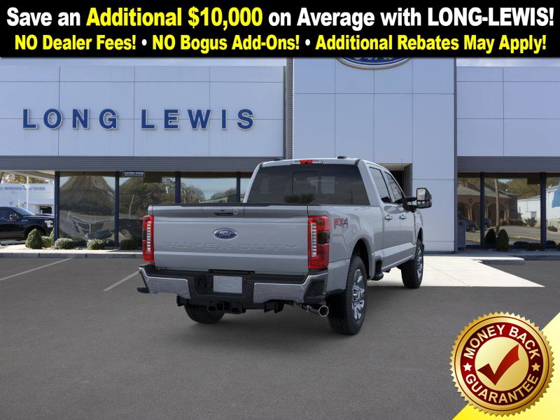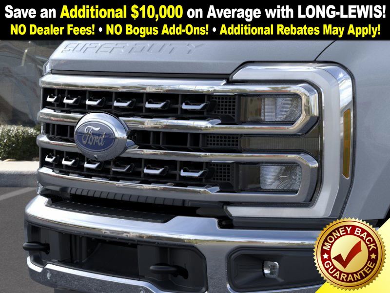 Glacier Gray Metallic Tri-Coat 2026 Ford F-250SD Lariat FCT 4WD 10-Speed Automatic 7.3L V8 PFI SOHC 16V Federal 405hp 4WD, 4-Wheel Disc Brakes, 410 Amp Dual Alternators, 6" Angular Bright Anodized Step Bars, 8 Speakers, ABS brakes, Adaptive Cruise Control w/Stop-and-Go, Adjustable pedals, Air Conditioning, Alloy wheels, AM/FM radio: SiriusXM with 360L, Auto High-beam Headlights, Auto-dimming Rear-View mirror, Automatic High Beam, Automatic temperature control, BLIS w/Cross-Traffic Alert, Brake assist, Bumpers: chrome, Chrome Door Handles, Chrome Exhaust Tip, Chrome Package, Compass, Delay-off headlights, Driver door bin, Driver vanity mirror, Dual AGM 68 AH Battery, Dual front impact airbags, Dual front side impact airbags, Electronic Stability Control, Emergency communication system: SYNC 4 911 Assist, F-250 >10K GVWR Package, Flow-Through Console, Ford Connectivity Package (1-Year Included), Front & Rear Parking Sensors, Front ActiveX Trimmed 40/Console/40 Seats, Front anti-roll bar, Front Bucket Seats, Front Center Armrest, Front dual zone A/C, Front fog lights, Front reading lights, Fully automatic headlights, FX4 Off-Road Package, Garage door transmitter, Heated door mirrors, Heated front seats, Heated rear seats, Heated steering wheel, Hill Descent Control, Illuminated entry, Internet access capable: 5G Modem - Ford Connectivity Package, Lane Departure Warning System, Lane-Keeping System, Lariat Premium Package, Low tire pressure warning, Memory seat, Navigation system: Connected Navigation, Off-Road Specifically Tuned Shock Absorbers, Outside temperature display, Overhead airbag, Overhead console, Panic alarm, Passenger door bin, Passenger vanity mirror, Pedal memory, Post-Collision Braking, Power door mirrors, Power driver seat, Power passenger seat, Power steering, Power windows, Power-Sliding Rear-Window w/Defrost, Pre-Collision Assist, Privacy Glass, Pro Trailer Backup Assist, Pro Trailer Hitch Assist, Radio: B&O Sound System by Bang & Olufsen, Rain sensing wipers, Rear Parking Sensors, Rear reading lights, Rear seat center armrest, Rear step bumper, Rear window defroster, Remote keyless entry, Security system, SiriusXM w/360L, Speed control, Split folding rear seat, Steering wheel mounted audio controls, SYNC 4 w/Enhanced Voice Recognition, Tachometer, Tailgate Step & Handle, Telescoping steering wheel, Tilt steering wheel, Traction control, Trip computer, Turn signal indicator mirrors, Unique Chrome Mirror Caps, Unique FX4 Off-Road Box Decal, Upfitter Switches (6), Variably intermittent wipers, Ventilated front seats, Wheels: 18" Bright Machined & Carbonized Gray Alum, Wheels: 20" Chrome PVD Aluminum, 4WD.