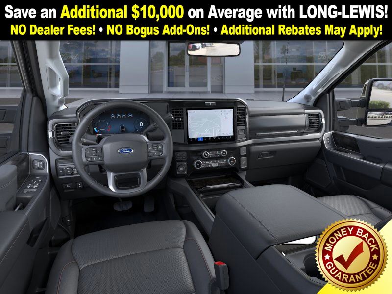 Chrome Package (6" Angular Bright Anodized Step Bars, Chrome Door Handles, Chrome Exhaust Tip, Unique Chrome Mirror Caps, and Wheels: 20" Chrome PVD Aluminum), F-250 >10K GVWR Package, Ford Connectivity Package (1-Year Included), FX4 Off-Road Package (Hill Descent Control, Off-Road Specifically Tuned Shock Absorbers, and Unique FX4 Off-Road Box Decal), Internet access capable: 5G Modem - Ford Connectivity Package, 4WD, 4-Wheel Disc Brakes, 410 Amp Dual Alternators, 8 Speakers, ABS brakes, Adjustable pedals, Air Conditioning, Alloy wheels, AM/FM radio: SiriusXM with 360L, Auto High-beam Headlights, Auto-dimming Rear-View mirror, Automatic temperature control, BLIS w/Cross-Traffic Alert, Brake assist, Bumpers: chrome, Compass, Delay-off headlights, Driver door bin, Driver vanity mirror, Dual AGM 68 AH Battery, Dual front impact airbags, Dual front side impact airbags, Electronic Stability Control, Emergency communication system: SYNC 4 911 Assist, Flow-Through Console, Front ActiveX Trimmed 40/Console/40 Seats, Front anti-roll bar, Front Bucket Seats, Front Center Armrest, Front dual zone A/C, Front fog lights, Front reading lights, Fully automatic headlights, Garage door transmitter, Heated door mirrors, Heated front seats, Heated rear seats, Heated steering wheel, Illuminated entry, Low tire pressure warning, Memory seat, Navigation system: Connected Navigation, Outside temperature display, Overhead airbag, Overhead console, Panic alarm, Passenger door bin, Passenger vanity mirror, Pedal memory, Power door mirrors, Power driver seat, Power passenger seat, Power steering, Power windows, Power-Sliding Rear-Window w/Defrost, Privacy Glass, Radio: B&O Sound System by Bang & Olufsen, Rain sensing wipers, Rear Parking Sensors, Rear reading lights, Rear seat center armrest, Rear step bumper, Rear window defroster, Remote keyless entry, Security system, SiriusXM w/360L, Speed control, Split folding rear seat, Steering wheel mounted audio controls, SYNC 4 w/Enhanced Voice Recognition, Tachometer, Tailgate Step & Handle, Telescoping steering wheel, Tilt steering wheel, Traction control, Trip computer, Turn signal indicator mirrors, Upfitter Switches (6), Variably intermittent wipers, Ventilated front seats, and Wheels: 18" Bright Machined & Carbonized Gray Alum.