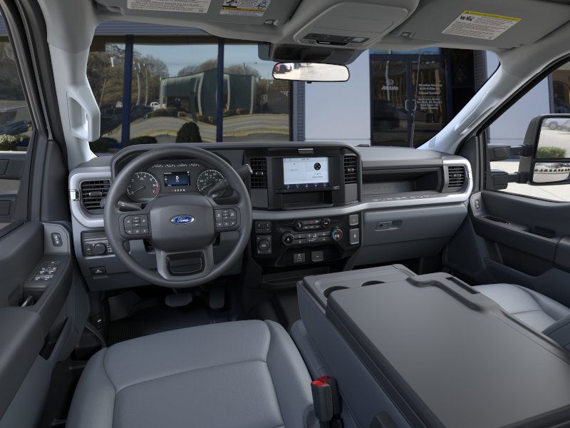 Oxford White 2026 Ford F-250SD XL FCT 4WD 10-Speed Automatic 6.8L V8 4WD, 17" Argent Painted Steel Wheels, 4-Wheel Disc Brakes, 6 Speakers, ABS brakes, Air Conditioning, AM/FM radio, AM/FM Stereo w/MP3 Player, Brake assist, Compass, Delay-off headlights, Dual front impact airbags, Dual front side impact airbags, Electronic Stability Control, Emergency communication system: SYNC 4 911 Assist, Exterior Parking Camera Rear, Ford Connectivity Package (1-Year Included), Front anti-roll bar, Front Center Armrest w/Storage, Front License Plate Bracket, Front reading lights, Fully automatic headlights, GVWR: 10,000 lb Payload Package, HD Vinyl 40/20/40 Split Bench Seat, Heated door mirrors, Illuminated entry, Interior Work Surface, Internet access capable: 5G Modem - Ford Connectivity Package, Low tire pressure warning, Order Code 600A, Outside temperature display, Overhead airbag, Overhead console, Panic alarm, Passenger cancellable airbag, Passenger vanity mirror, Platform Running Boards, Power door mirrors, Power steering, Power windows, Rear step bumper, Remote keyless entry, Security system, Speed control, Split folding rear seat, Steering wheel mounted audio controls, SYNC 4, Tachometer, Telescoping steering wheel, Tilt steering wheel, Traction control, Trailer Brake Controller, Trip computer, Turn signal indicator mirrors, Variably intermittent wipers, 4WD.